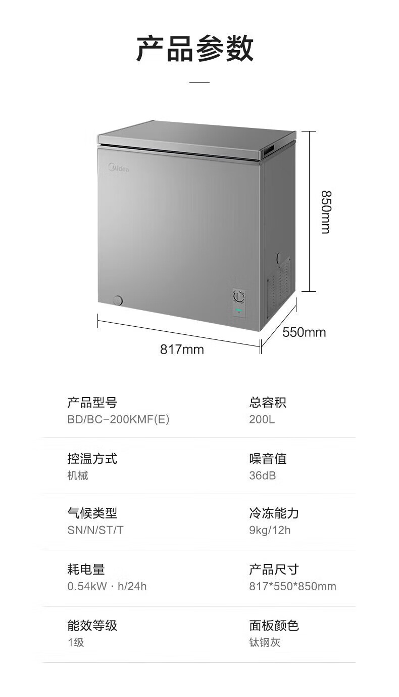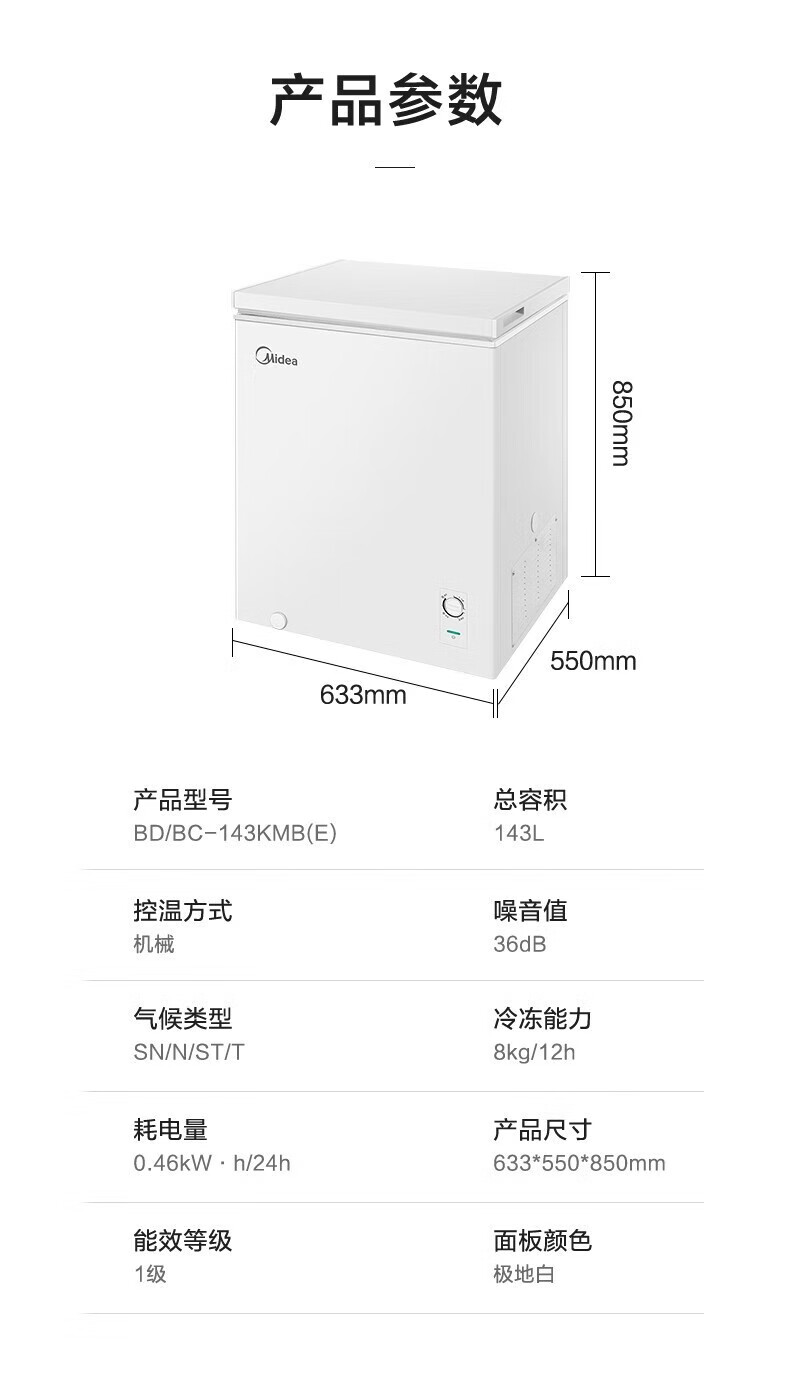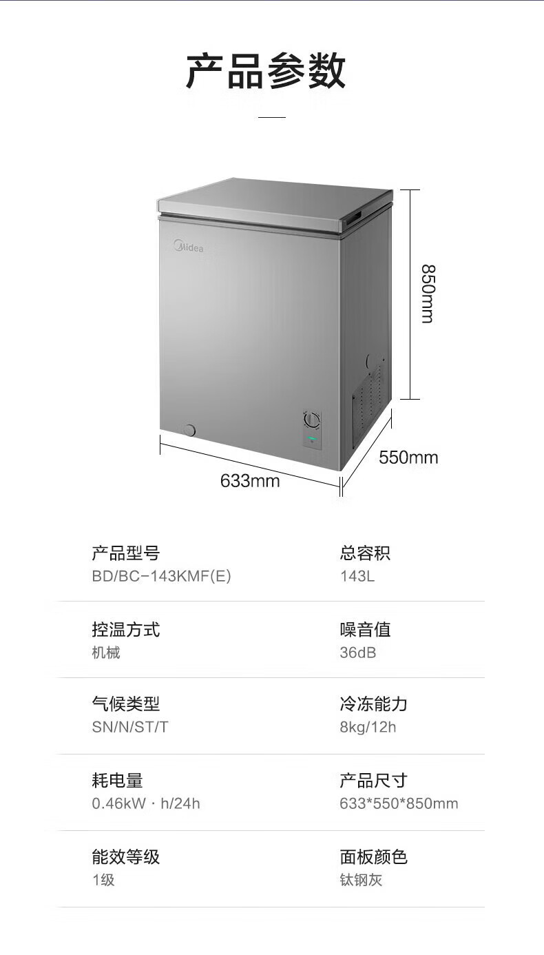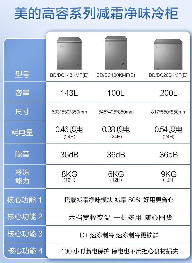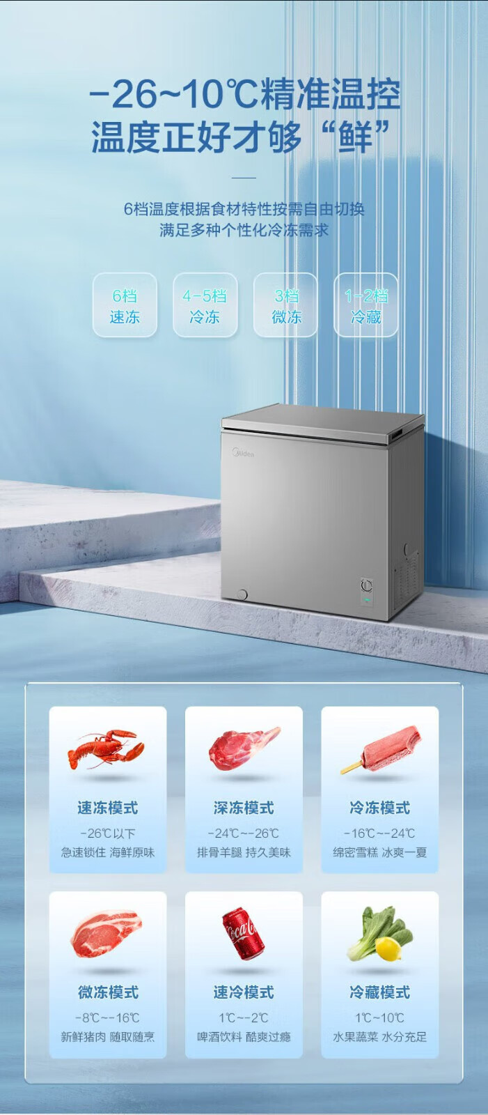 Midea upgraded anti-frost single-temperature household freezer refrigerator-freezer dual-purpose horizontal deep-freezing fresh-locking small freezer first-class energy efficiency energy-saving freezer small refrigerator BD/BC-100KMF(E) 100L