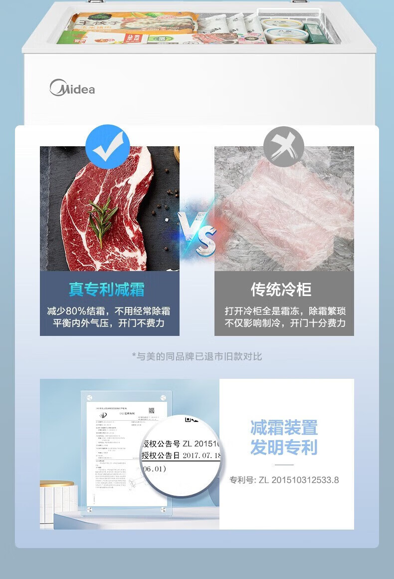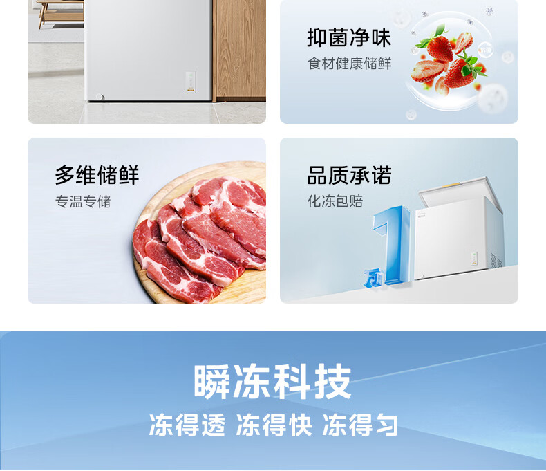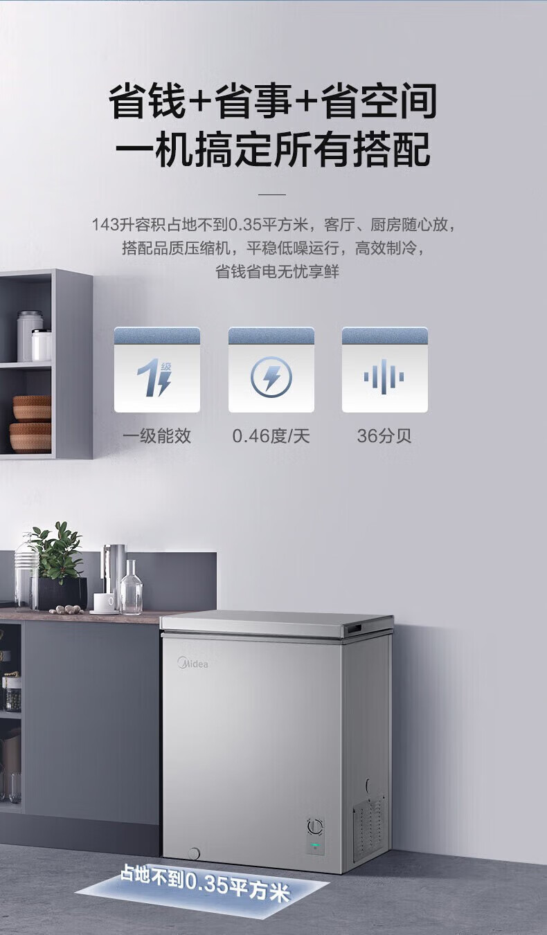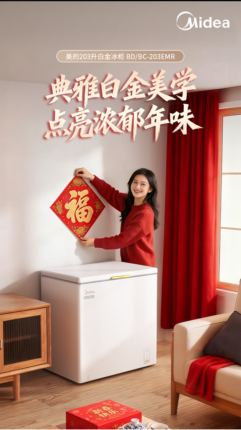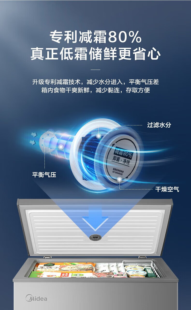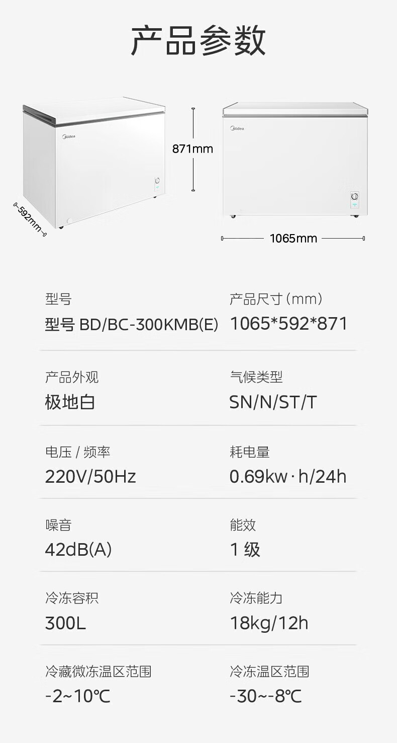Midea upgraded anti-frost single-temperature household freezer refrigerator-freezer dual-purpose horizontal deep-freezing fresh-locking small freezer first-class energy efficiency energy-saving freezer small refrigerator BD/BC-100KMF(E) 100L