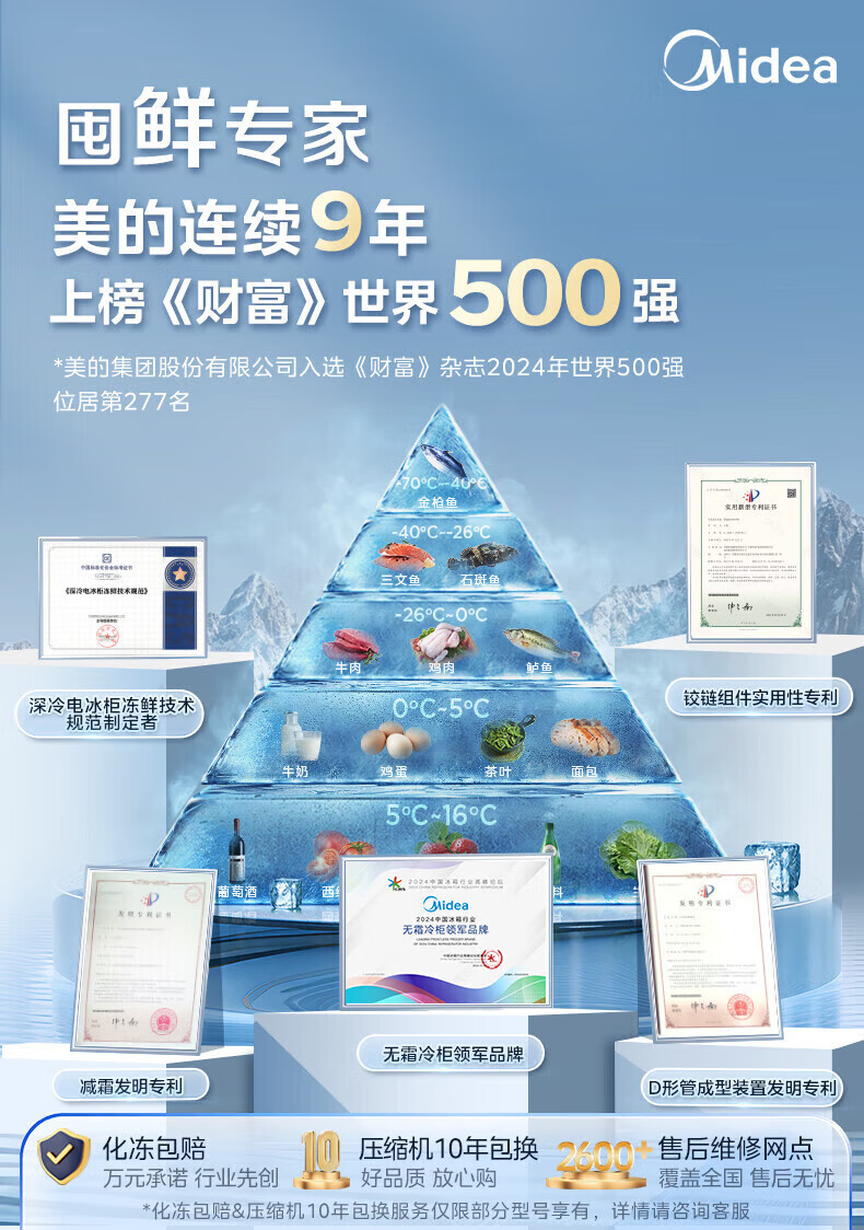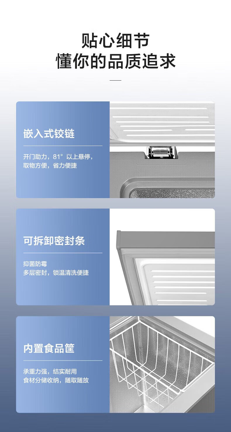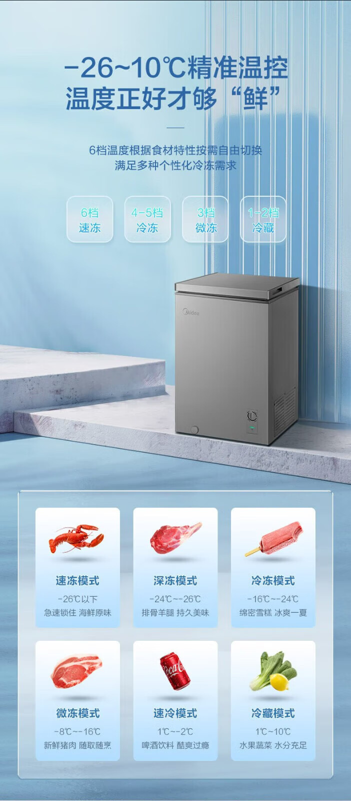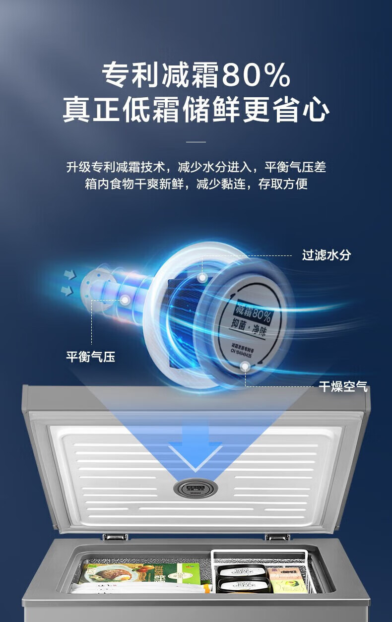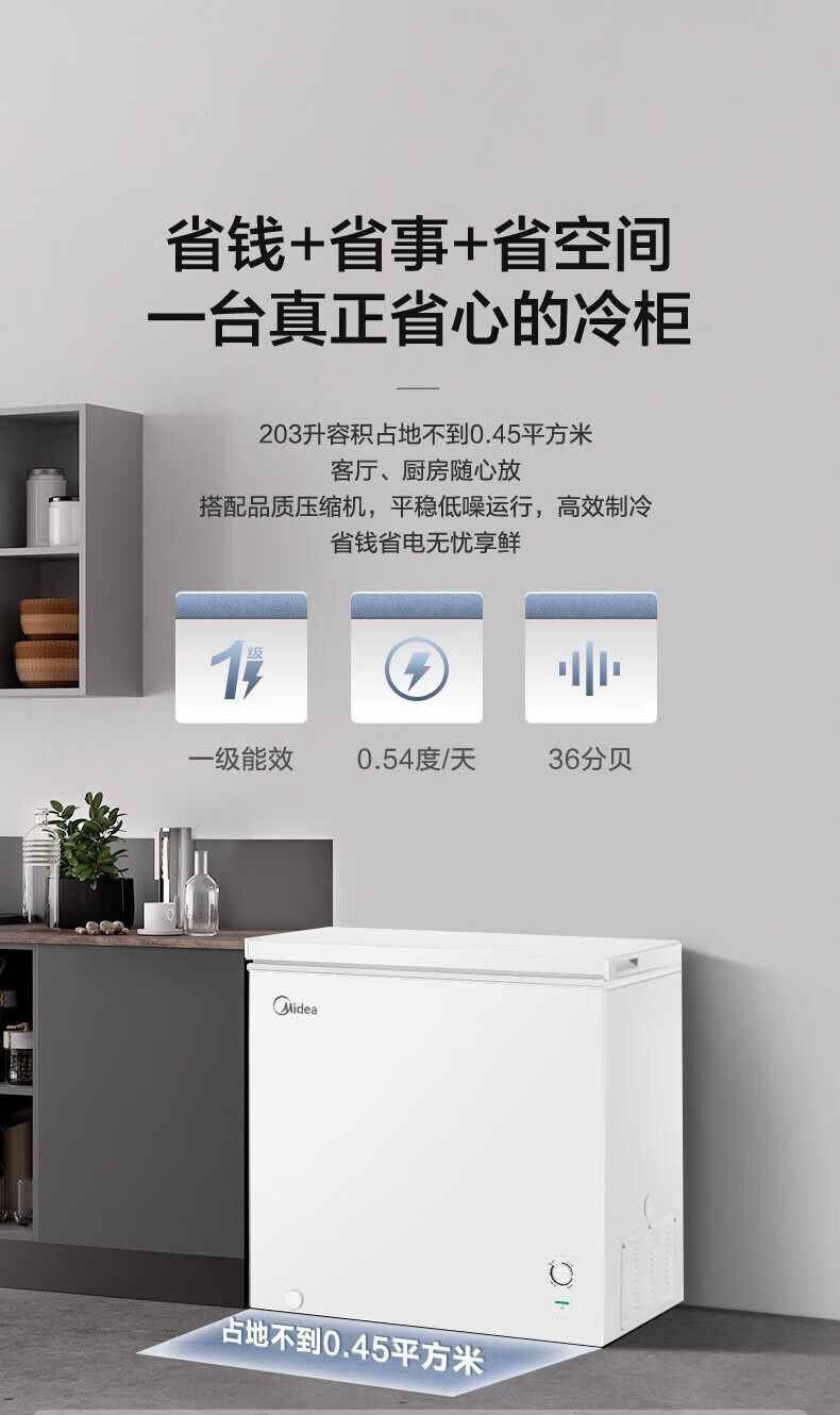 Midea upgraded anti-frost single-temperature household freezer refrigerator-freezer dual-purpose horizontal deep-freezing fresh-locking small freezer first-class energy efficiency energy-saving freezer small refrigerator BD/BC-100KMF(E) 100L