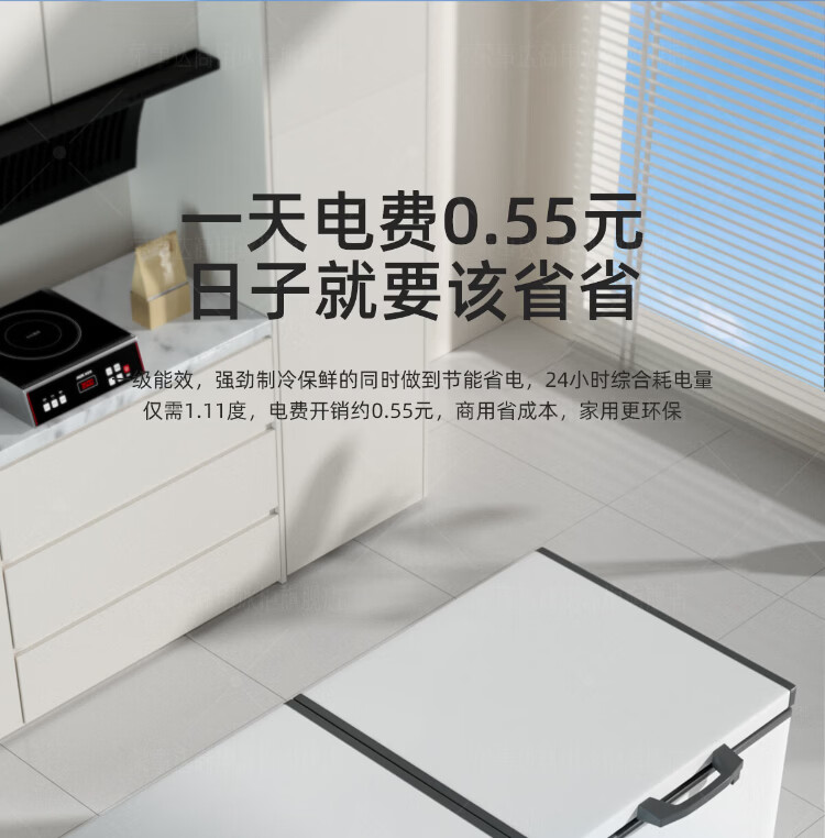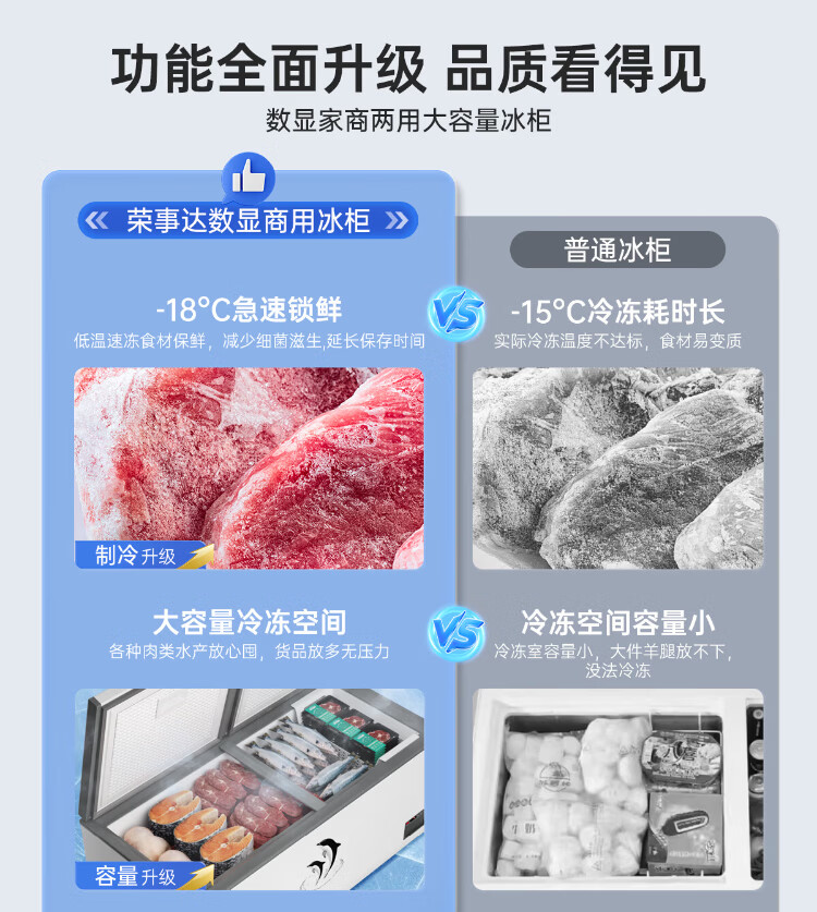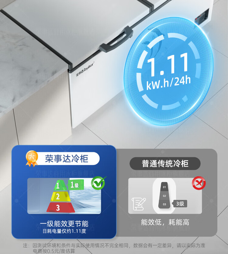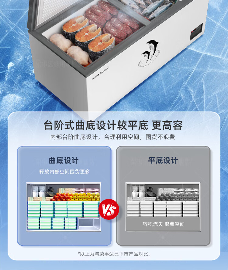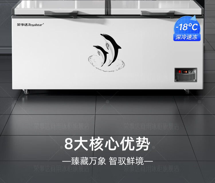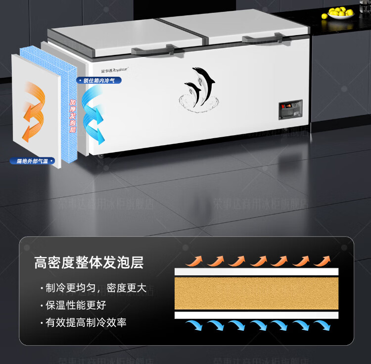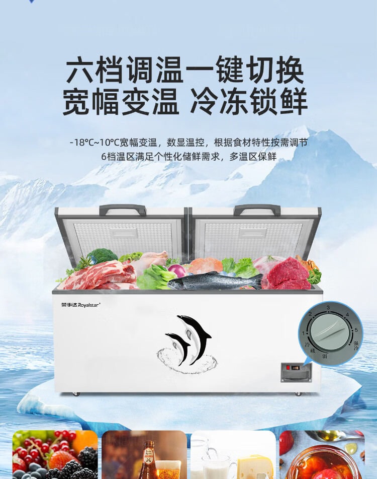 Royalstar Freezer Commercial Large Capacity Full Freezer Horizontal Freezer Household Refrigerator Freezer Dual-Temperature Commercial Large Freezer Freezer Display Cabinet 330L Single Temperature Golden Micro-Frost Level 1 Energy Efficiency