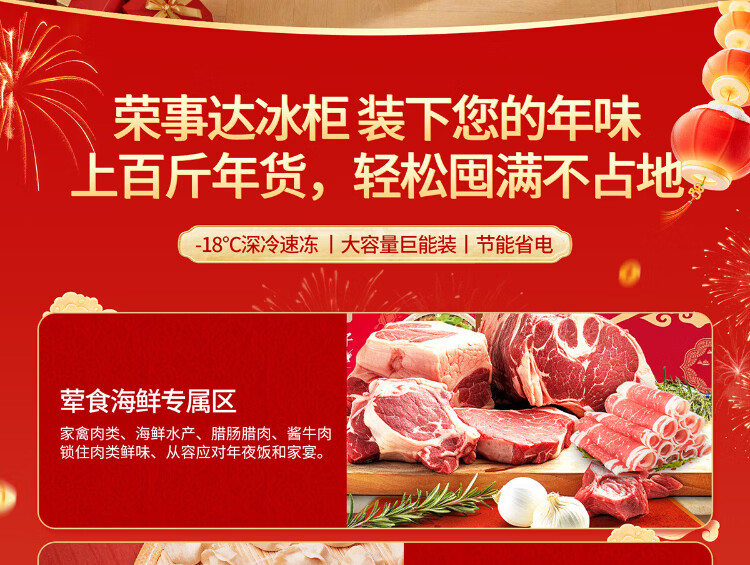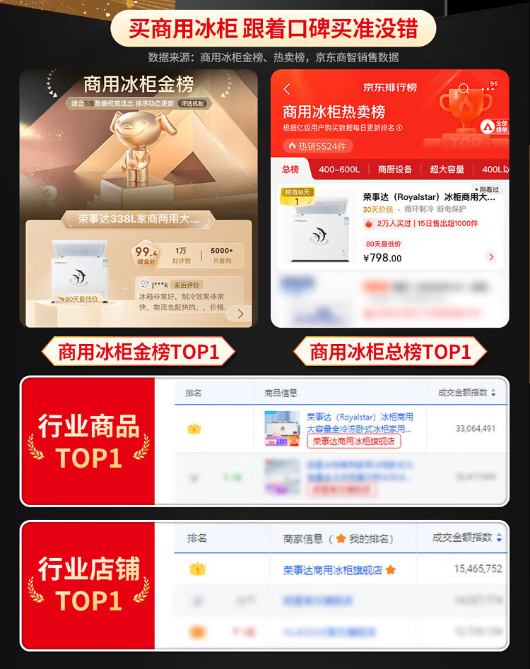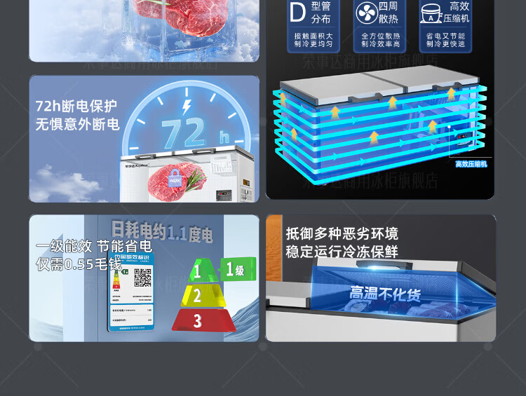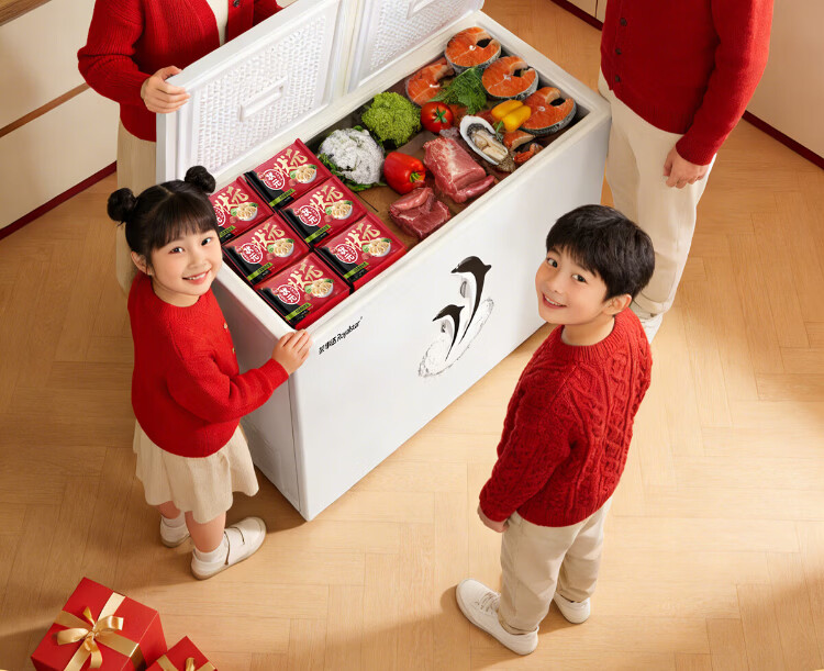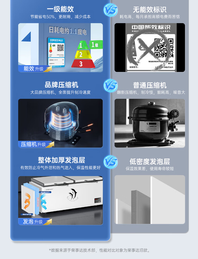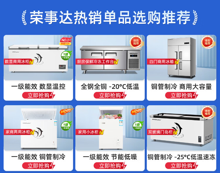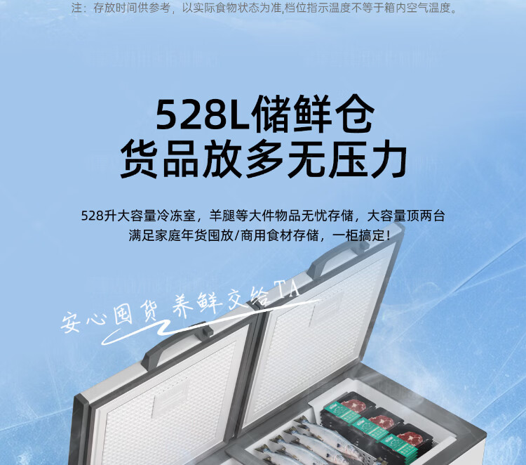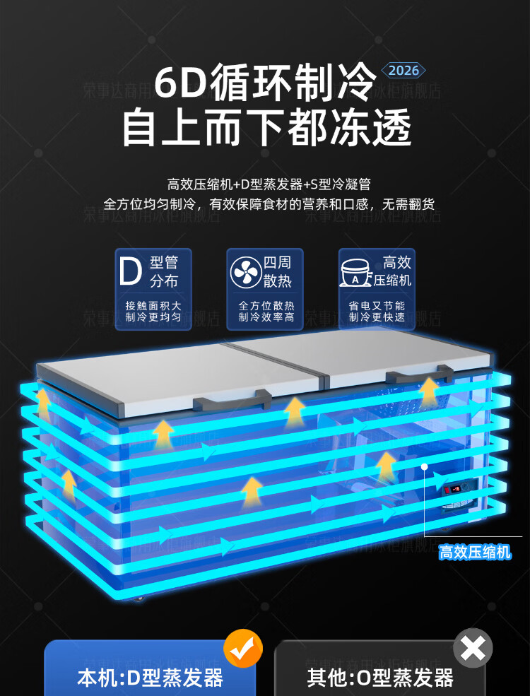 Royalstar Freezer Commercial Large Capacity Full Freezer Horizontal Freezer Household Refrigerator Freezer Dual-Temperature Commercial Large Freezer Freezer Display Cabinet 330L Single Temperature Golden Micro-Frost Level 1 Energy Efficiency
