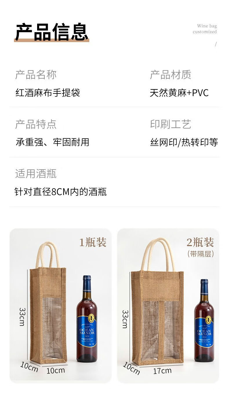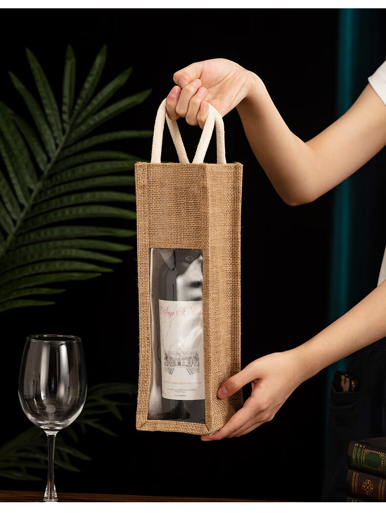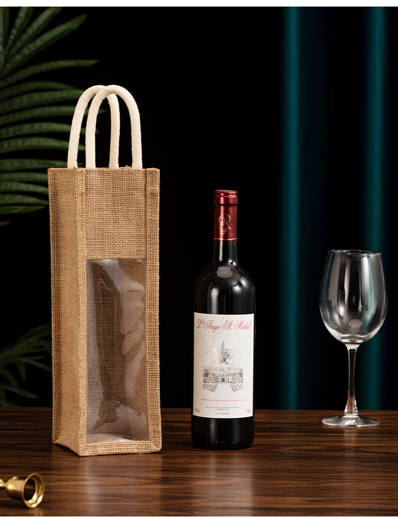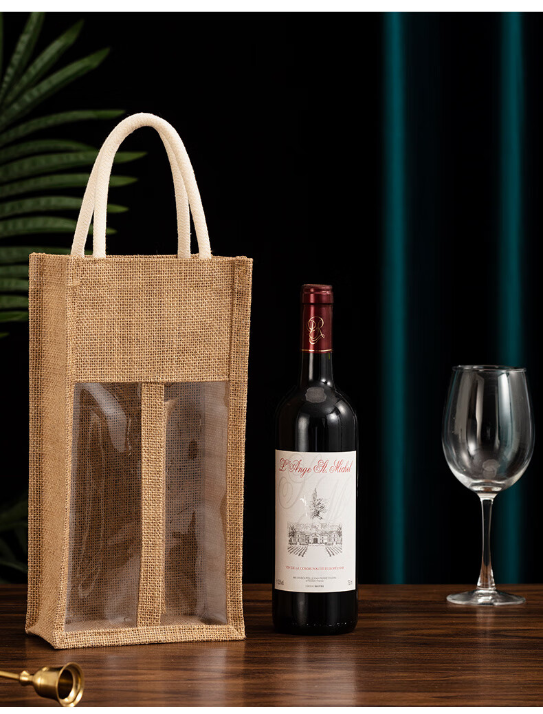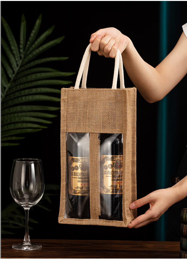 Haodu red wine bag gift bag linen handbag custom-made single and double bottles two bottles without window 17*10*33cm