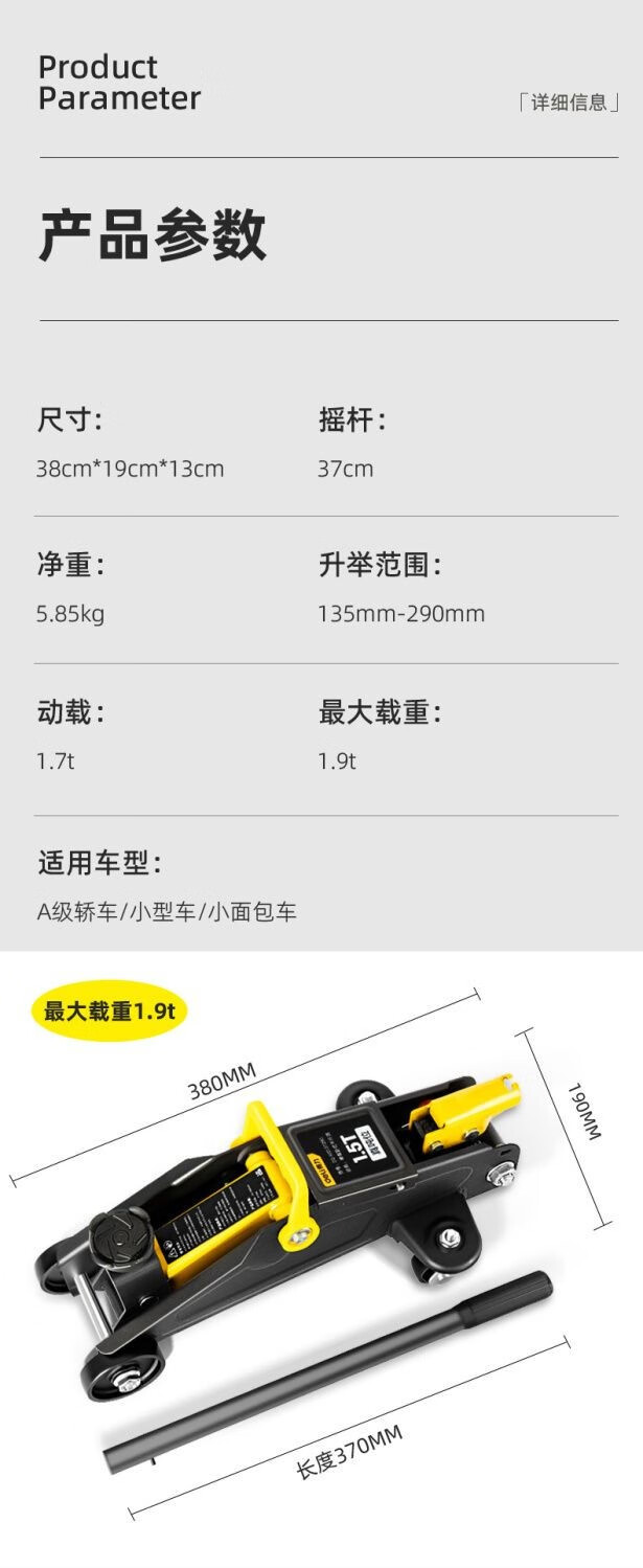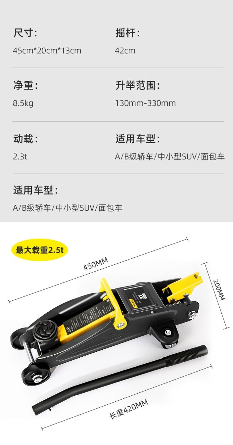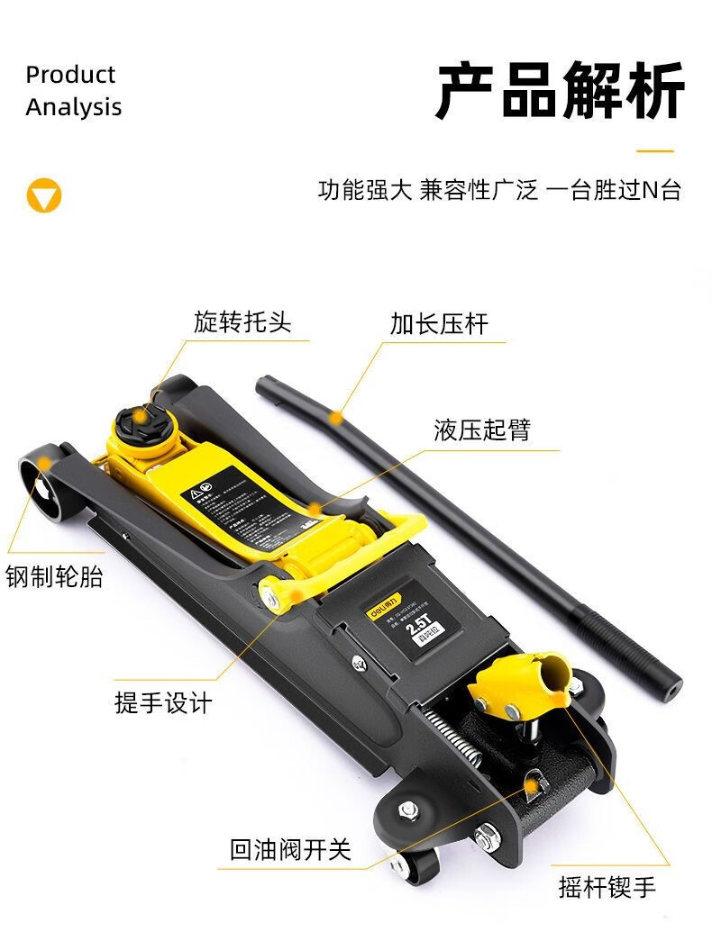 Deli 1.5 tons 2 tons 3 tons horizontal hydraulic accessories jack car horizontal national standard jack brand hydraulic car national standard 2T household model with a maximum load capacity of 2.5 tons