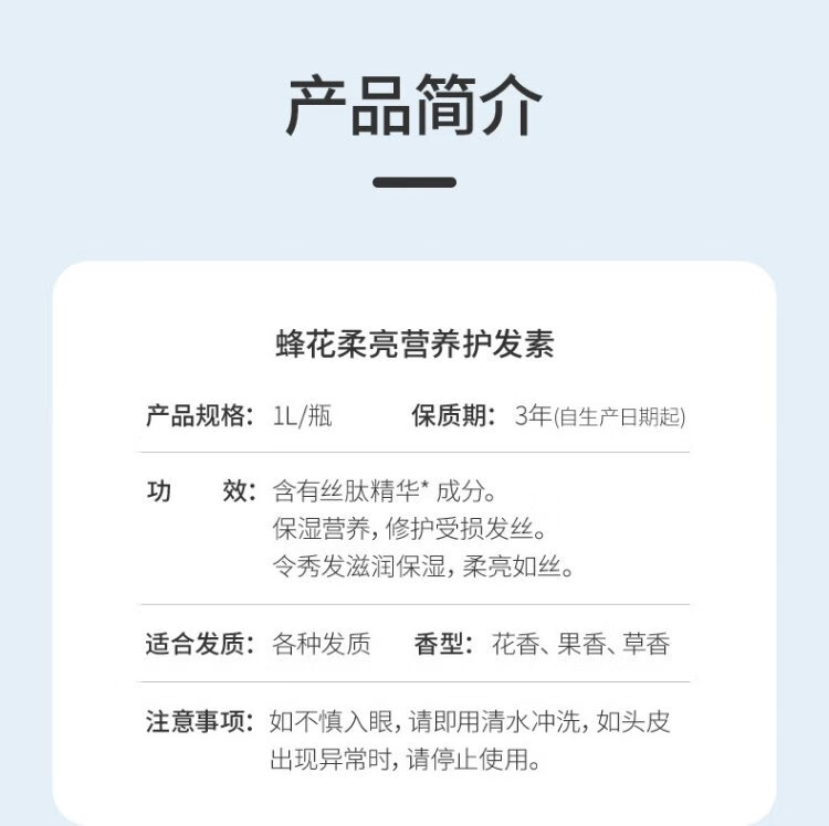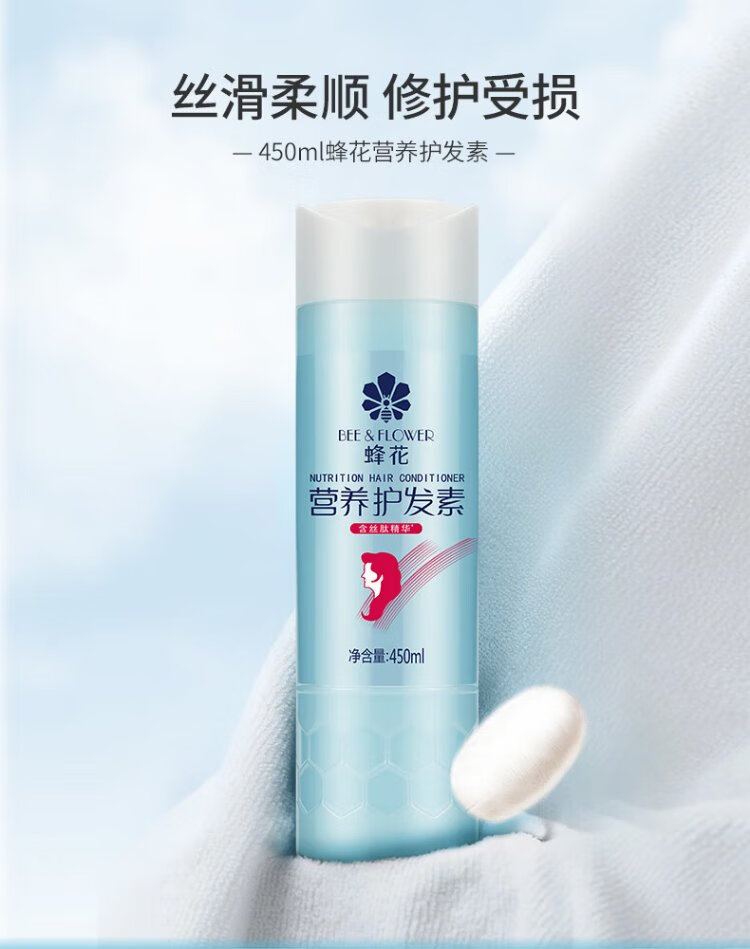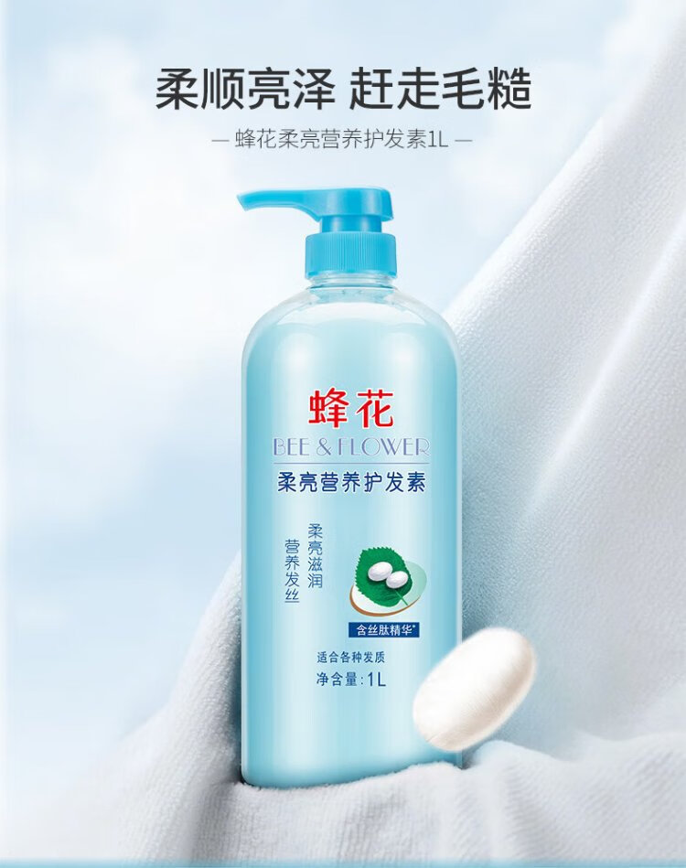 Bee flower soft and bright nutritional conditioner 1L silk protein moisturizing and hydrating hair care to reduce split ends, smooth and repair family pack soft and bright conditioner 1L*1 bottle soft and bright