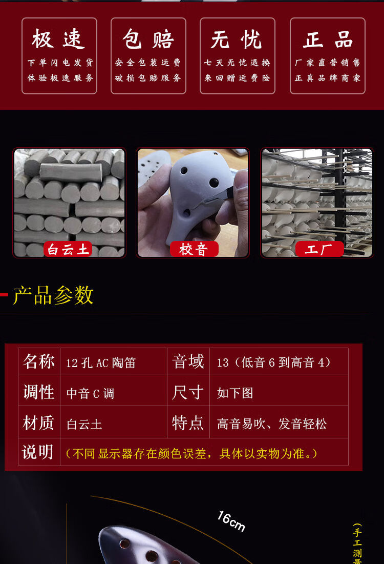 Nile Ocarina 12-hole beginner's entry-level twelve-hole ac alto C key professional playing Tao Xun instrument 6 free teaching Qingcrack strengthened free full set of accessories + video teaching