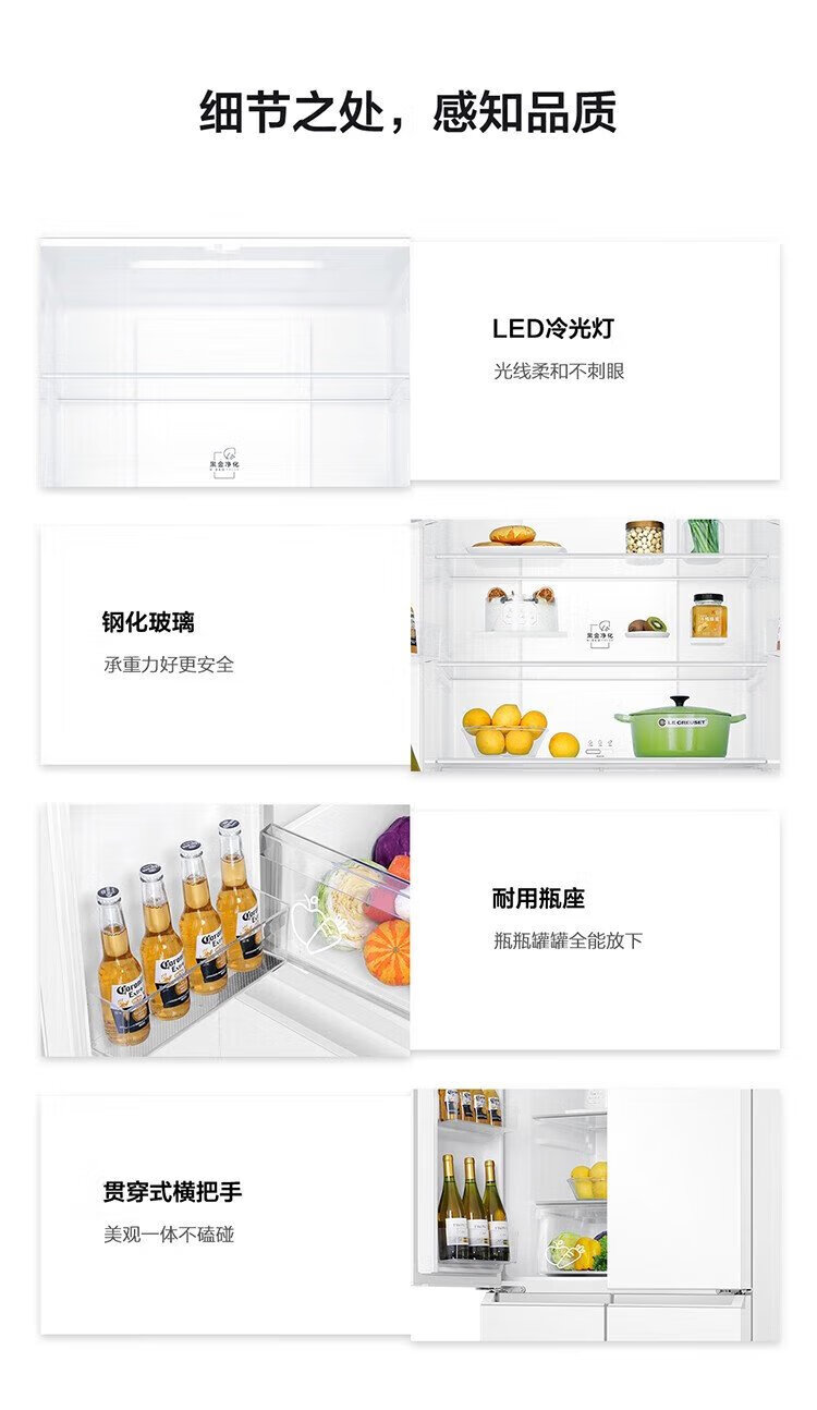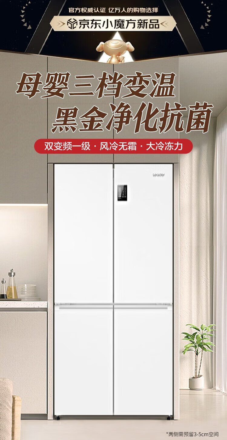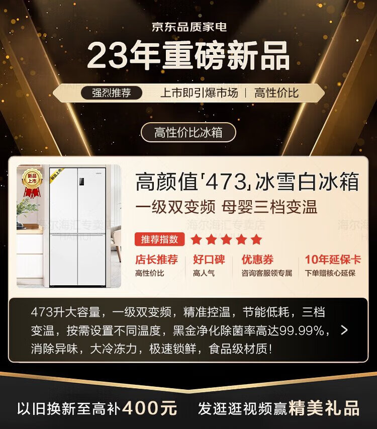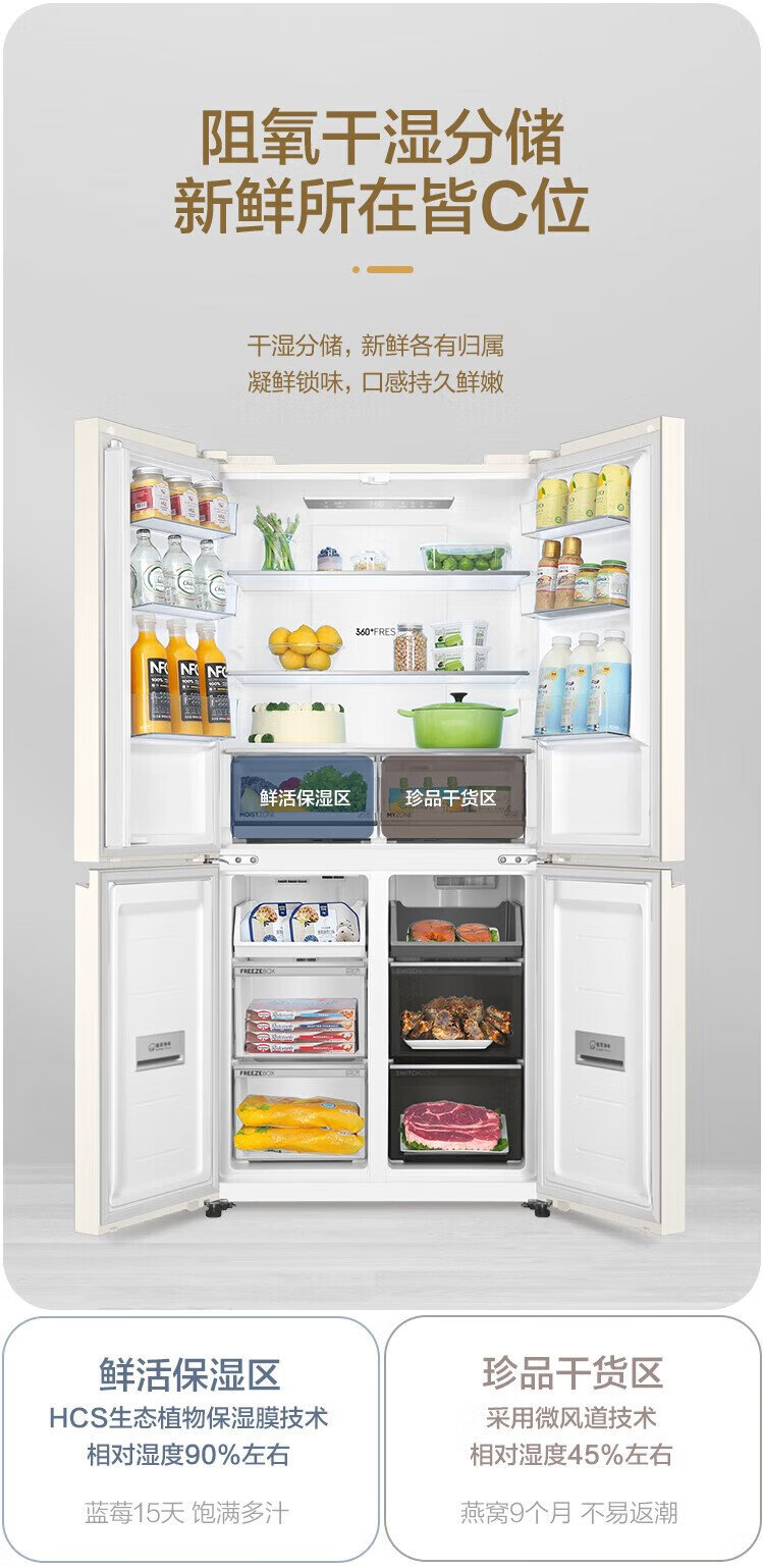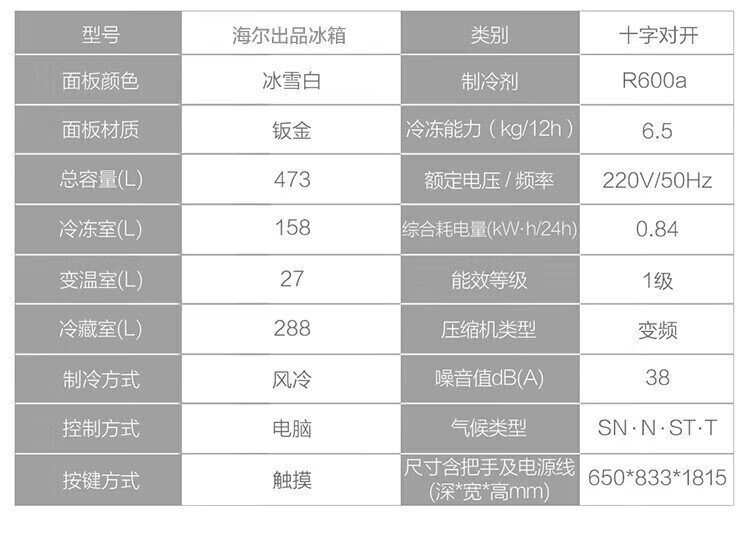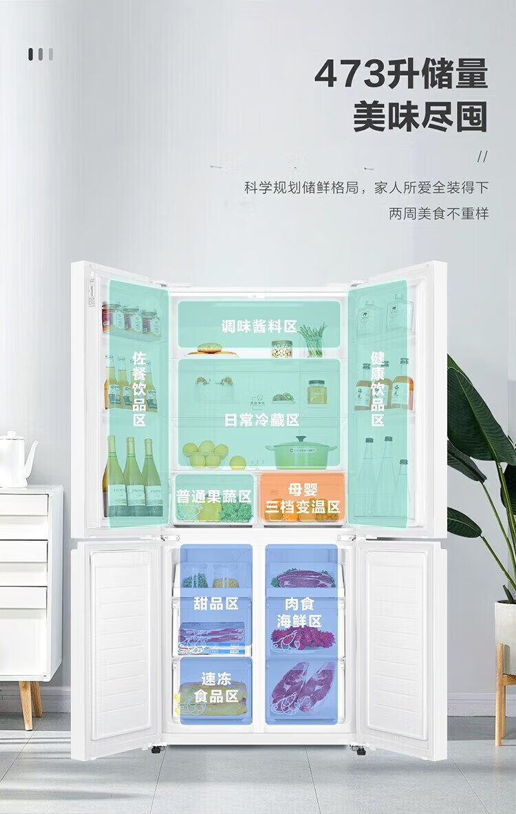 Haier refrigerator produces Commander 473 liters four-door double-door cross-door air-cooled frost-free double frequency conversion large-capacity household refrigerator first-class energy efficiency white refrigerator double cycle 473-liter first-class dual frequency conversion three-speed temperature change black gold purification mother and baby space