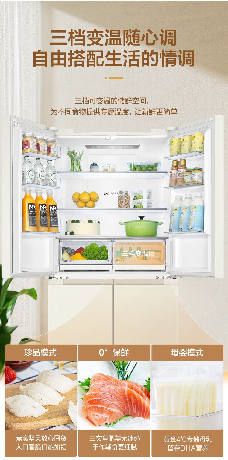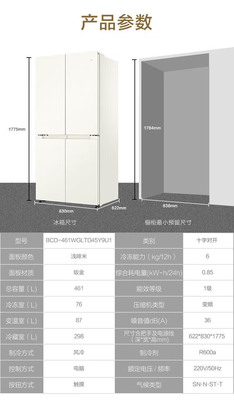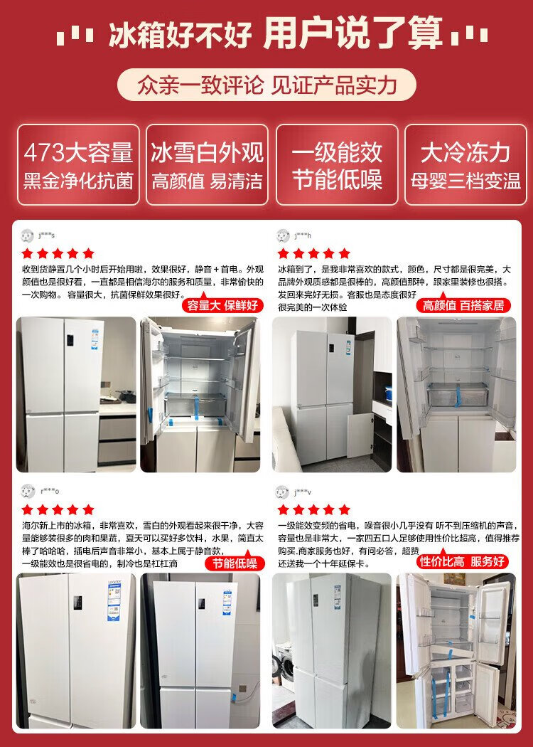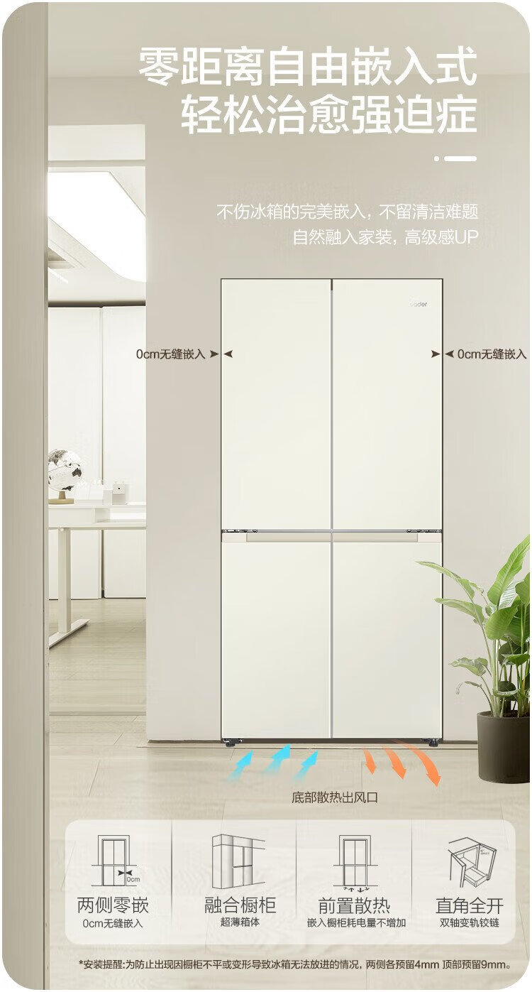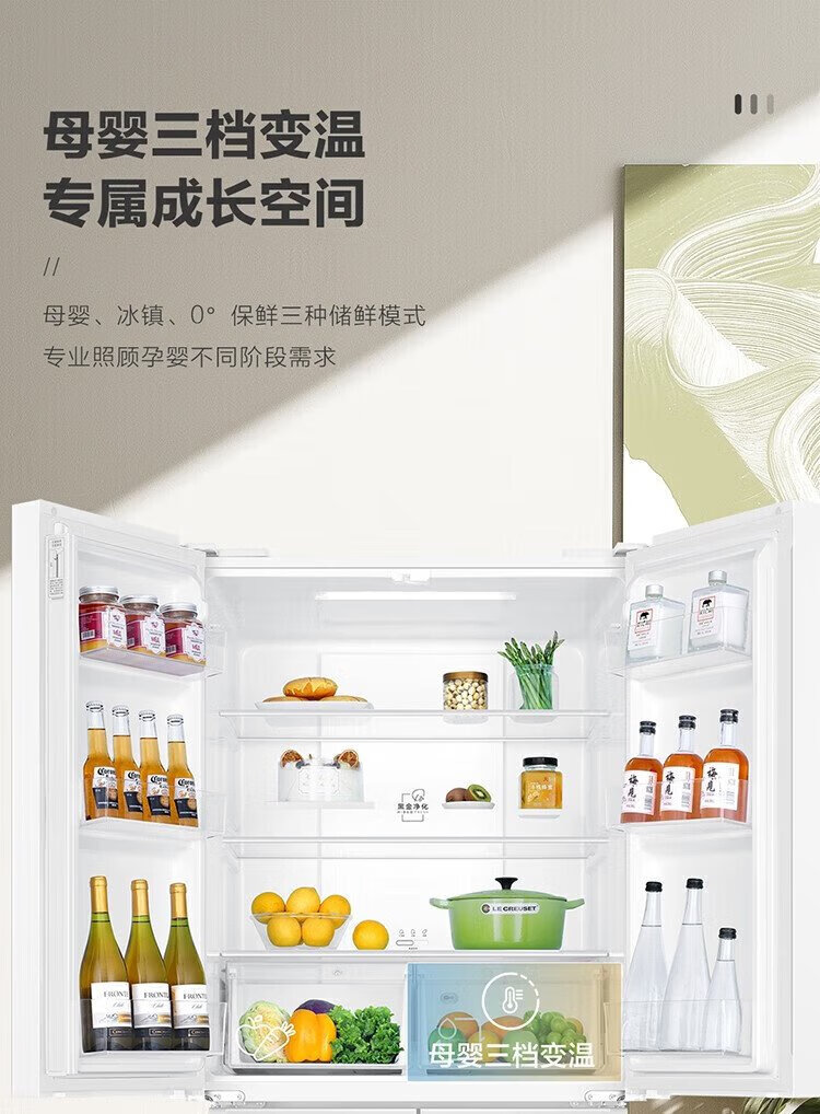 Haier refrigerator produces Commander 473 liters four-door double-door cross-door air-cooled frost-free double frequency conversion large-capacity household refrigerator first-class energy efficiency white refrigerator double cycle 473-liter first-class dual frequency conversion three-speed temperature change black gold purification mother and baby space