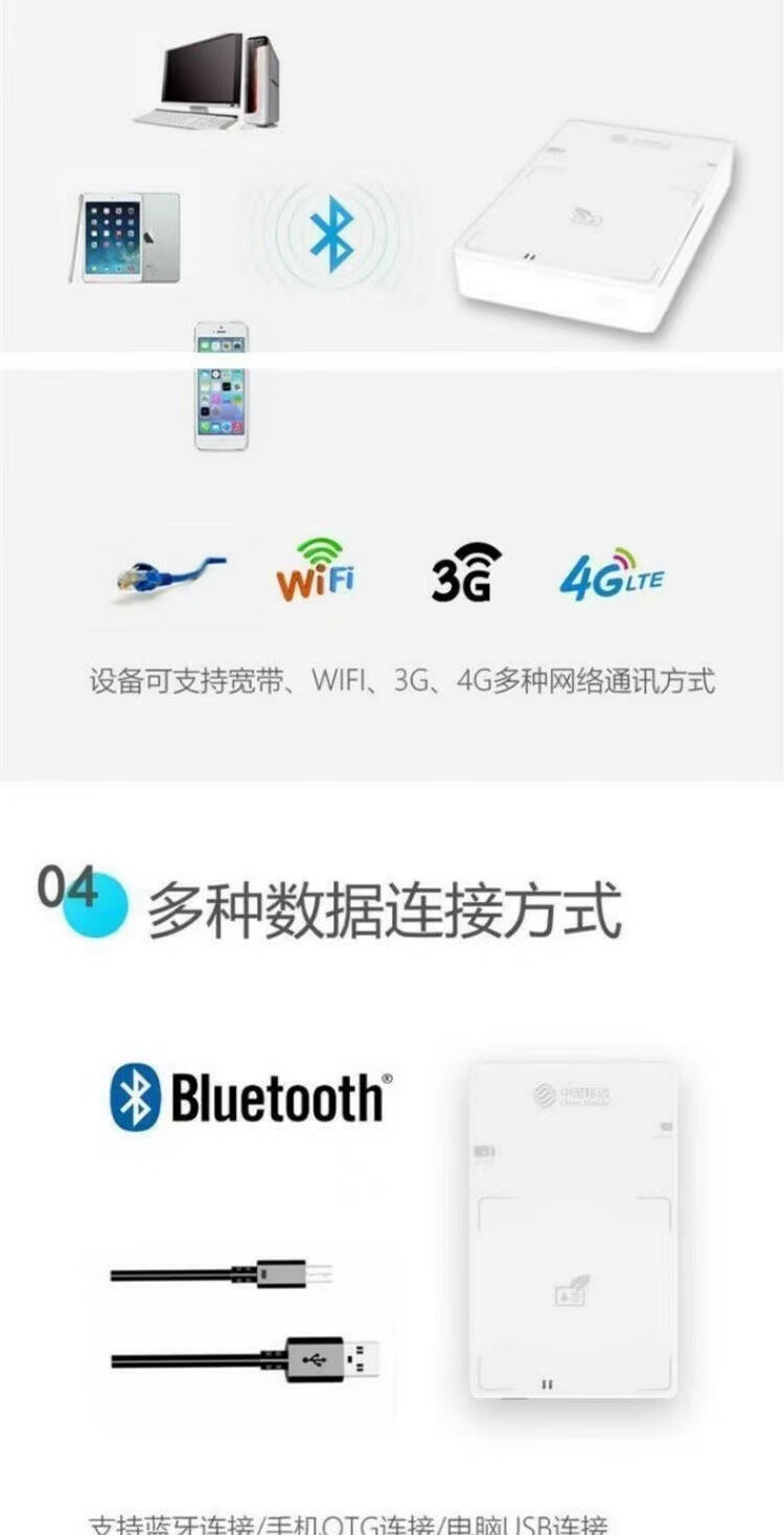 Portable Hall China Mobile Card Reader Identification Bluetooth Card Opening and Writing Card Reader Business Hall Certificate Universal Version LS51 White China Mobile Online LS51