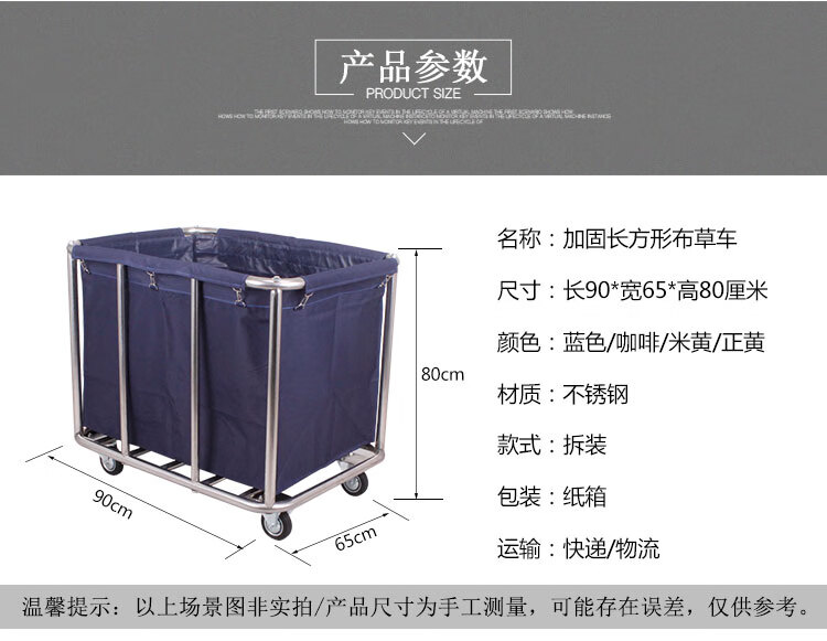 Long Xunhe linen cart guest room cart hotel room work cart dirty linen recycling cart stainless steel trolley coffee thickened disassembly conical linen cart disassembly model