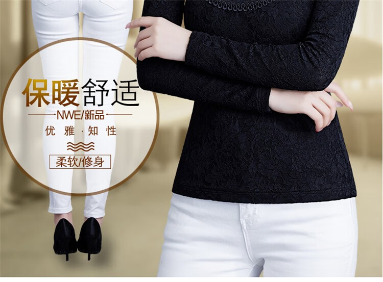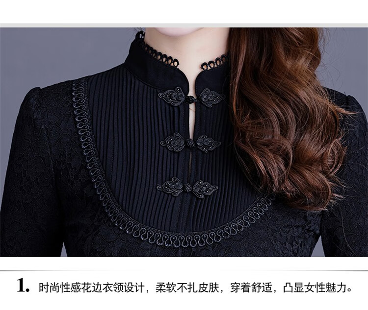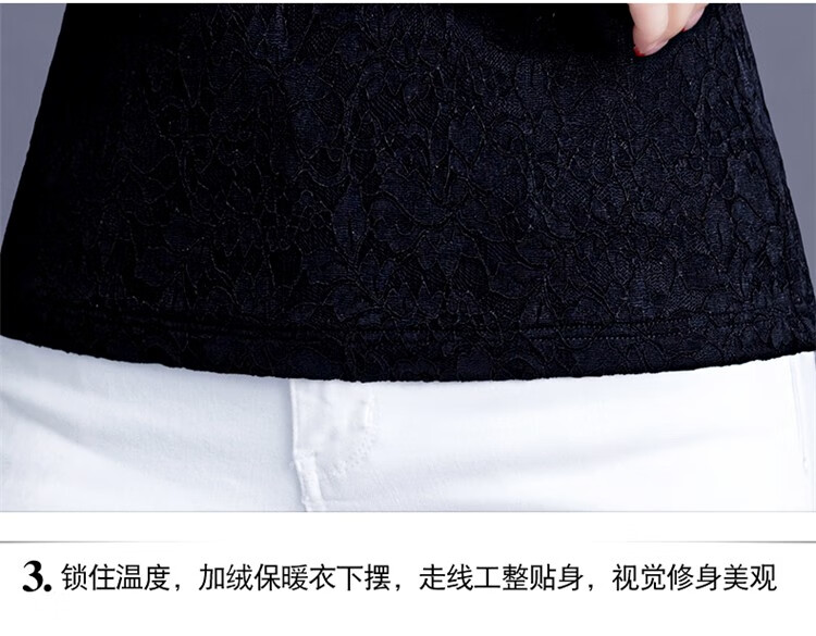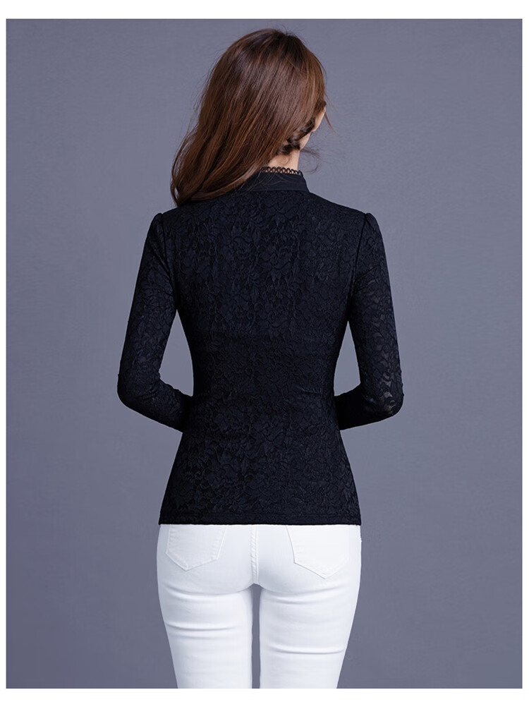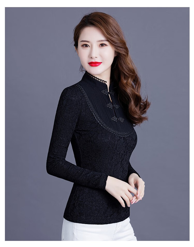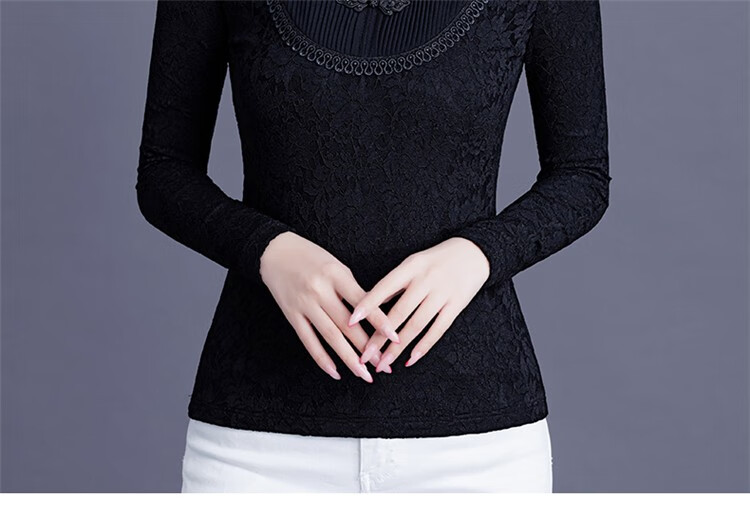 Woodpecker Lace Bottoming Shirt Women's Spring Autumn and Winter Style 2025 New Long Sleeve Shirt Fashionable Velvet Thickened Warm Women's Clothing Black Regular XL