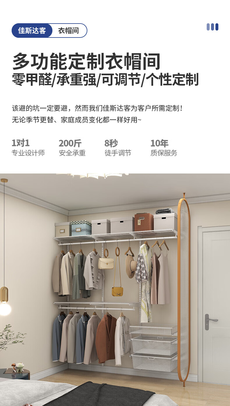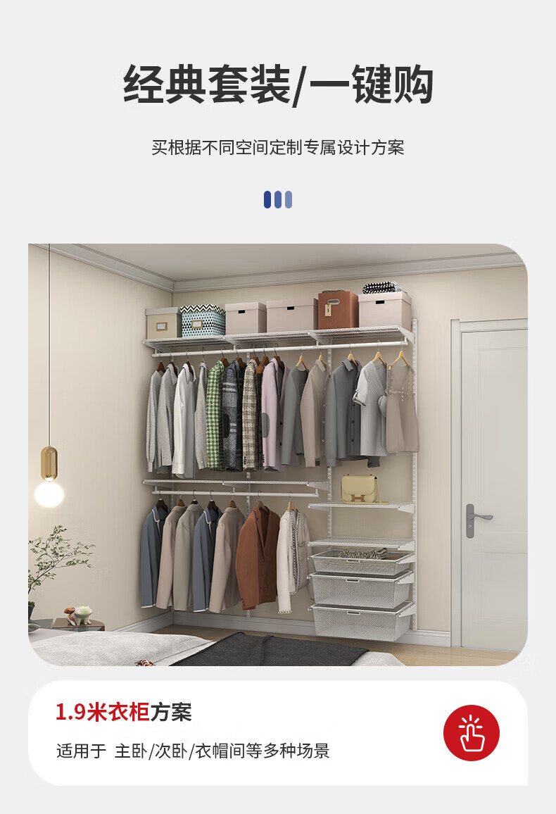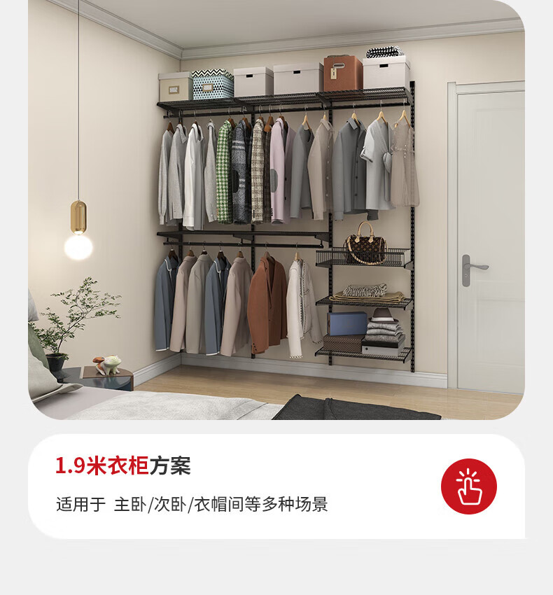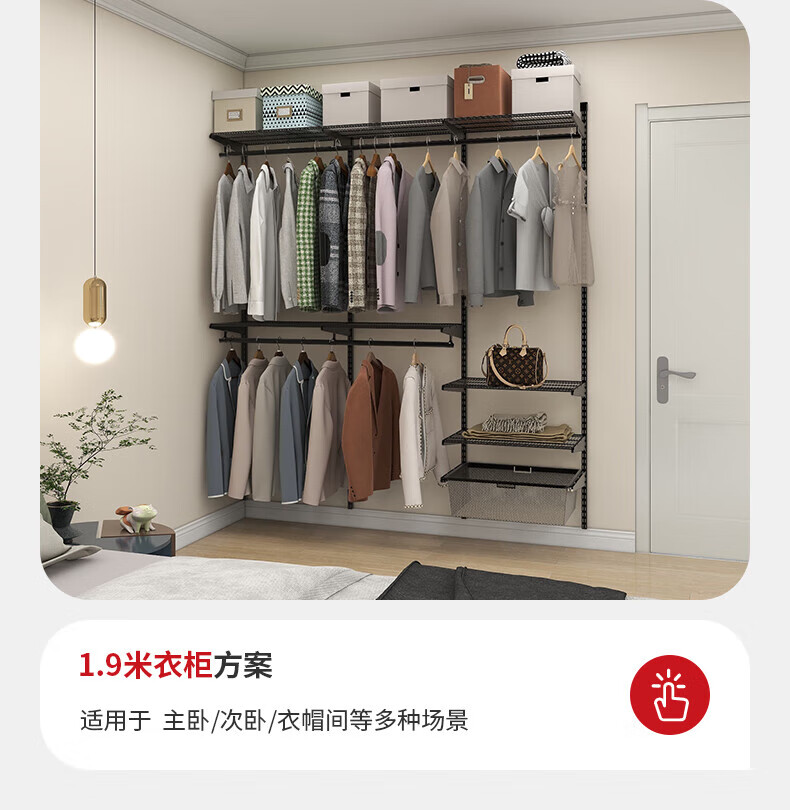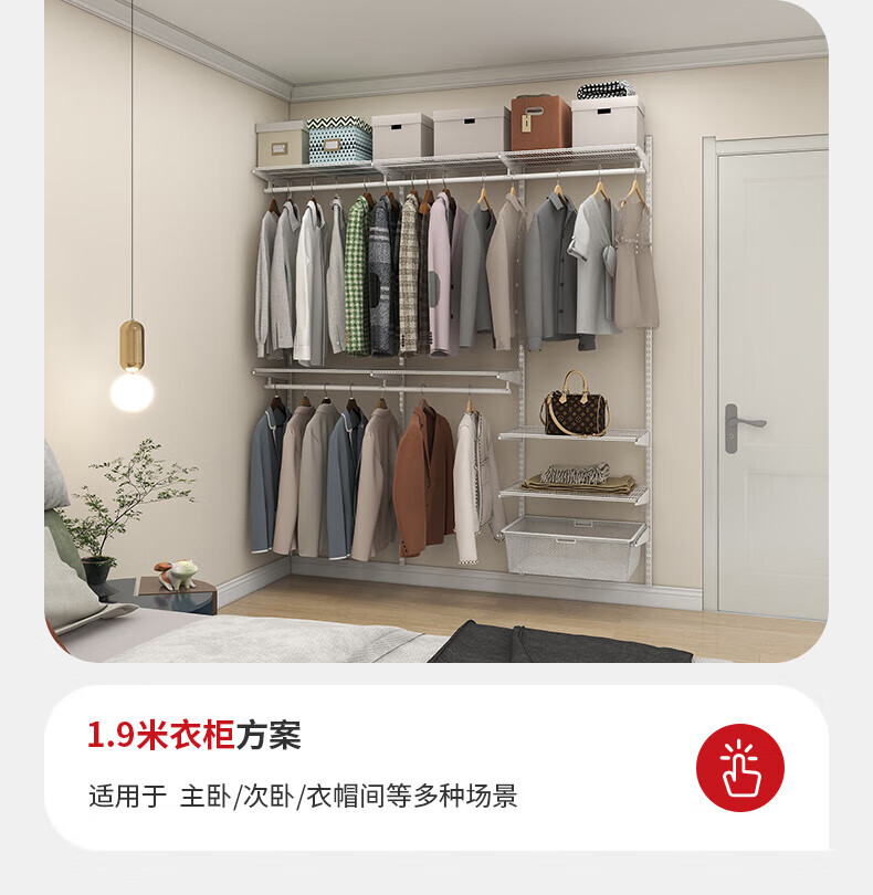 Jastec Metal Wall Wardrobe Open Wardrobe Walk-in DIY Assembly Cloakroom Homemade Customizable Delivery 1.9 Meters Option 1 Free Door-to-Door Installation