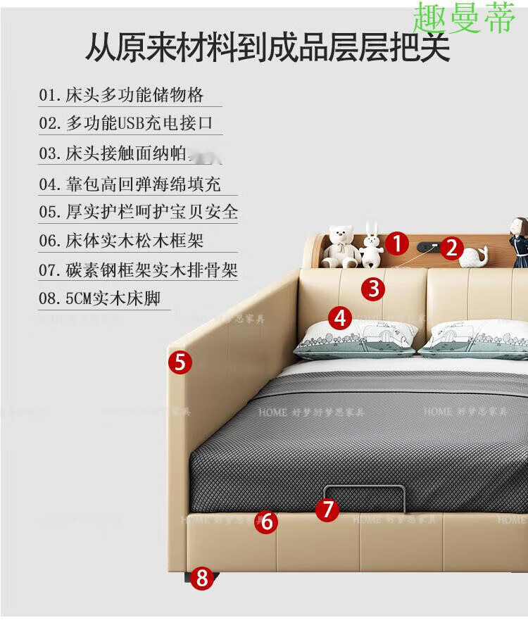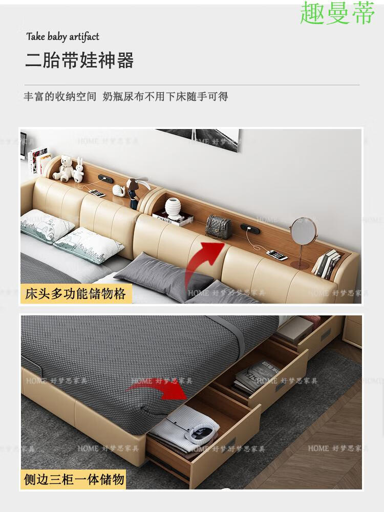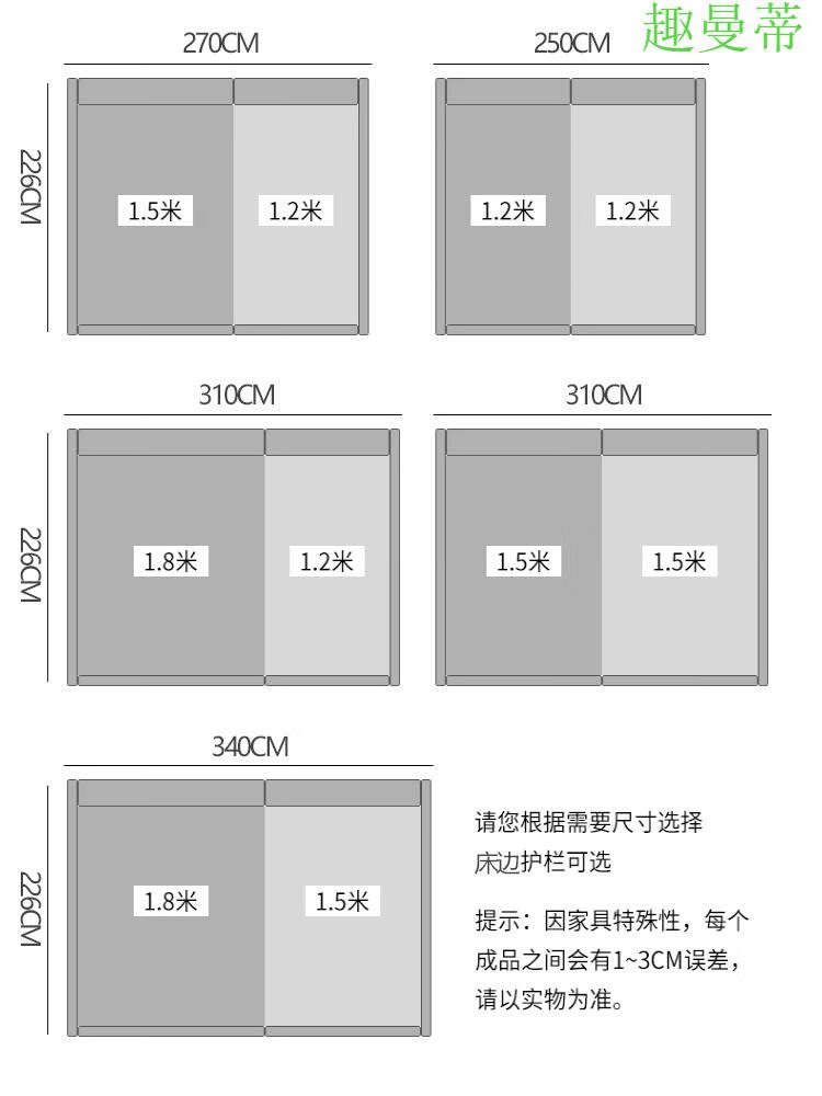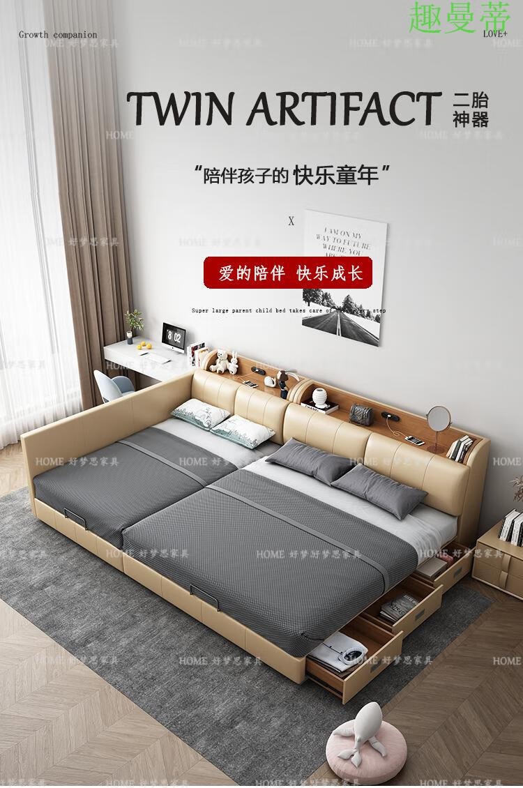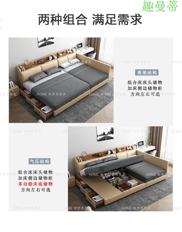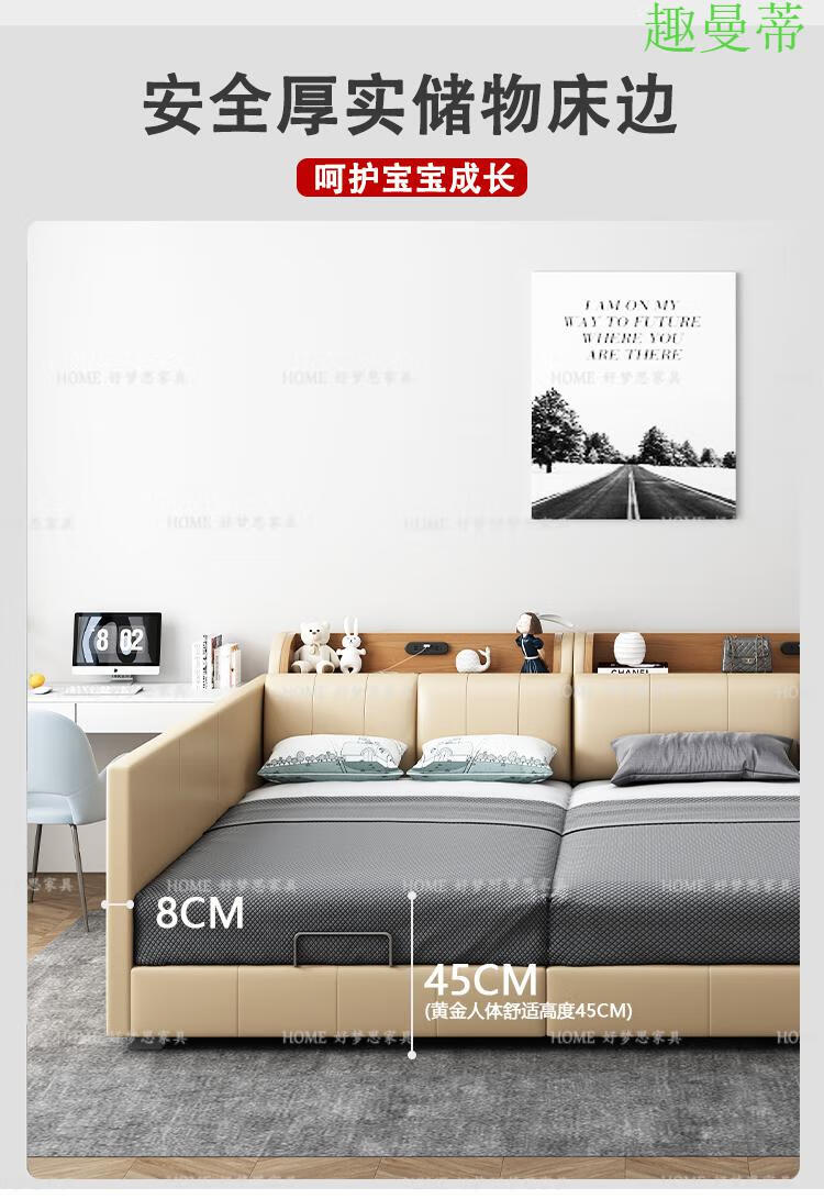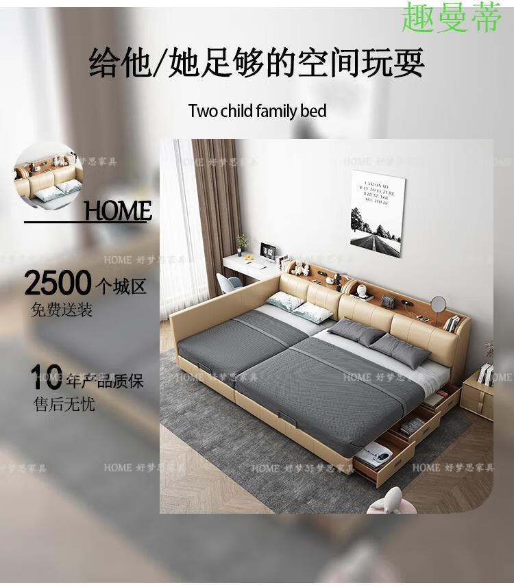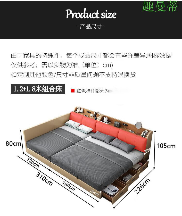 Qumandi three-person bed, large bed, tatami, second-child parent-child bed, third-child family combination, 4-person large bed, high box, multi-functional storage 3, 1.0+1.2m combination bed, bed circumference 2.3*2.26m, others x air pressure structure