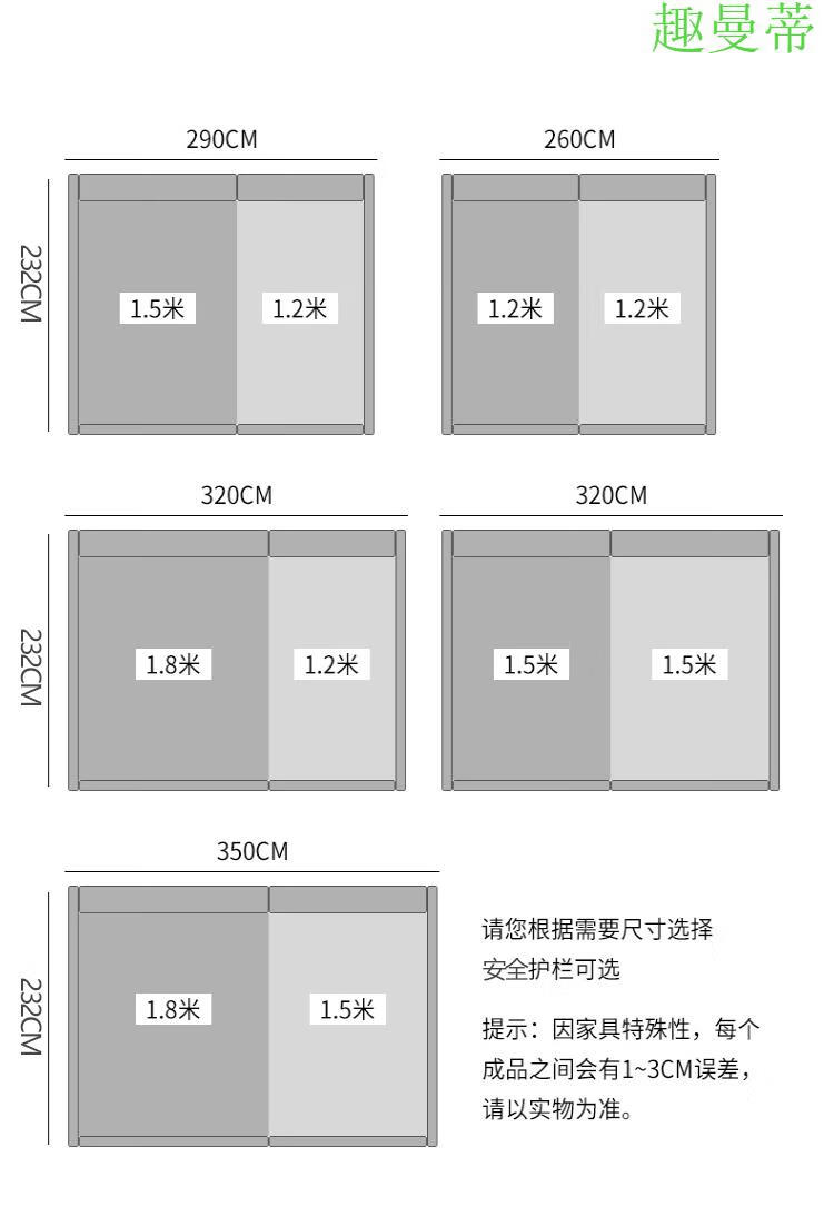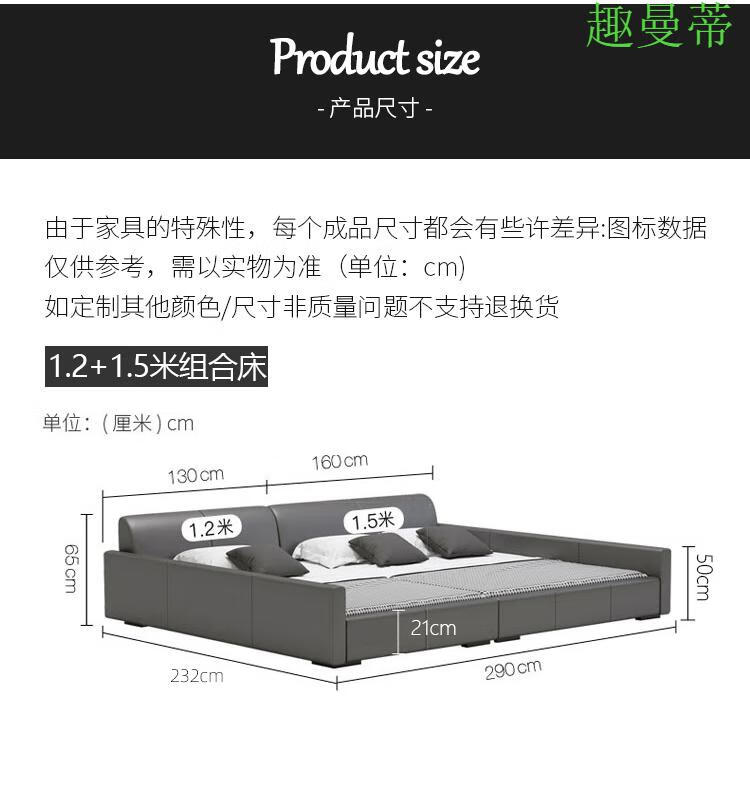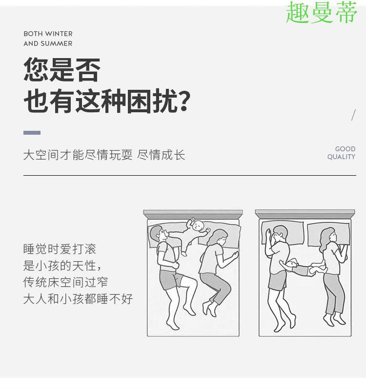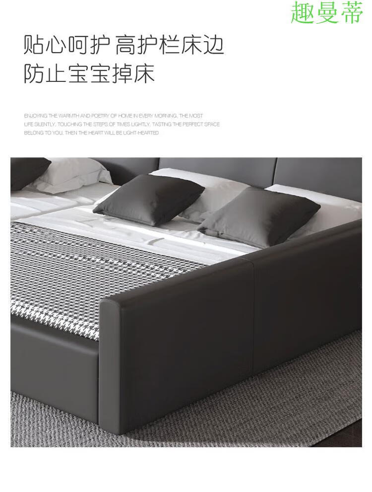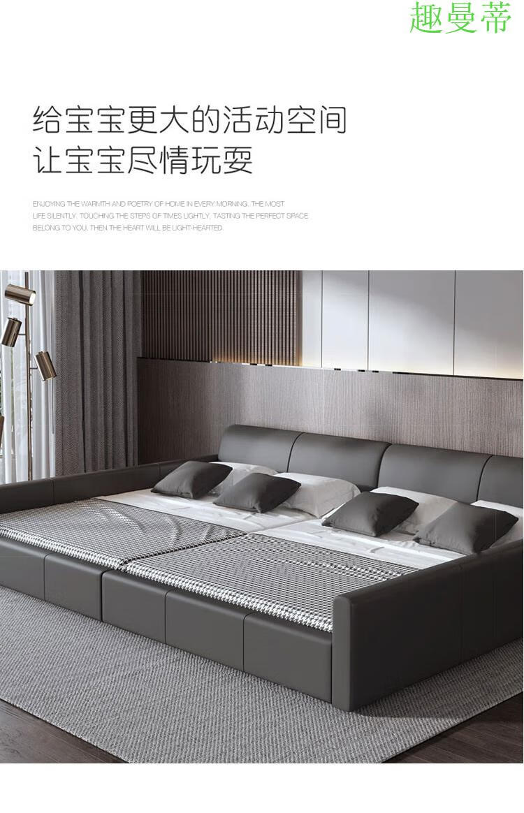 Qumandi triple bed large bed tatami second child family parent-child bed master bedroom modern simple 3 people 4 people spliced large bed 3 meters 1.5+1.8 meters bed + coconut palm spine mattress other x frame structure