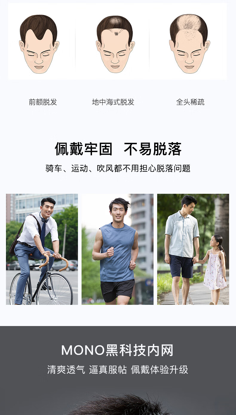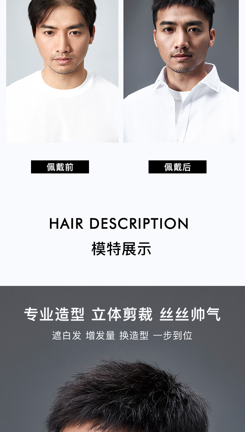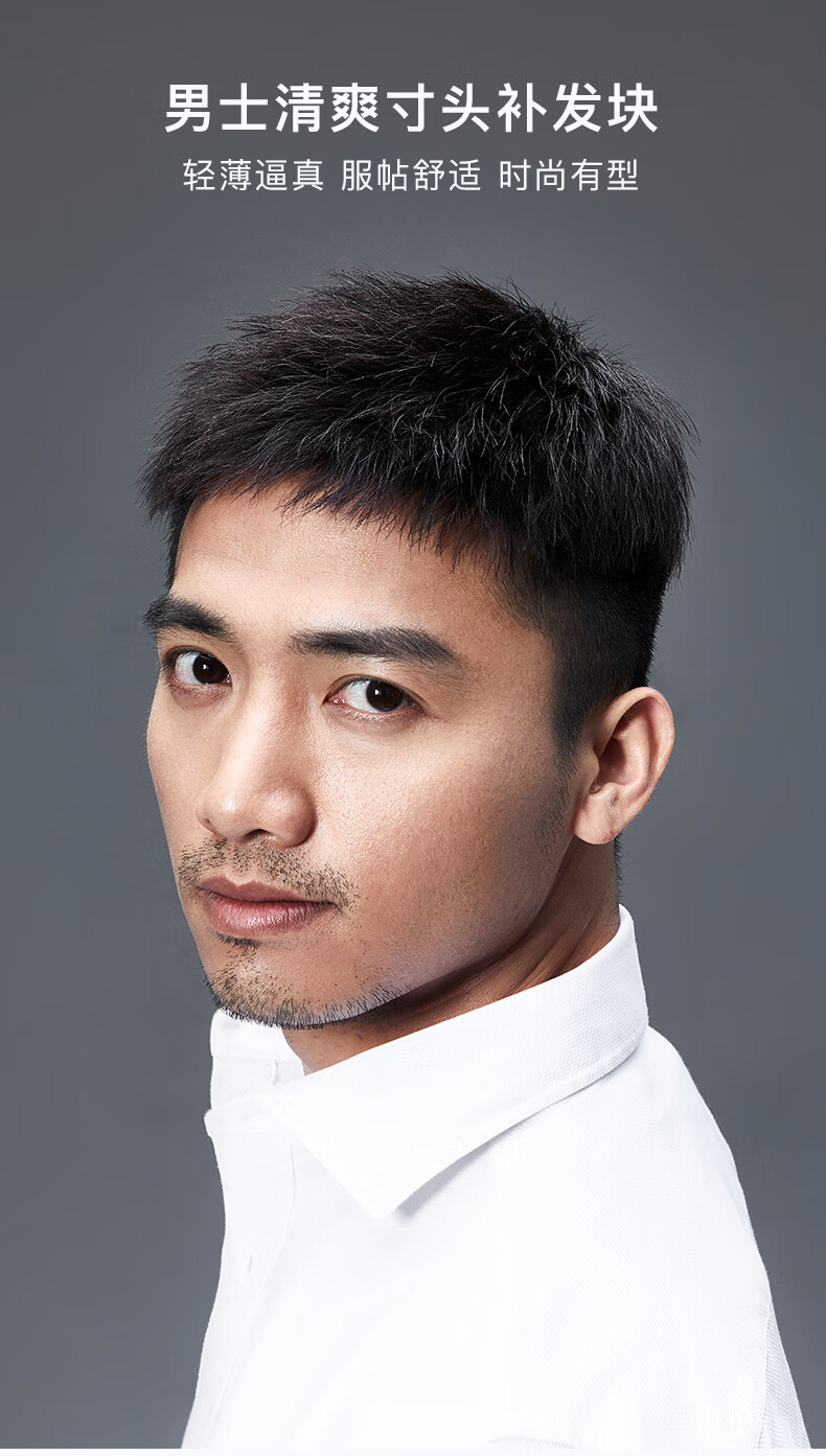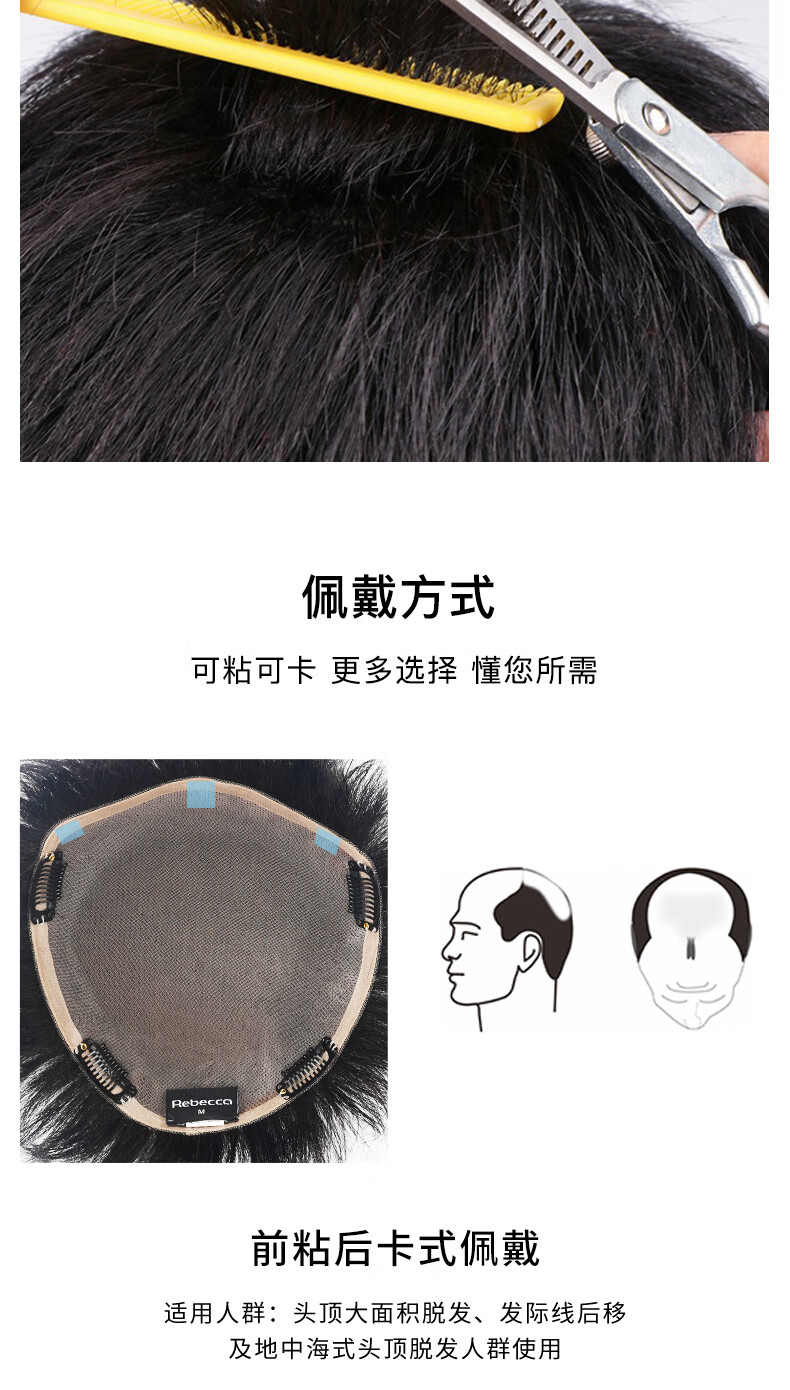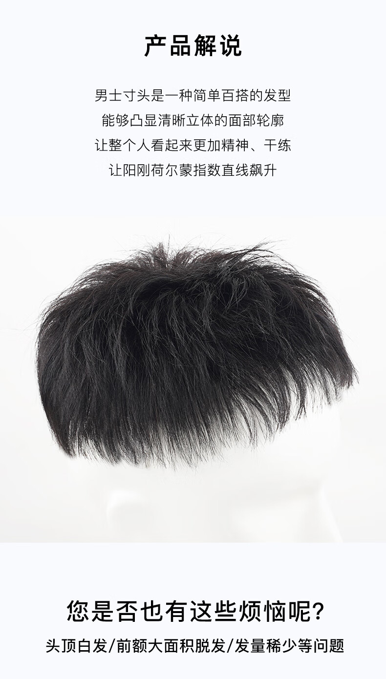 Rebecca Wig Men's Short Hair Top Refreshing Hair Refreshing 100% Real Human Hair Thin Lifelike Men's Wig Natural Black Breathable MONO Intranet