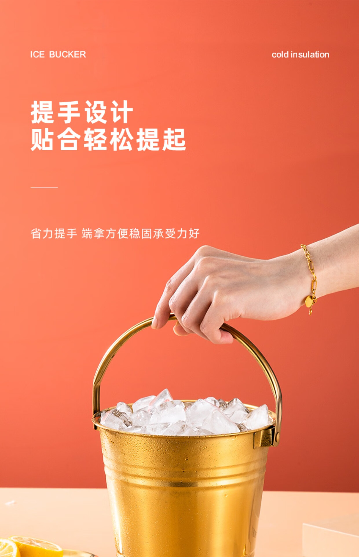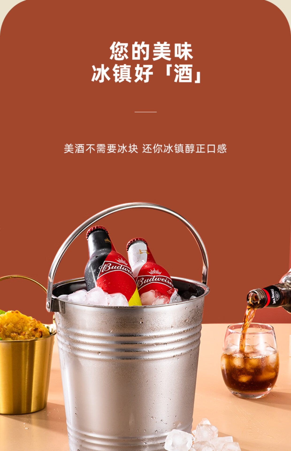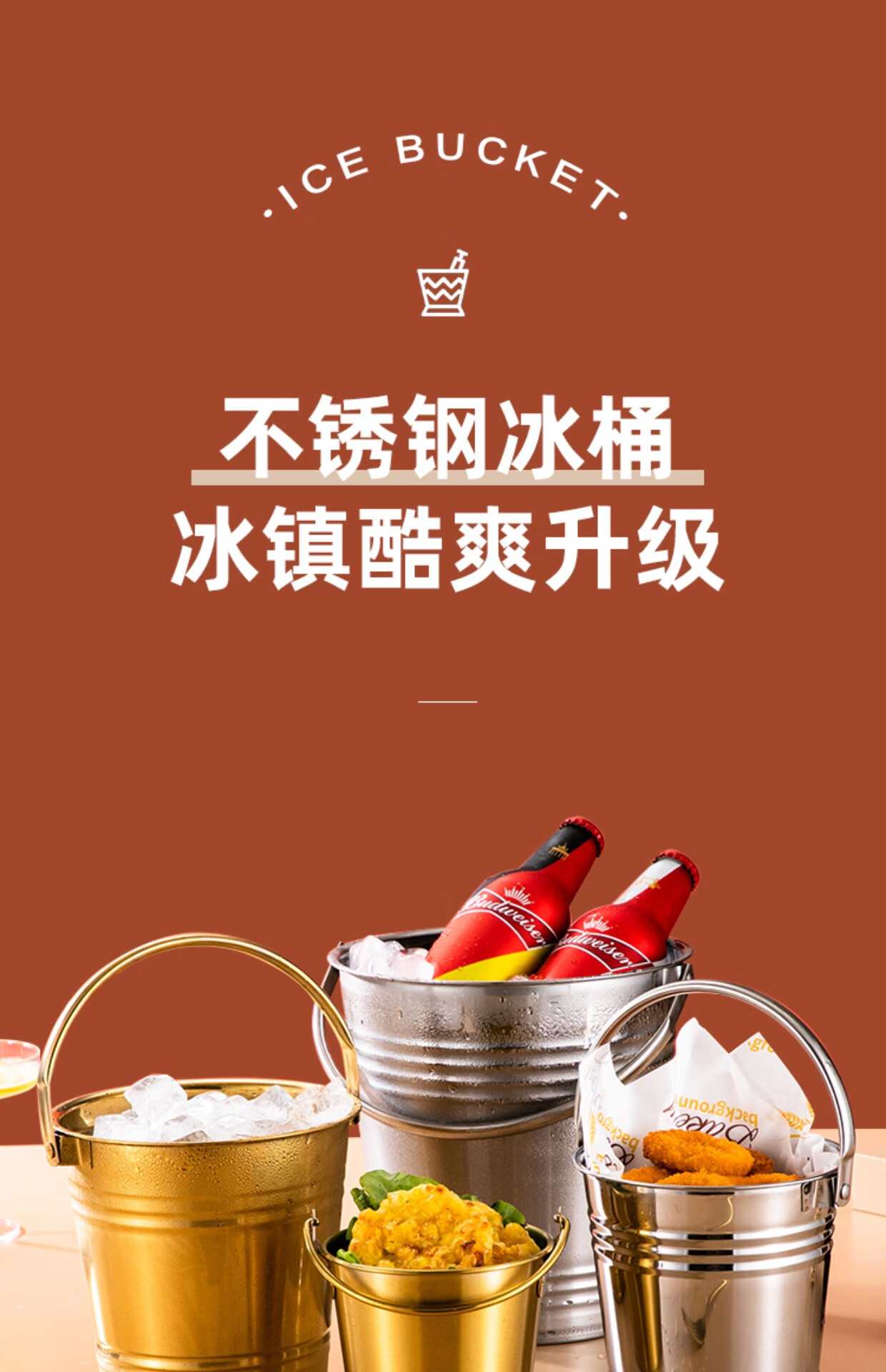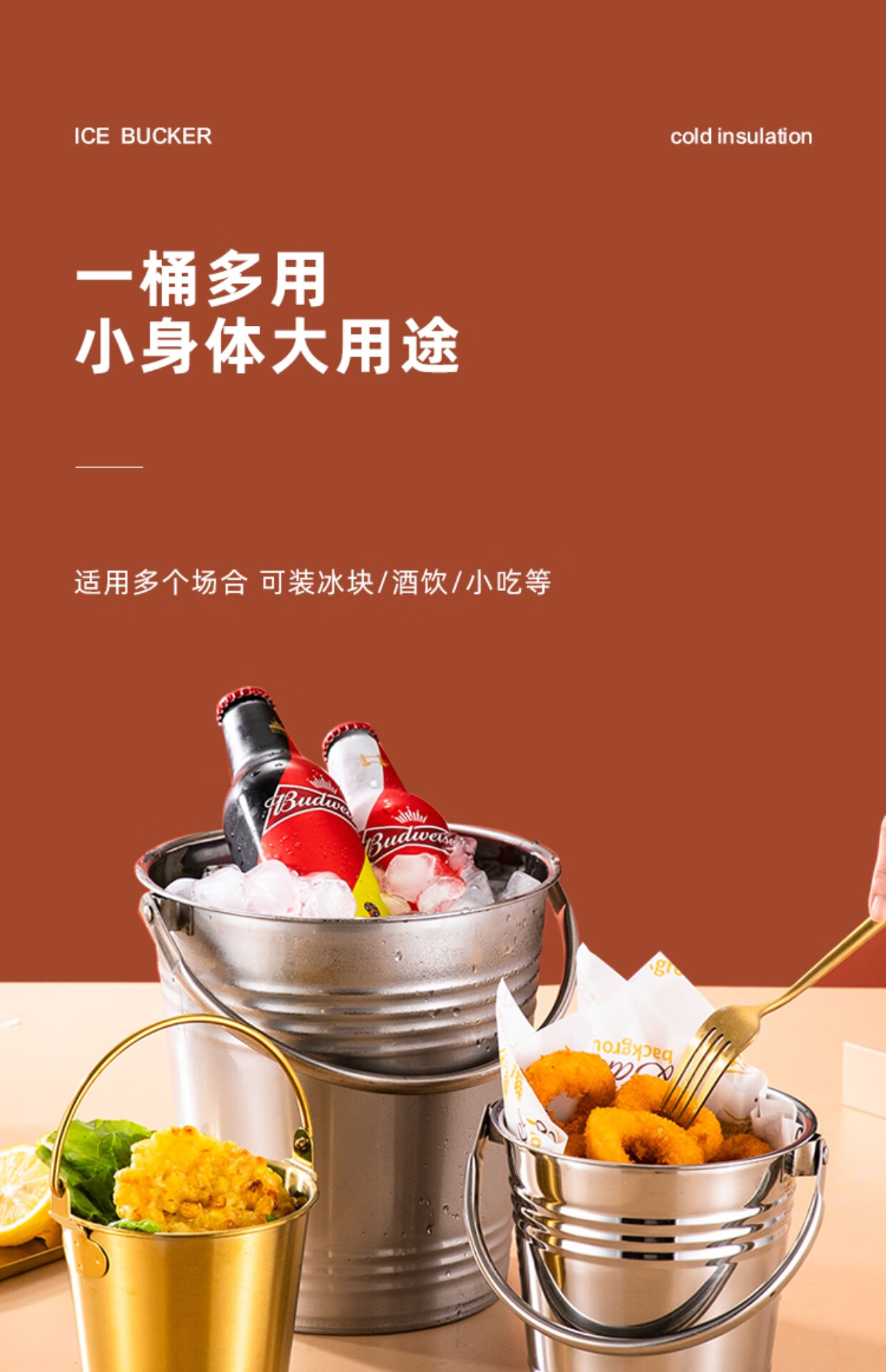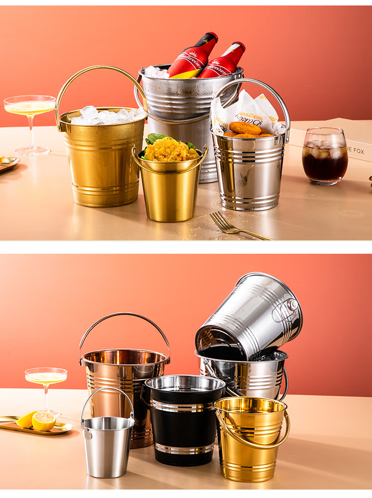 Chuanbao Internet celebrity ice bucket household stainless steel ice bucket bar KTV champagne beer red hotel supplies snack bucket commercial silver portable ice bucket 16cm (2L) + ice clip