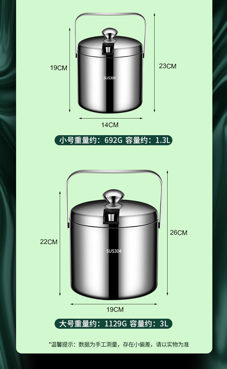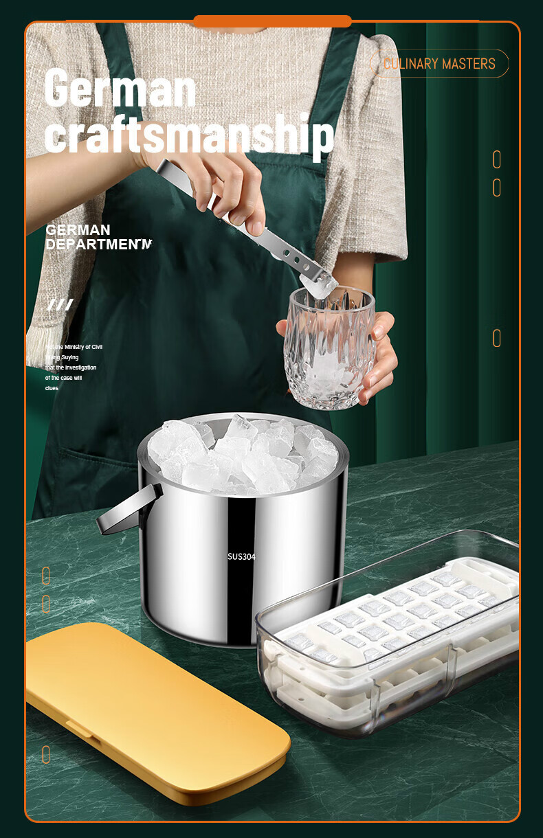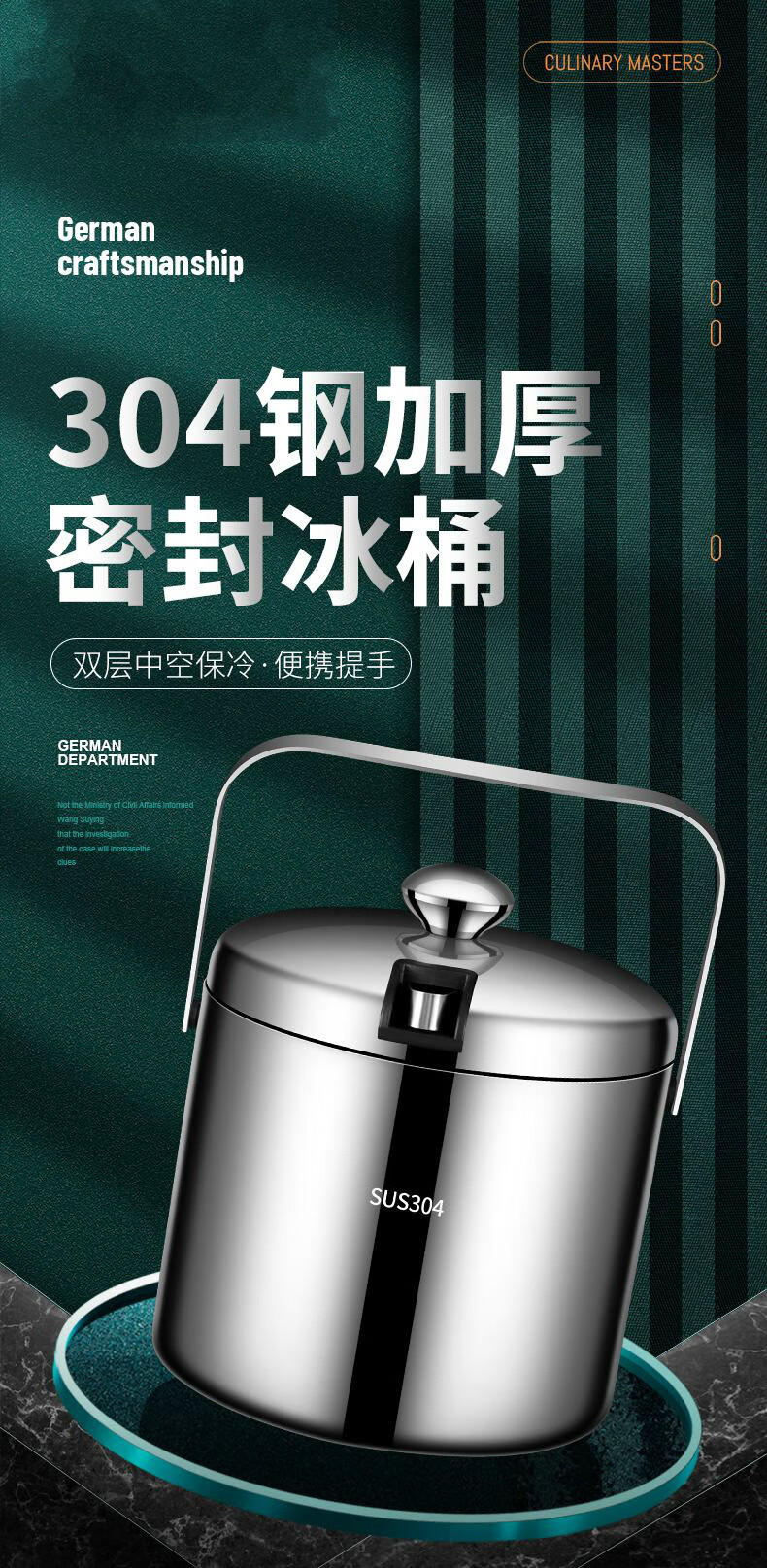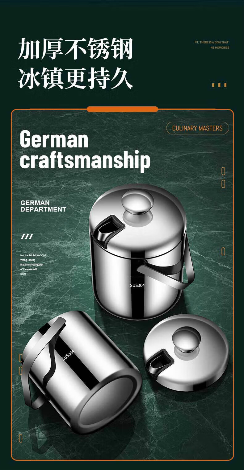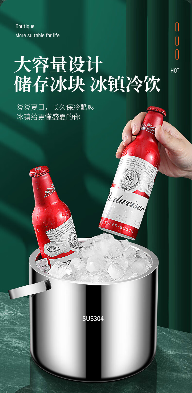 Chu'anbao 304 stainless steel ice bucket commercial ice bucket extra long cold-proof red wine bucket refrigerated ice storage bucket 304 double-layer ice bucket large with ice clip