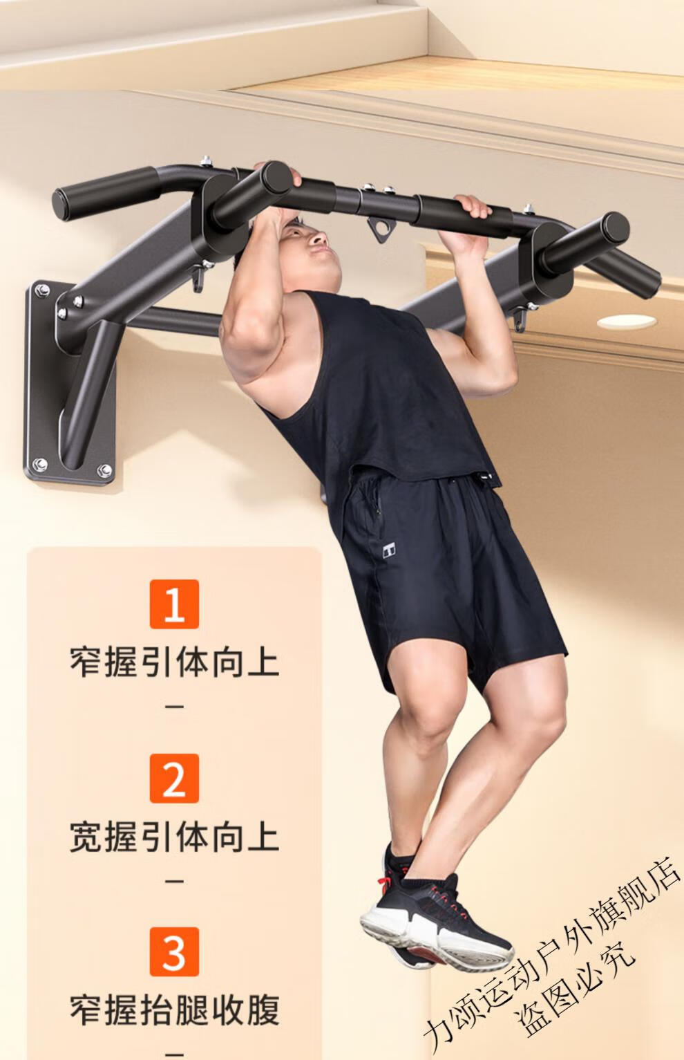 Weedon horizontal bar home indoor wall pull-up device punched children's single pole ring home fitness equipment simple horizontal bar (black)