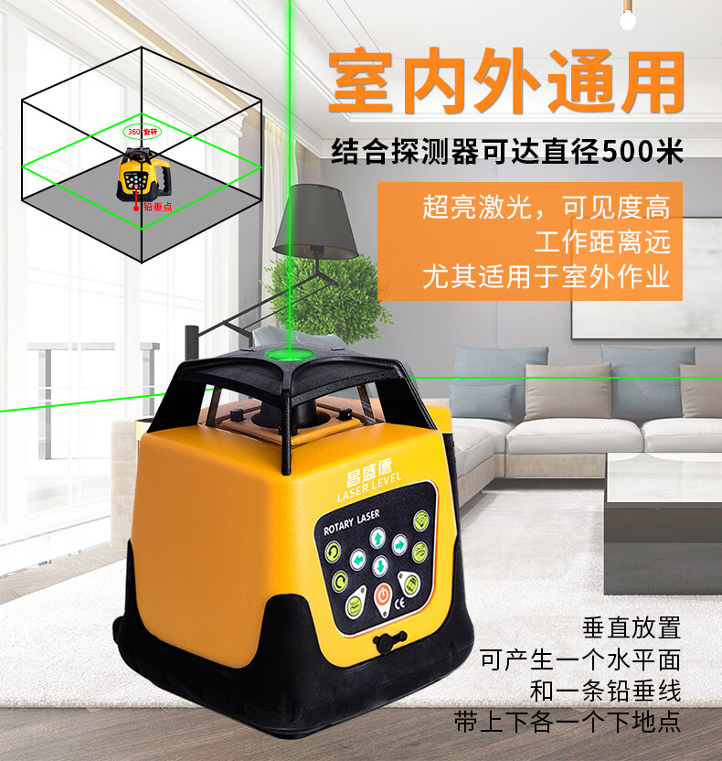 Changshengde Automatic Electronic Anping Outdoor Laser Sweeper Rotating Laser Leveling Leveling Marker Level High-Precision Including Receiver Green Light Sweeper 500 Meters