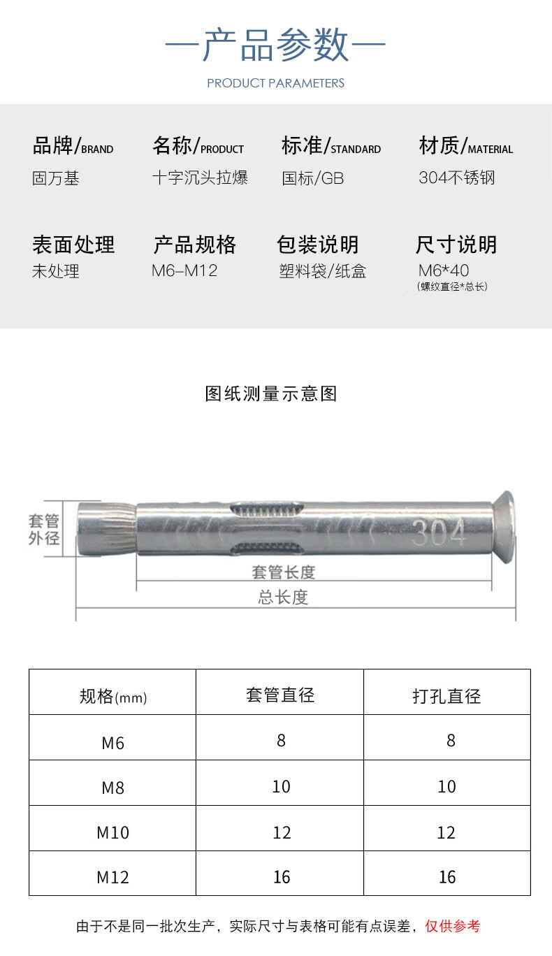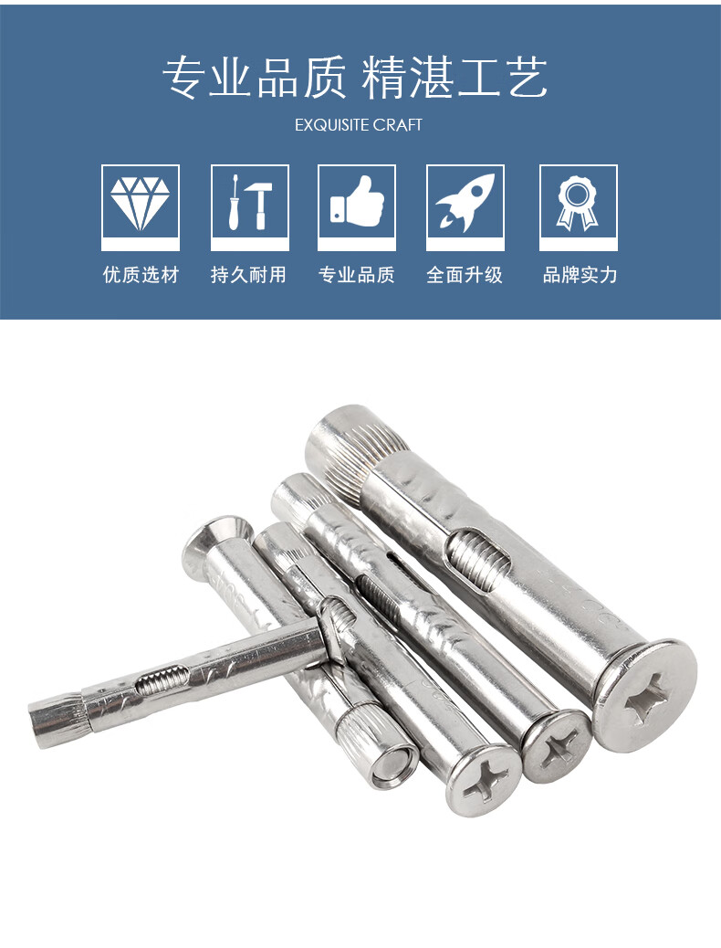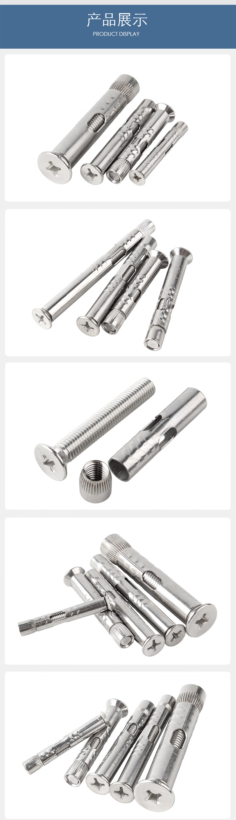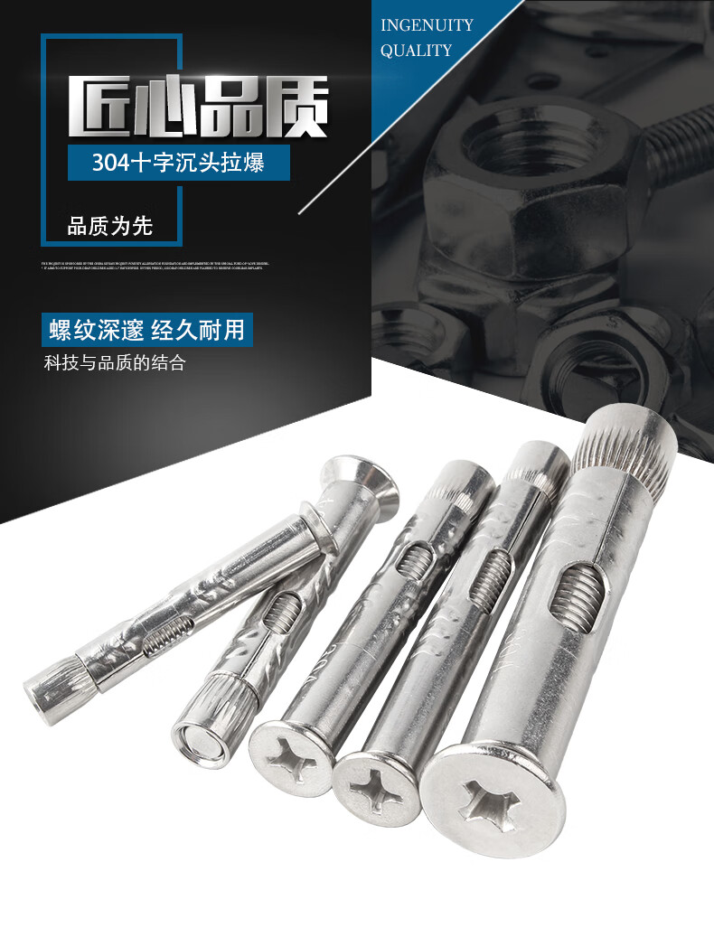 Guwanji 304 stainless steel cross countersunk head internal expansion bolt flat head built-in door and window pull-out screw national standard fastener M6*60 (5 pieces) 304 material