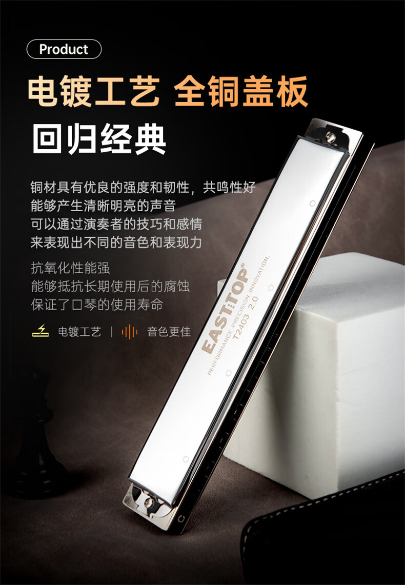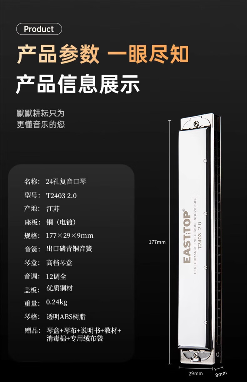 Dongfang Ding EasttopT2403 polyphonic 24-hole C harmonica student adult practice beginner harmonica playing version 2.0 T2403 polyphonic version 2.0 A key