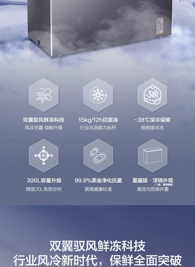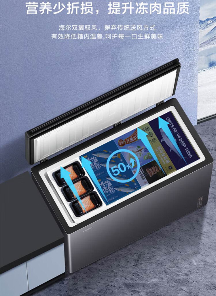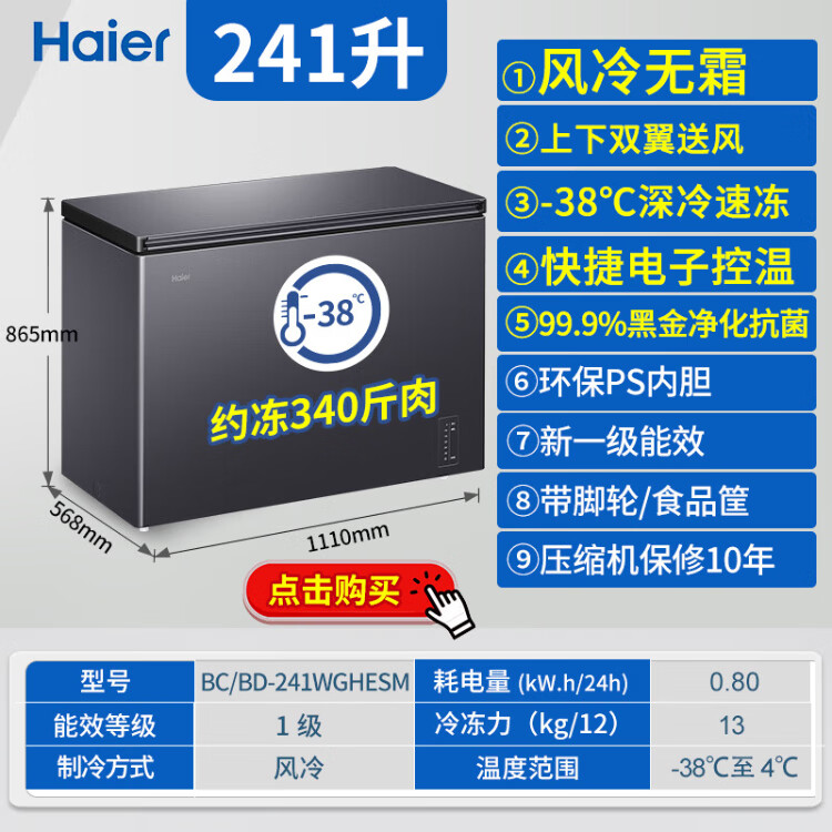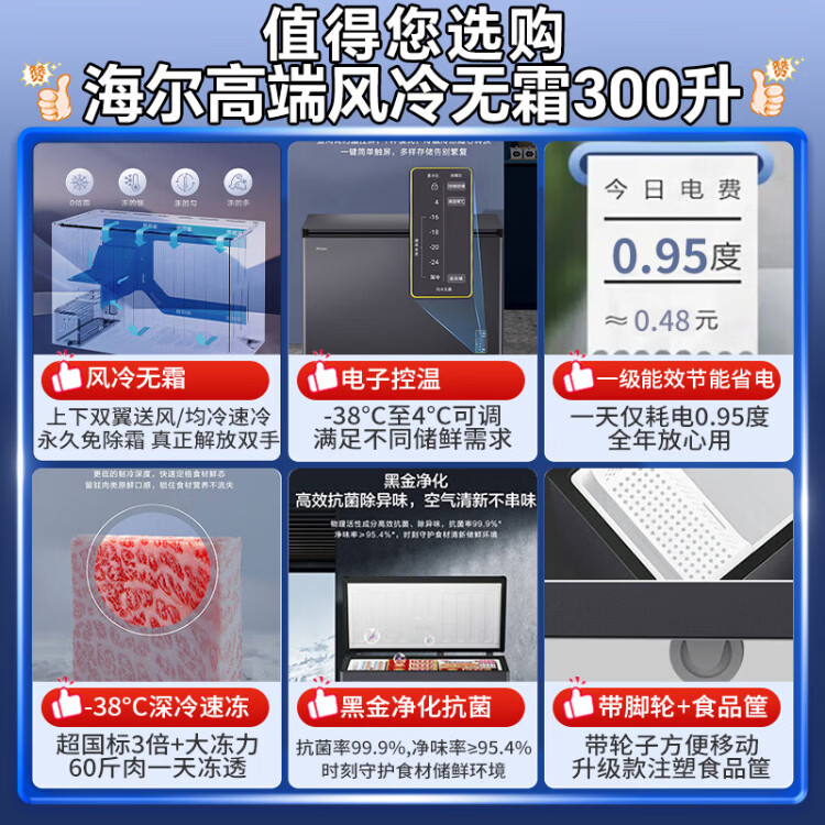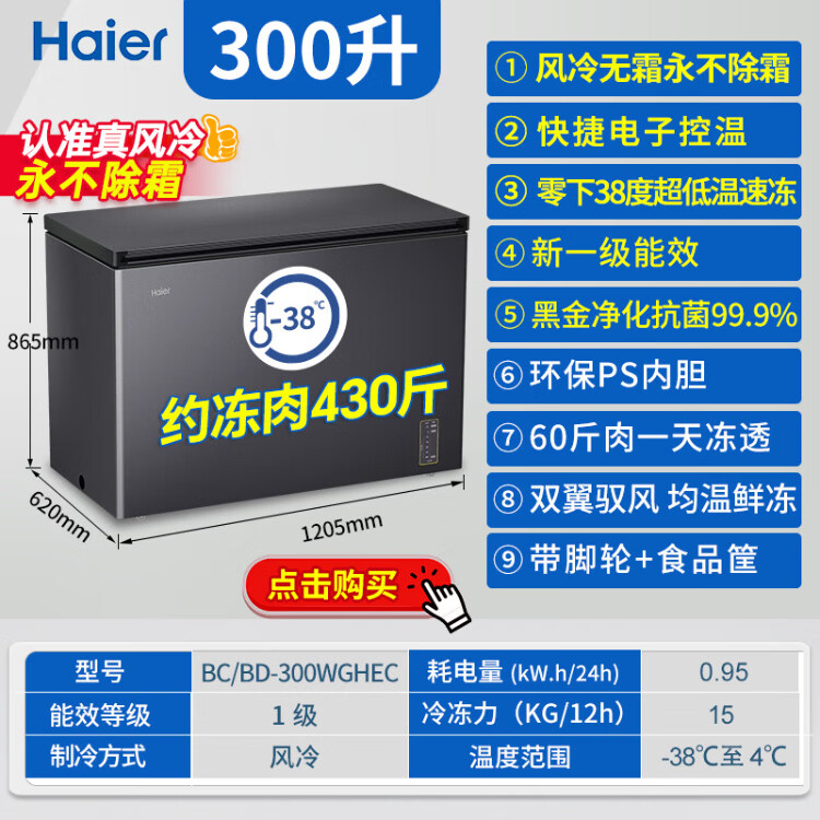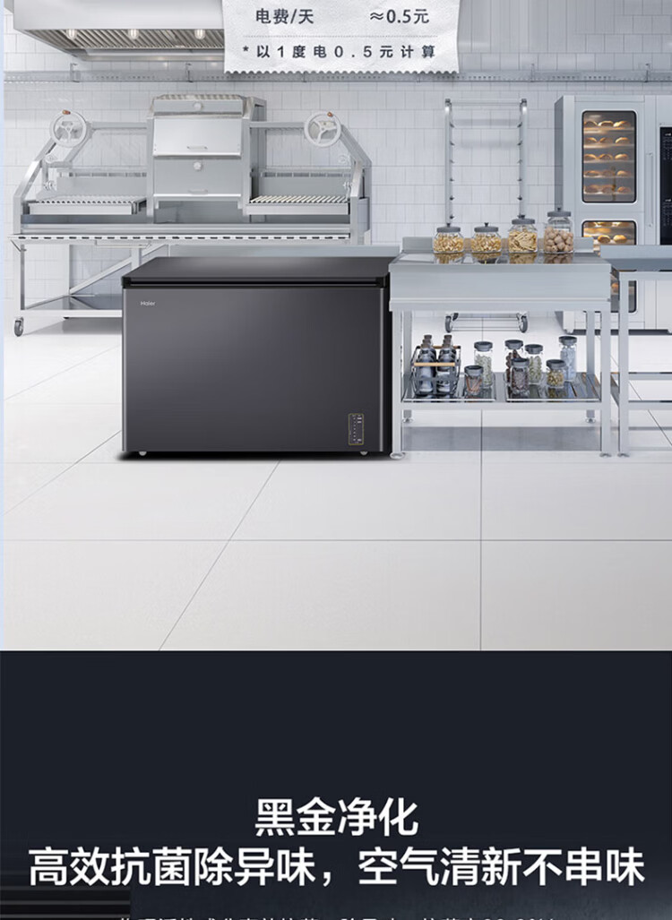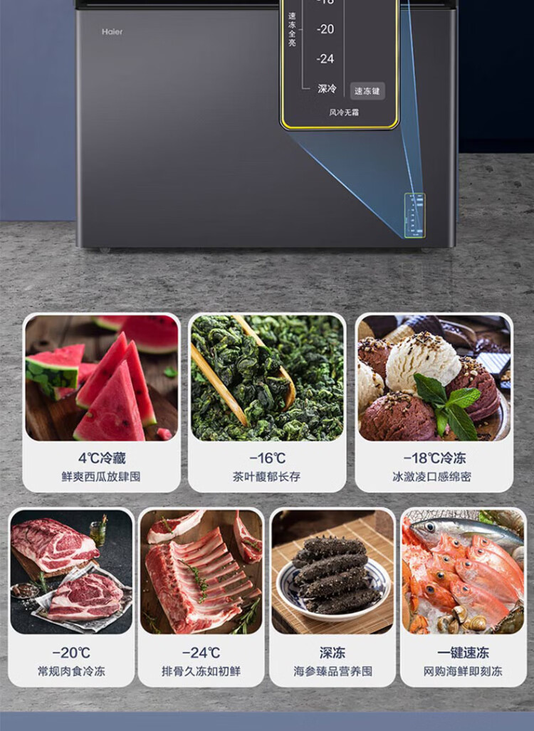 Haier high-end air-cooled frost-free first-level energy efficiency freezer household 200/300 liters or more large capacity minus-38 degrees ultra-low temperature commercial refrigeration freezing conversion small seafood 200 liters high-end model true air-cooled frost-free never defrost black gold purification