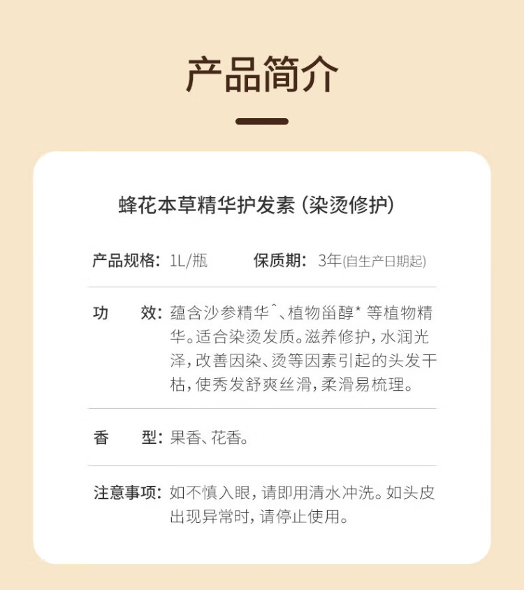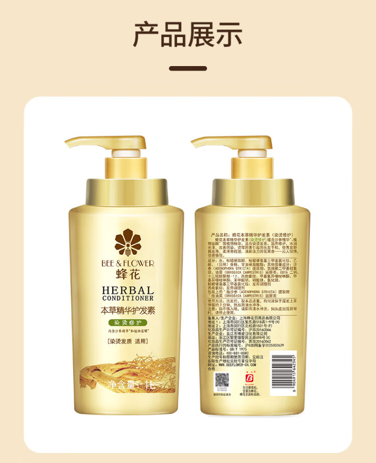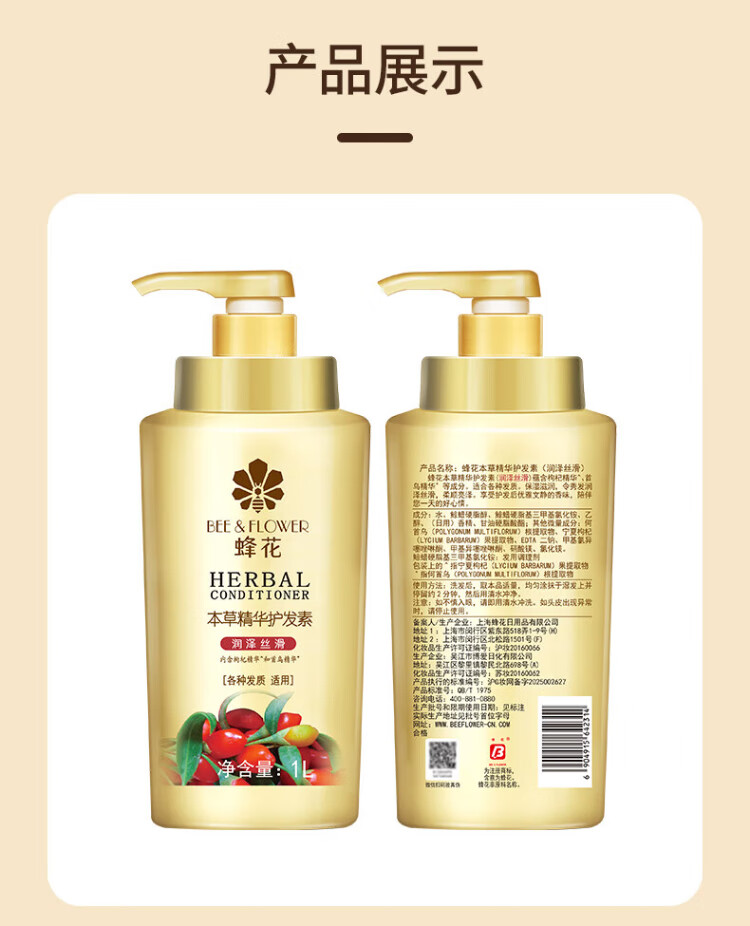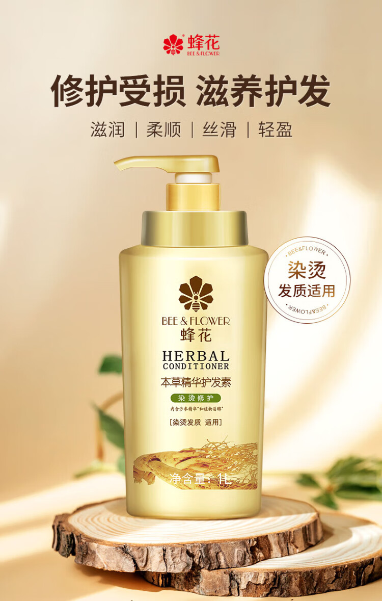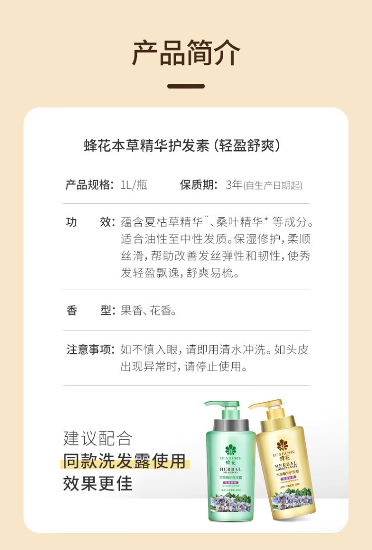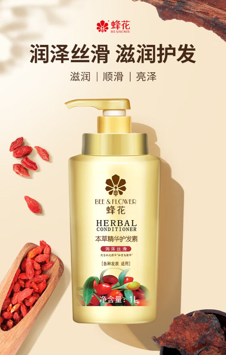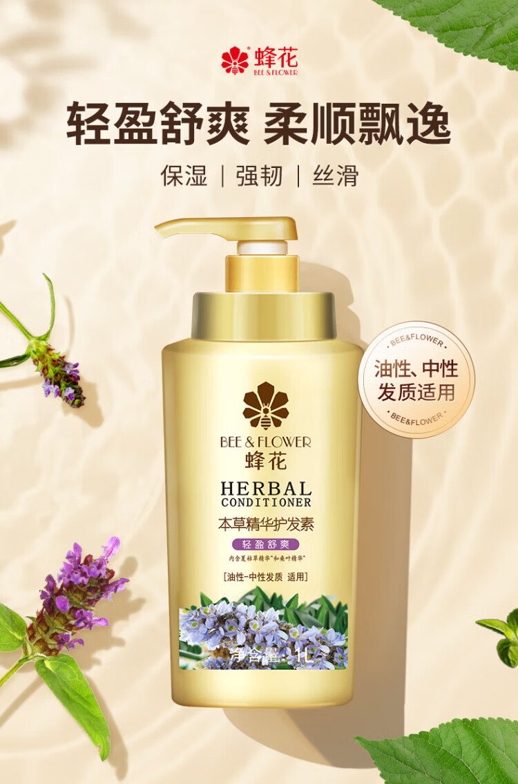 Bee Flower Herbal Essence Conditioner for Men and Women Moisturizing and Silky Hair Dyeing and Perming Repair Light and Comfortable Improve Dry and Rough Conditioner Herbal Moisturizing and Silky Conditioner 1L*1 Bottle