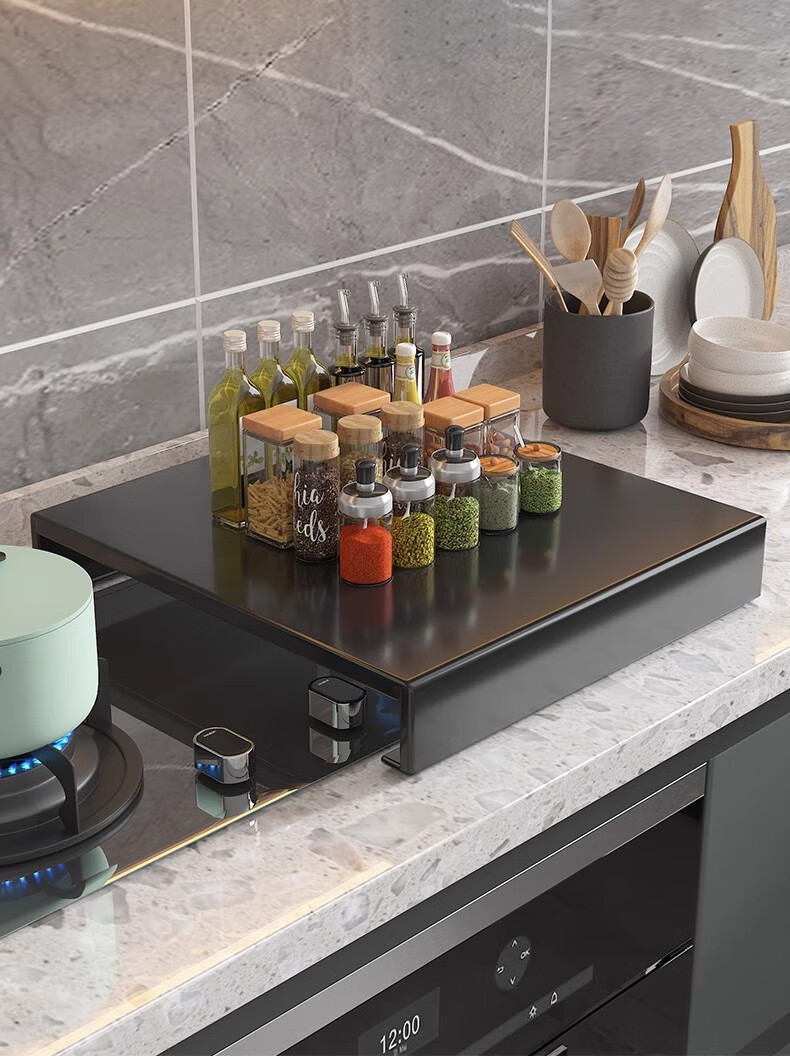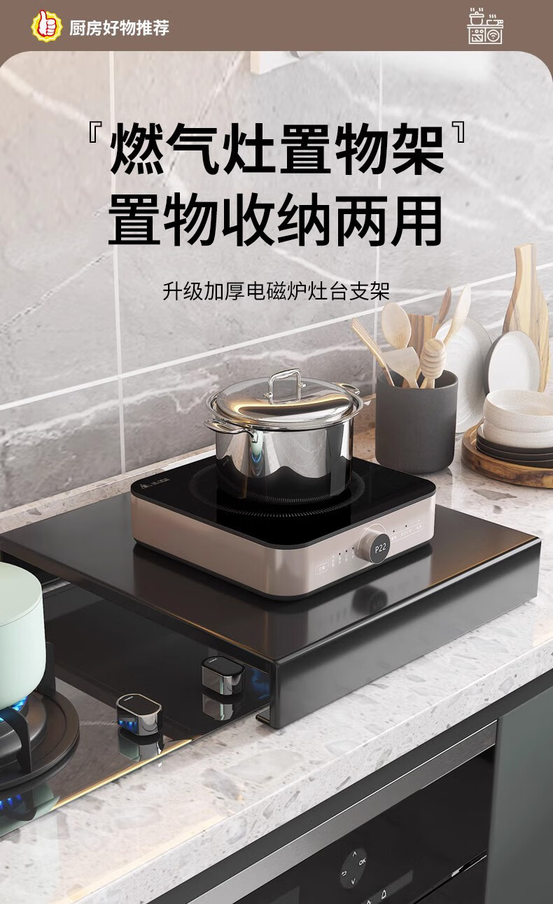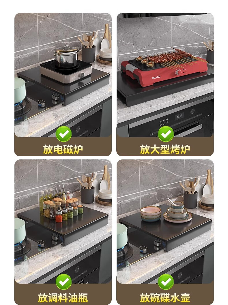 Baking Elf gas stove cover cover induction cooker bracket stainless steel kitchen shelf gas stove cover thickened stove stand carbon steel black length 30 depth 40 height 5 thickened version