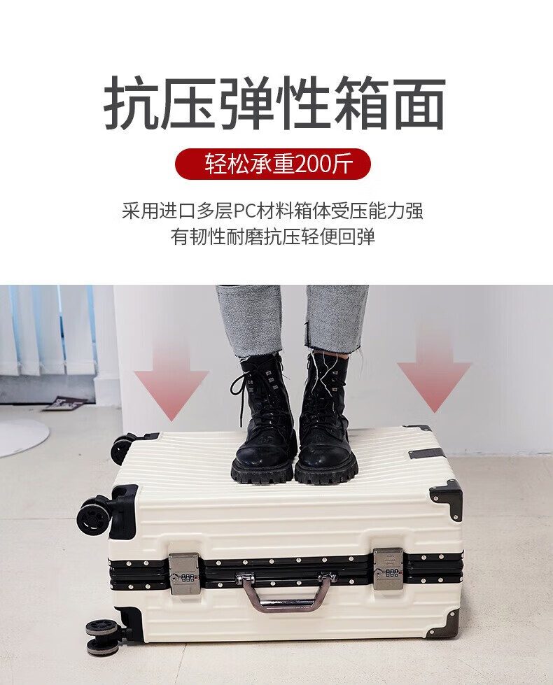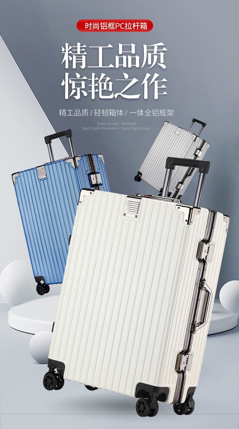 Huatong suitcase, aluminum frame trolley case, strong and pressure-resistant, can sit on the password box, student large-capacity aluminum alloy hard-shell suitcase, noble black, thickened PC-scratch and wear-resistant, 26 inches, student accommodation
