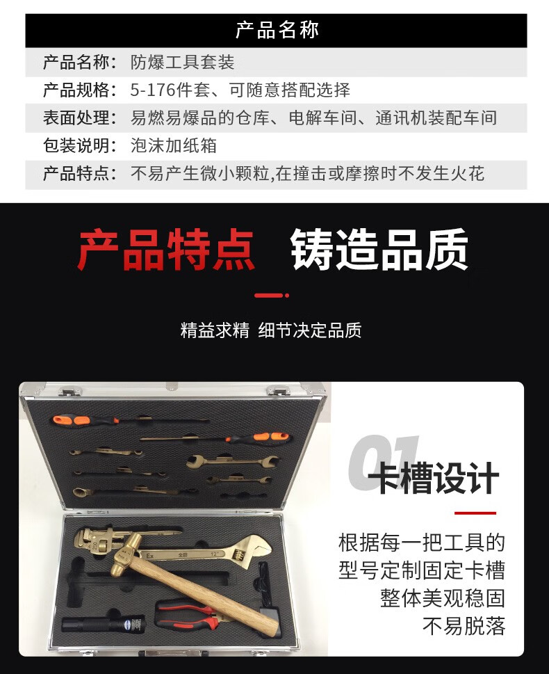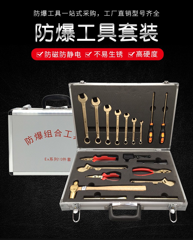 Fully anti-explosion-proof tool combination set, anti-magnetic gas station, oil depot and gas station, special aluminum bronze, beryllium bronze, non-sparking safety, 21-piece set with explosion-proof certificate, official website available