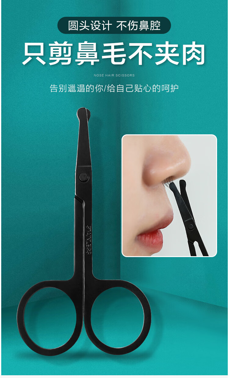 Xunliba nose hair trimming scissors, round head safety scissors, stainless steel nose hair trimmer, nose hair trimmer, beauty tools for men and women, bright silver, 1 pack
