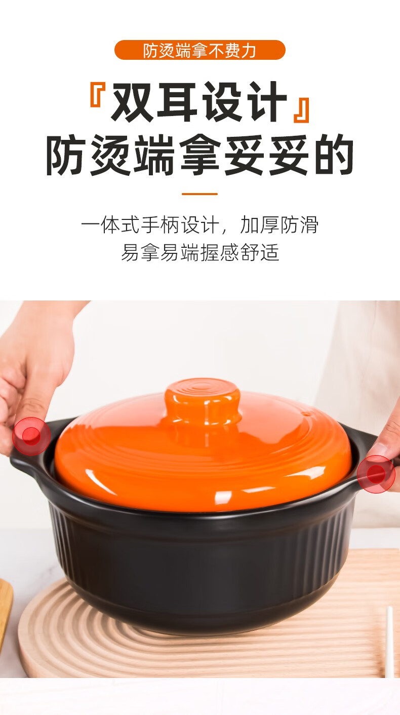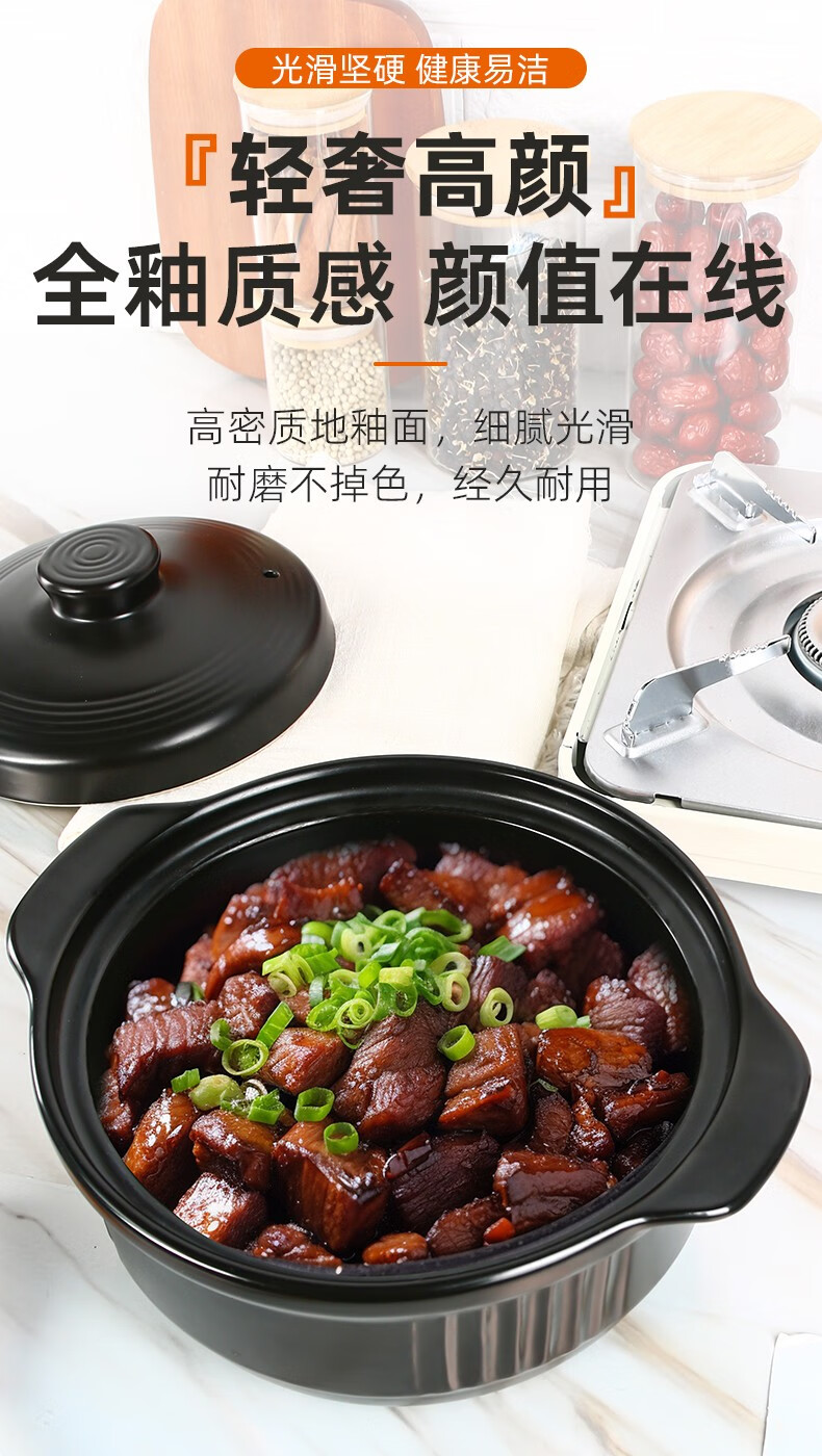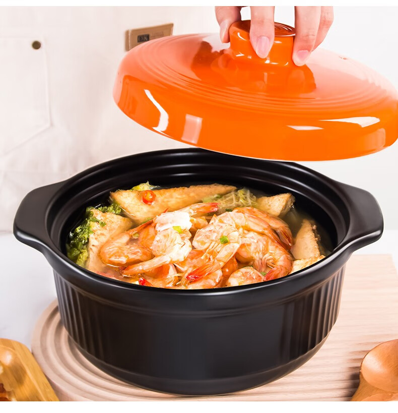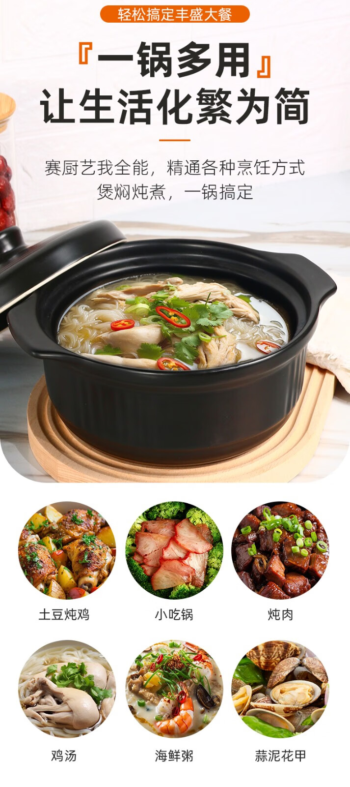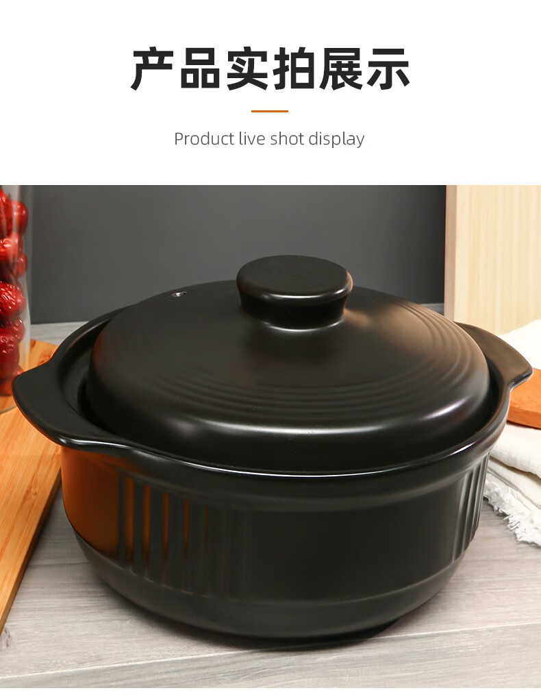 UMIZILI casserole high temperature resistant stew pot dry burning non-cracking household gas large capacity stew pot ceramic casserole commercial stone pot black stew pot 3300ML (suitable for 3-5 people)