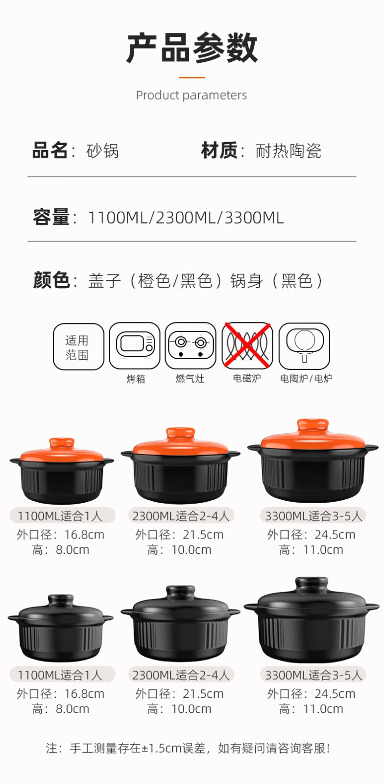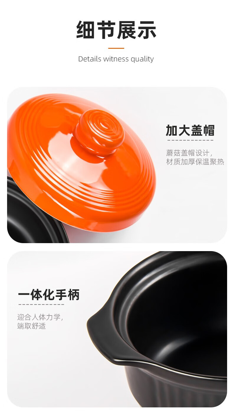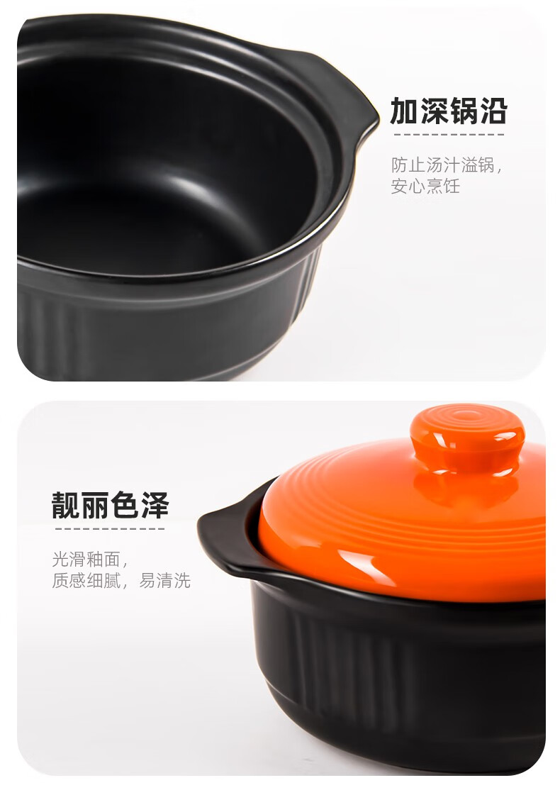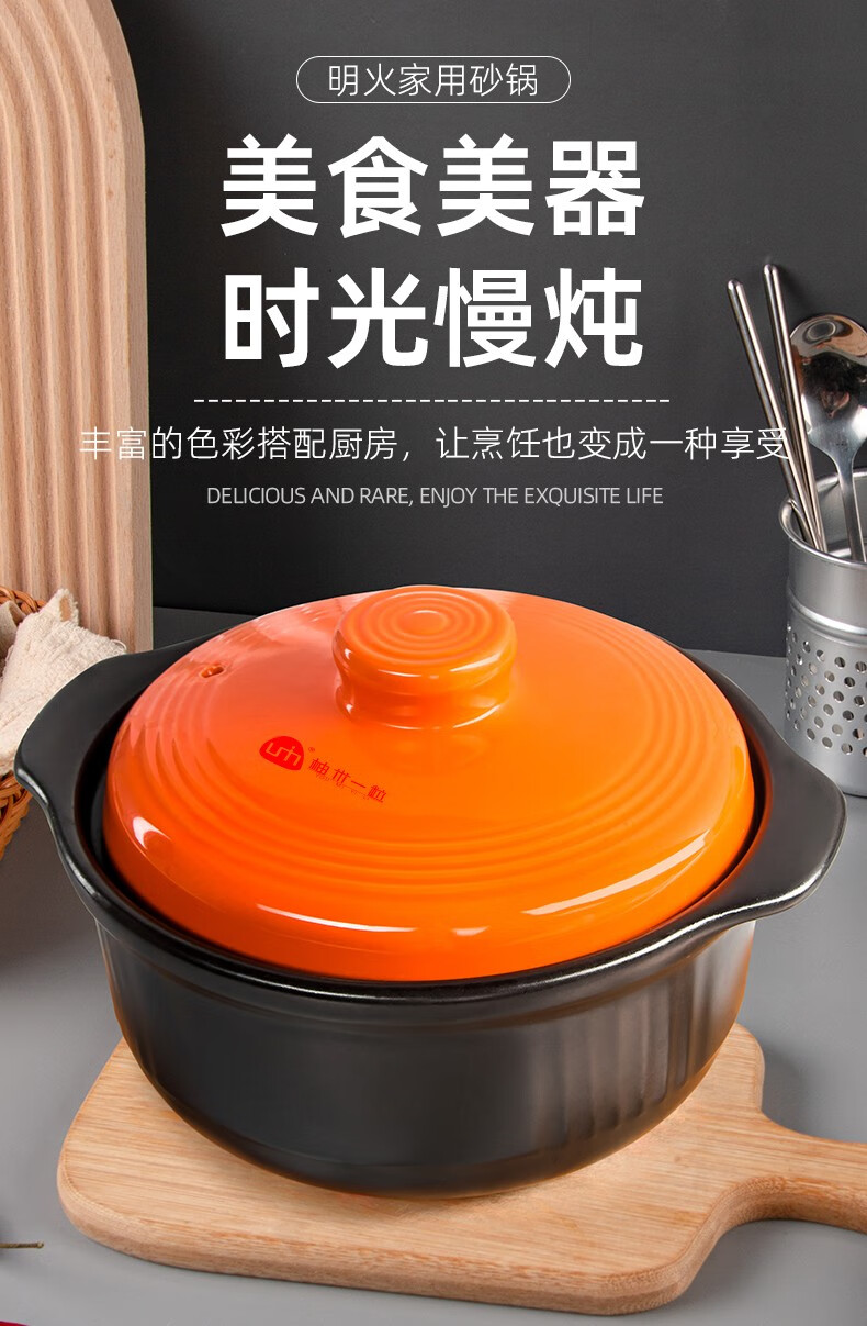 UMIZILI casserole high temperature resistant stew pot dry burning non-cracking household gas large capacity stew pot ceramic casserole commercial stone pot black stew pot 3300ML (suitable for 3-5 people)