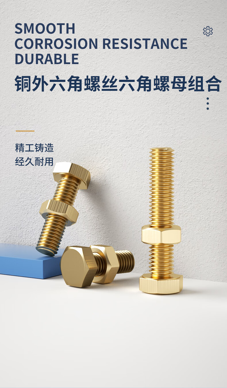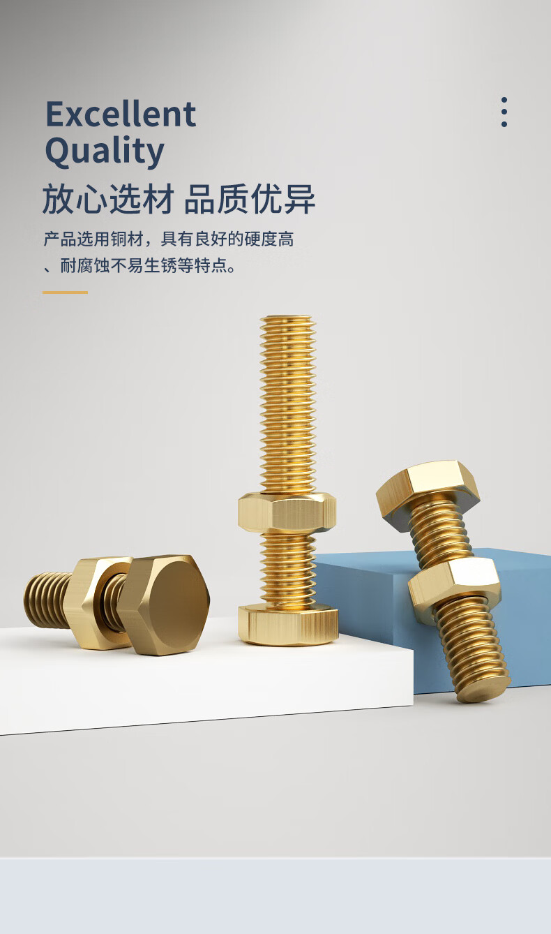 Guwanji copper screws and nuts set, external hexagonal screws, bolt cap combination screws, national standard fasteners, M5x10 5 sets