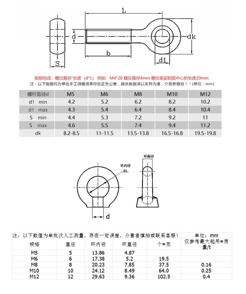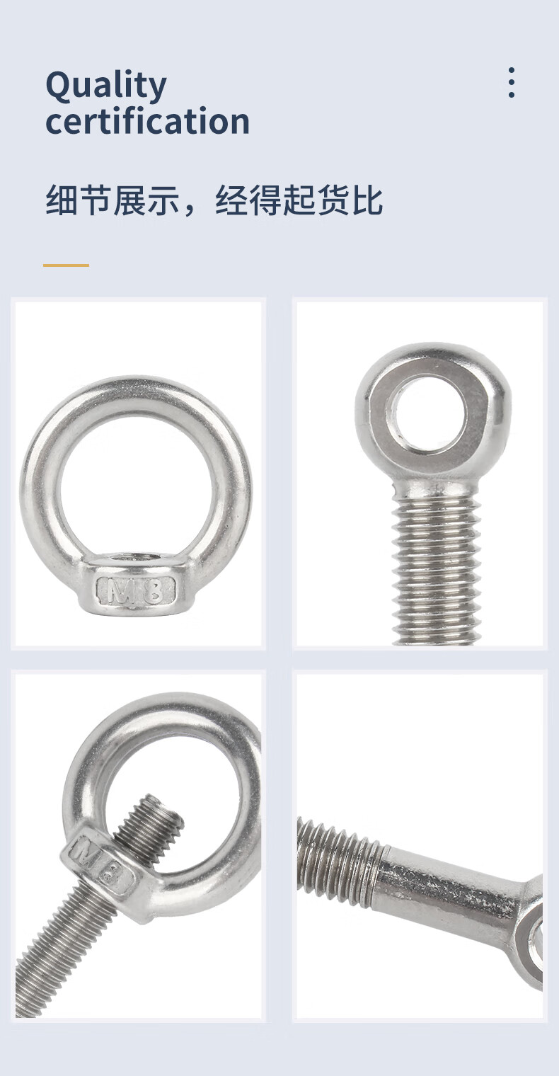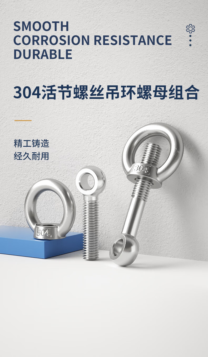 Guwanji 304 stainless steel swing bolt eye nut swing screw lifting nut set GB798 national standard fastener collection M12x50 1 set
