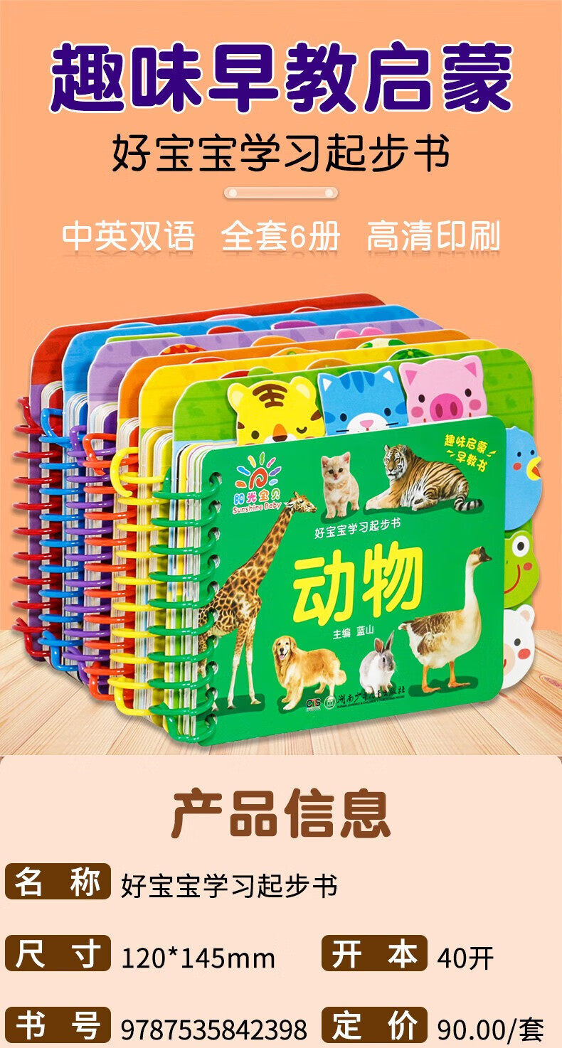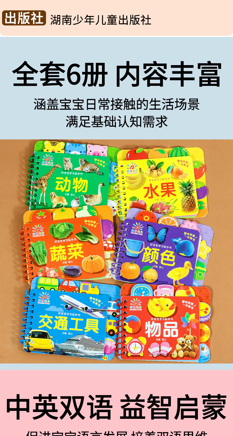 Early education flip book full set of 6 volumes, 0-1-2-3 year old baby enlightenment cognitive picture book, 0-3 year old infant enlightenment early education book, cognitive book, fruits, vegetables, colors, animals, children's puzzle, picture recognition, one-and-a-half-year-old and two-year-old baby books, affordable 6 volumes, good baby learning starting book (chosen by 85% of parents)