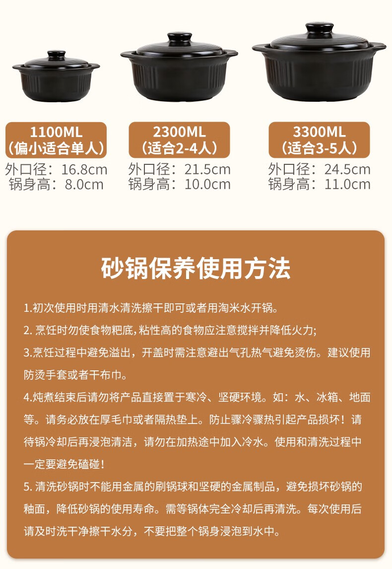 UMIZILI casserole, high temperature resistant dry-burning non-cracking stew pot, household gas large capacity stew pot, ceramic casserole, commercial stone pot, stew pot 3300ML (suitable for 3-5 people)