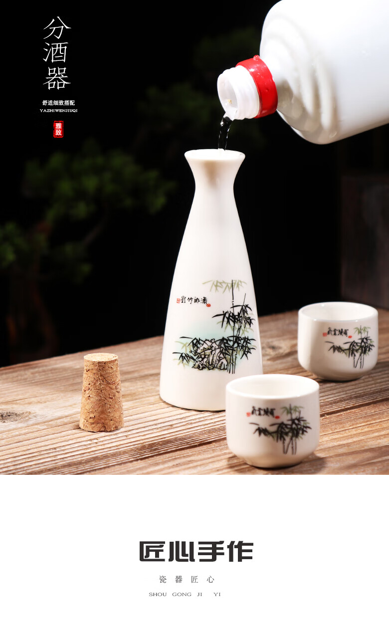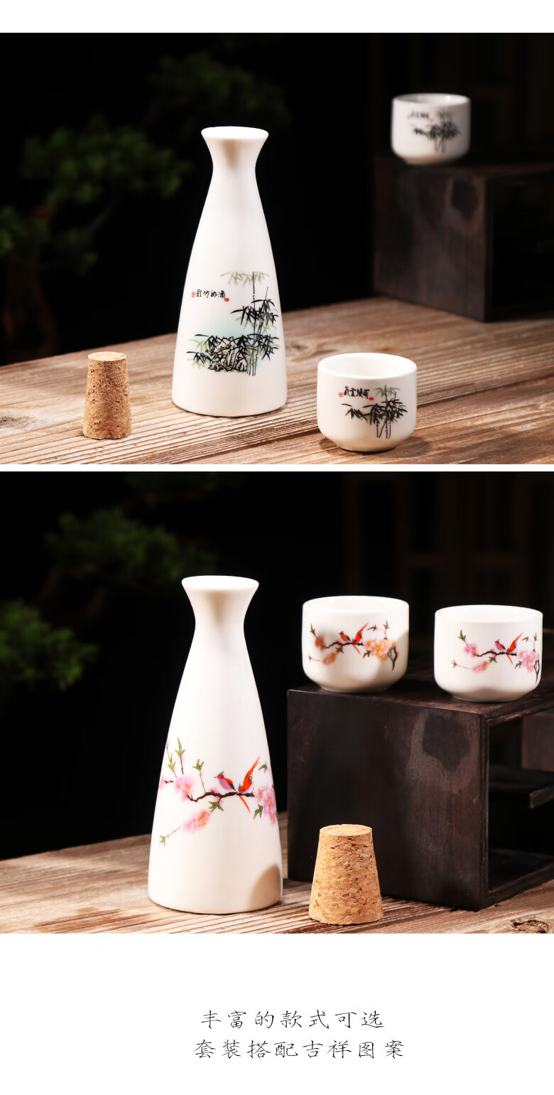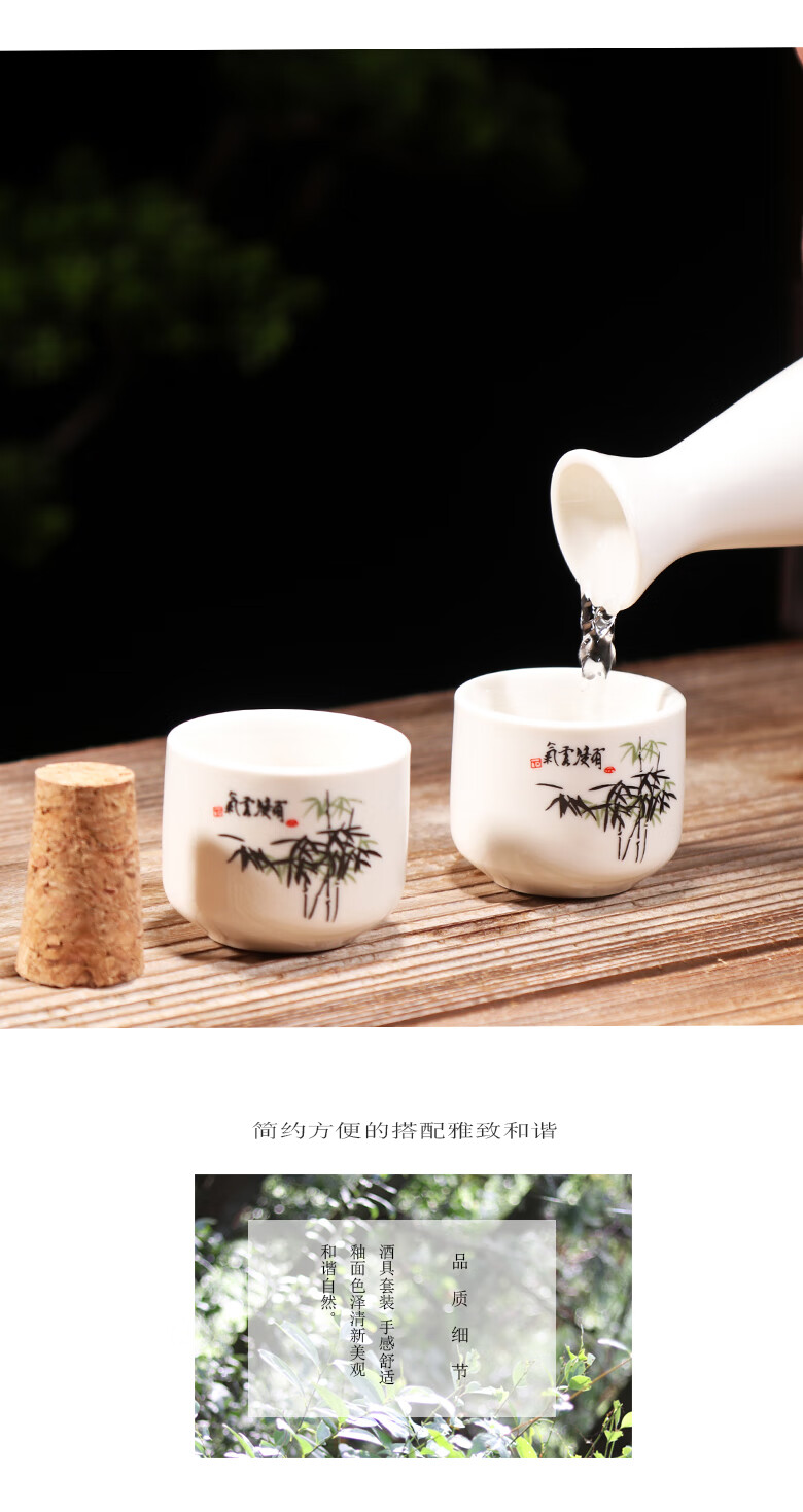 Jingling medium-heat two-liang small wine pot, old-fashioned imitation retro-style wine divider, ceramic household white wine set, traditional warm iron set, round mouth pot/pure white/2-liang/wine delivery competition