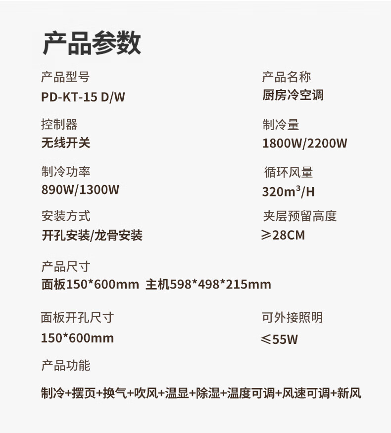 Rockefeller (ROCK FILE) Liangba kitchen air conditioner linear bathroom air cooler honeycomb large board ceiling special cooling and heating embedded white / kitchen air conditioner 1800w refrigeration / opening installation
