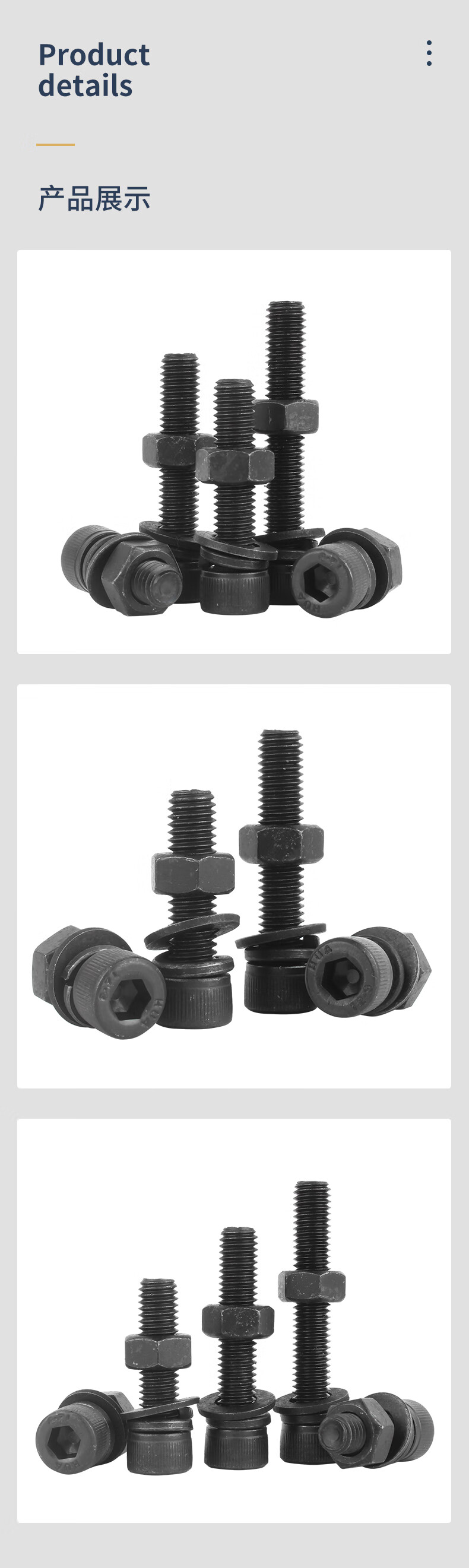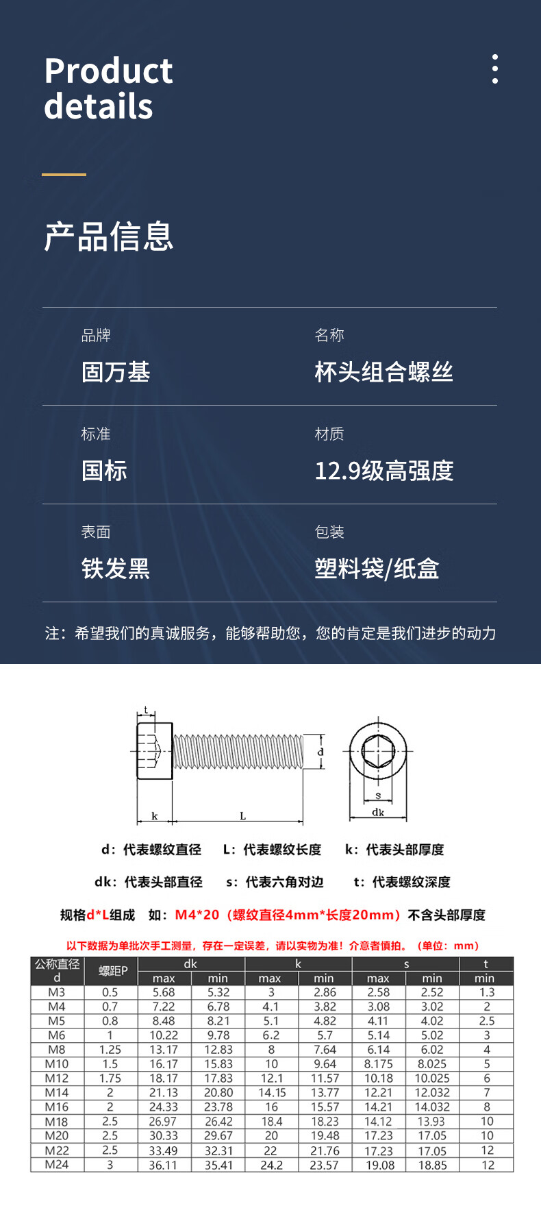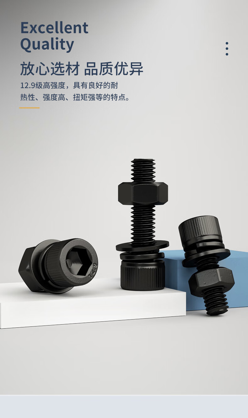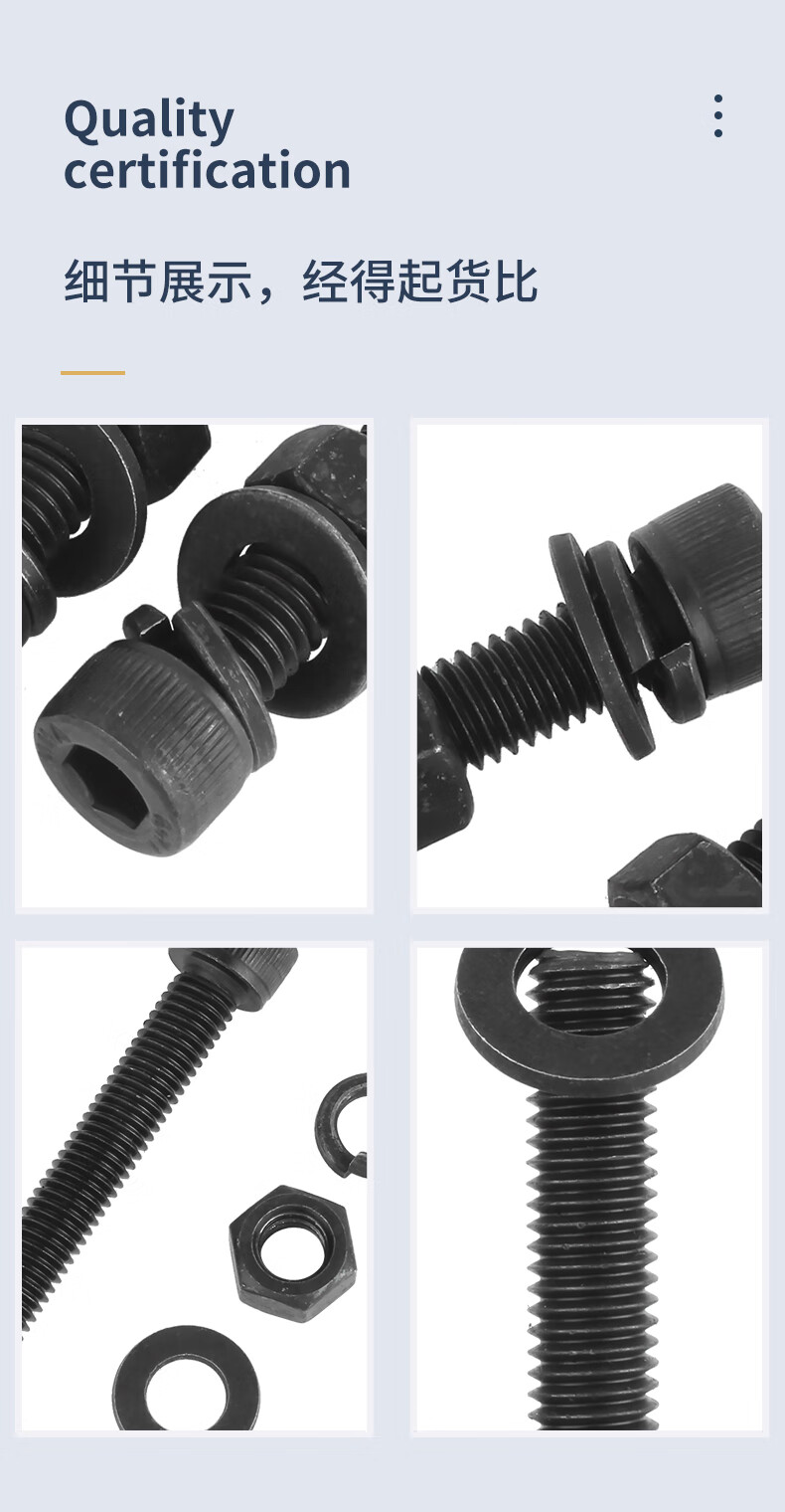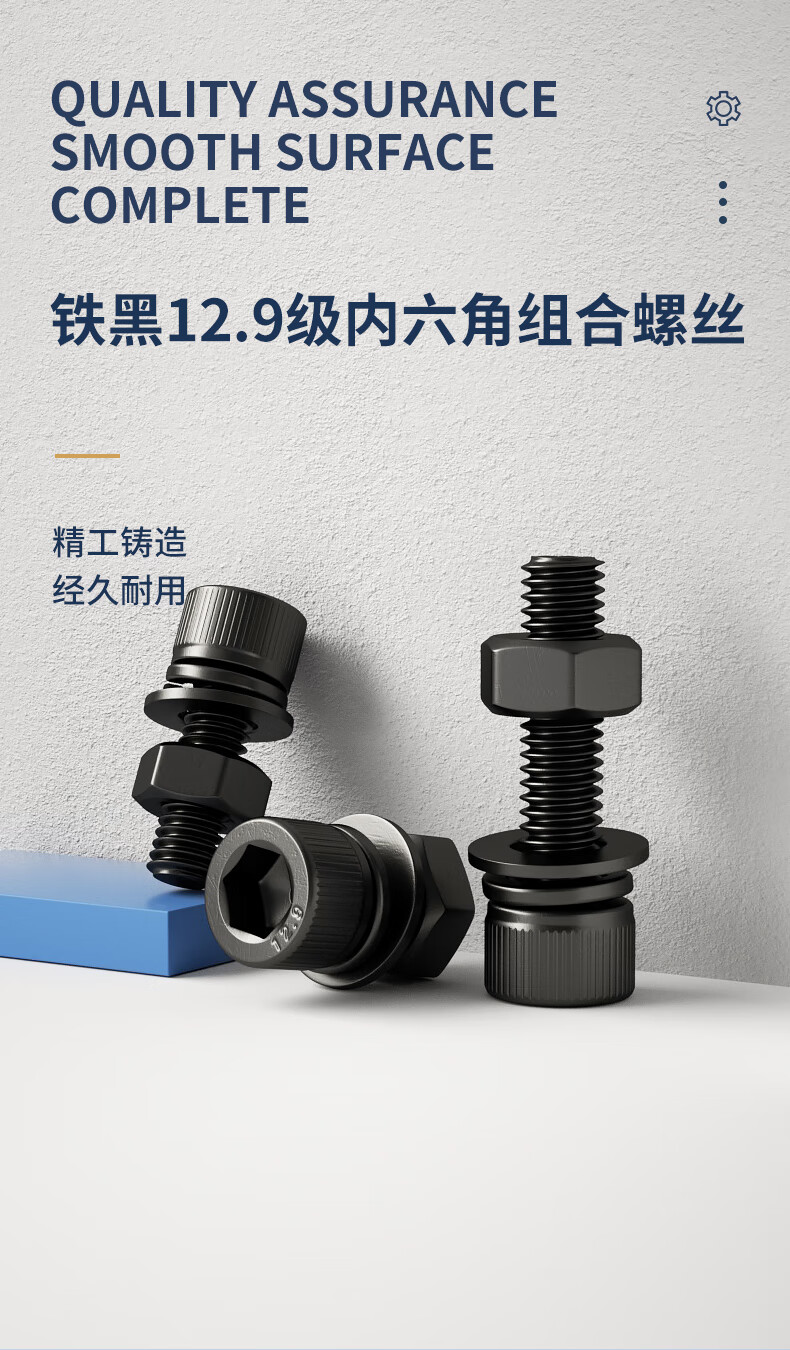Guwanji grade 12.9 high-strength cup head hexagonal screw and nut combination set complete bolt flat spring washer national standard M14x50 full tooth 5 sets