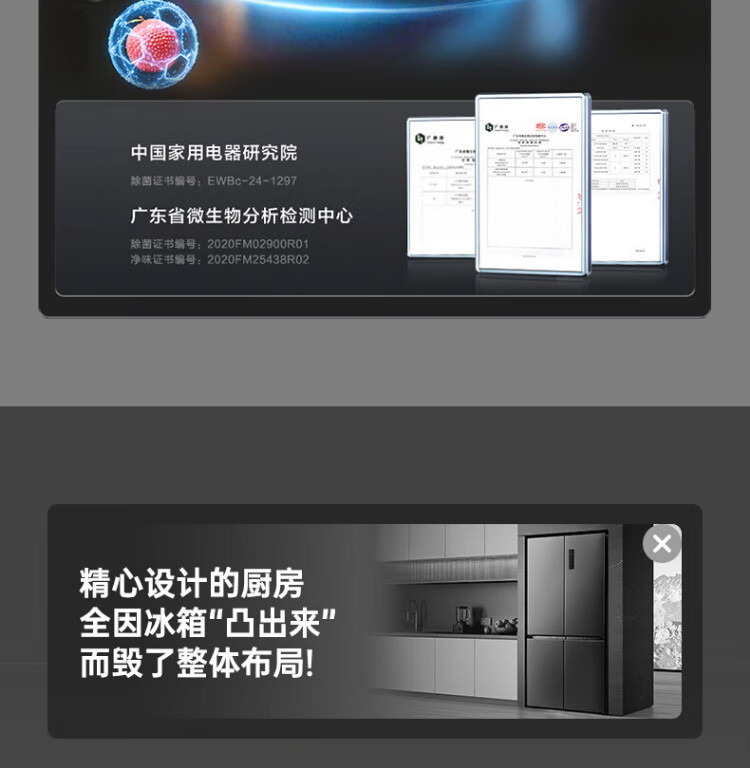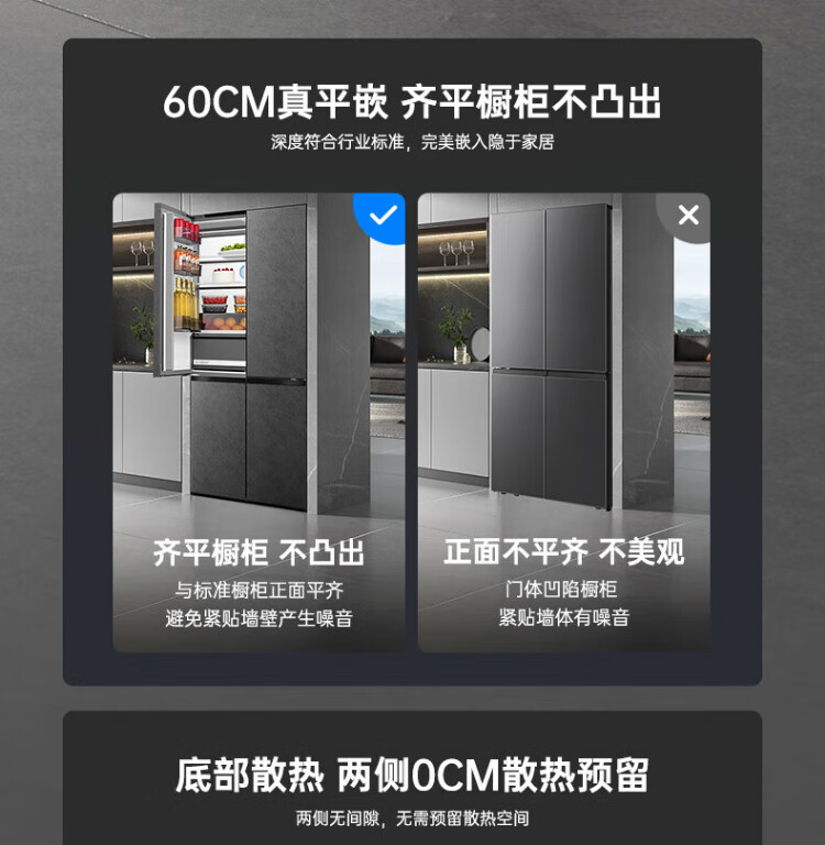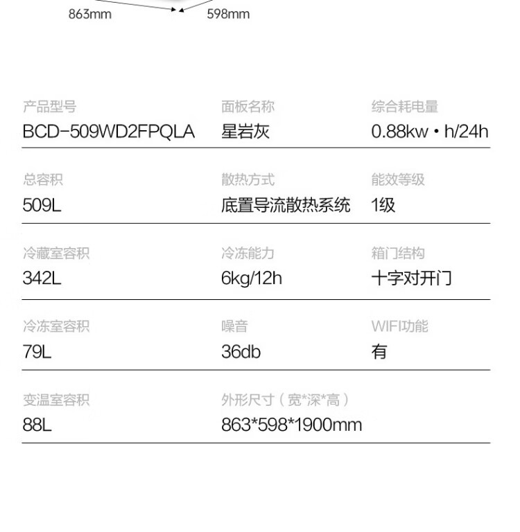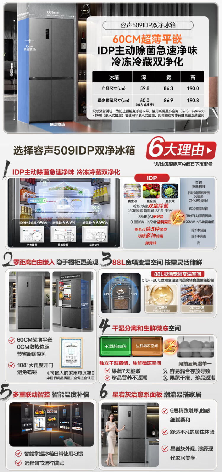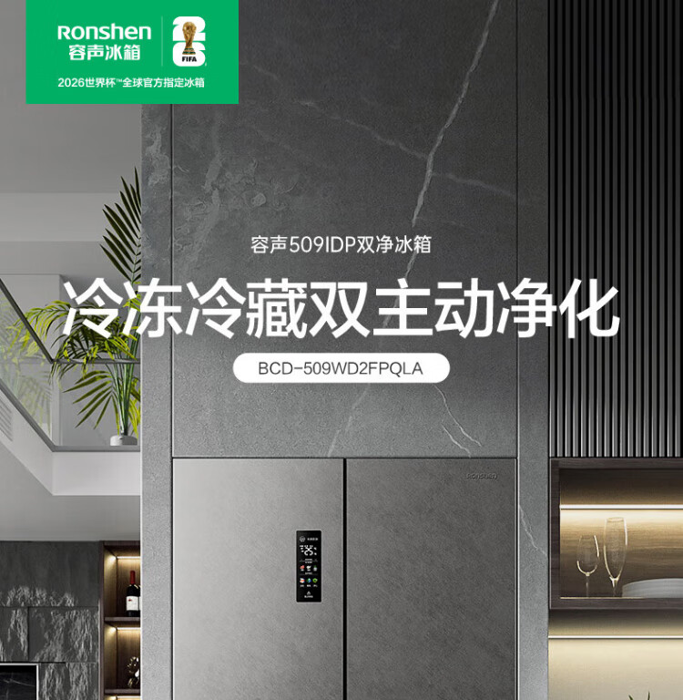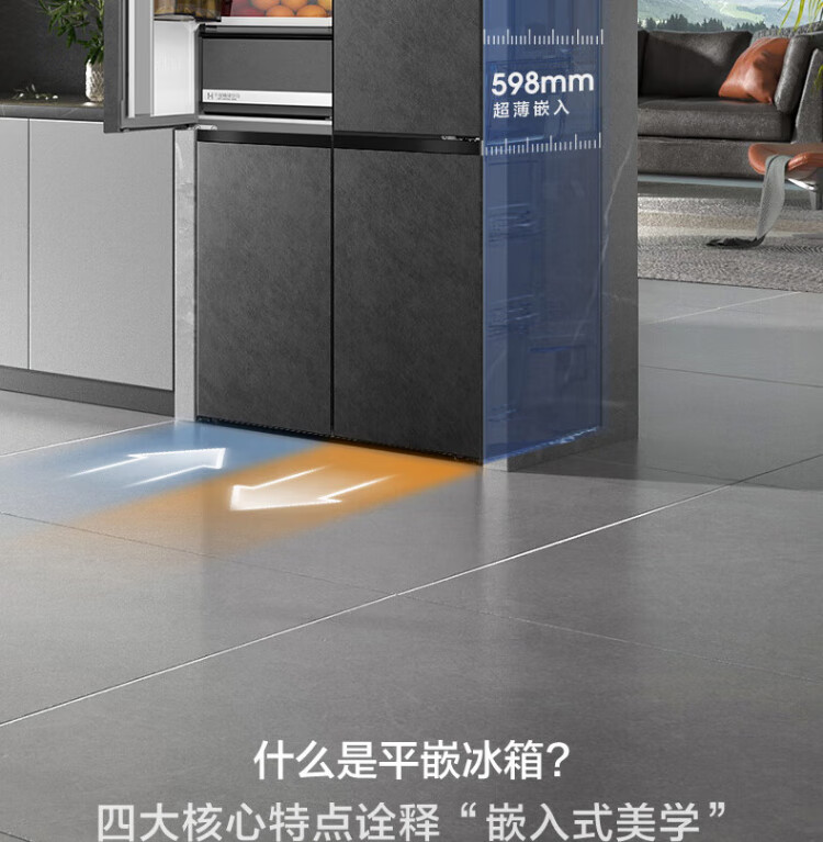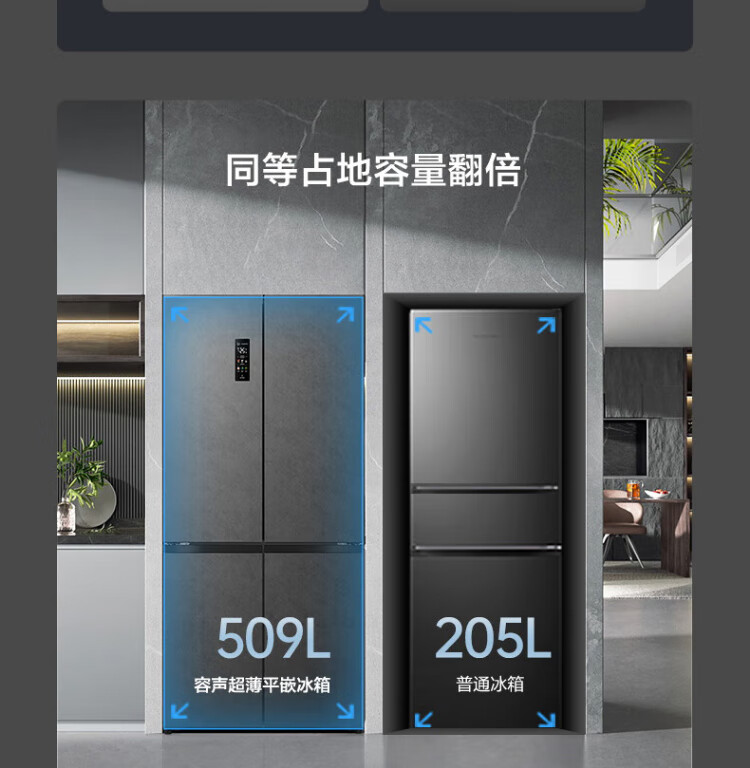 Rongsheng 509 liter double net cross-fold four-door ultra-thin embedded refrigerator first-class energy efficiency air-cooled frost-free BCD-509WD2FPQLA gray national subsidy 517 cross style BCD-509WD2FPQLA gray