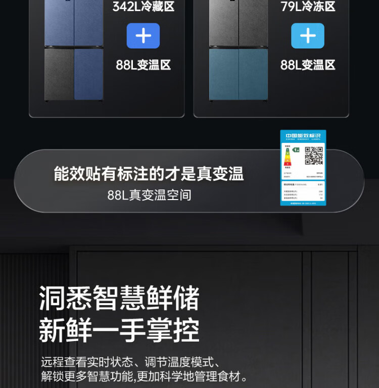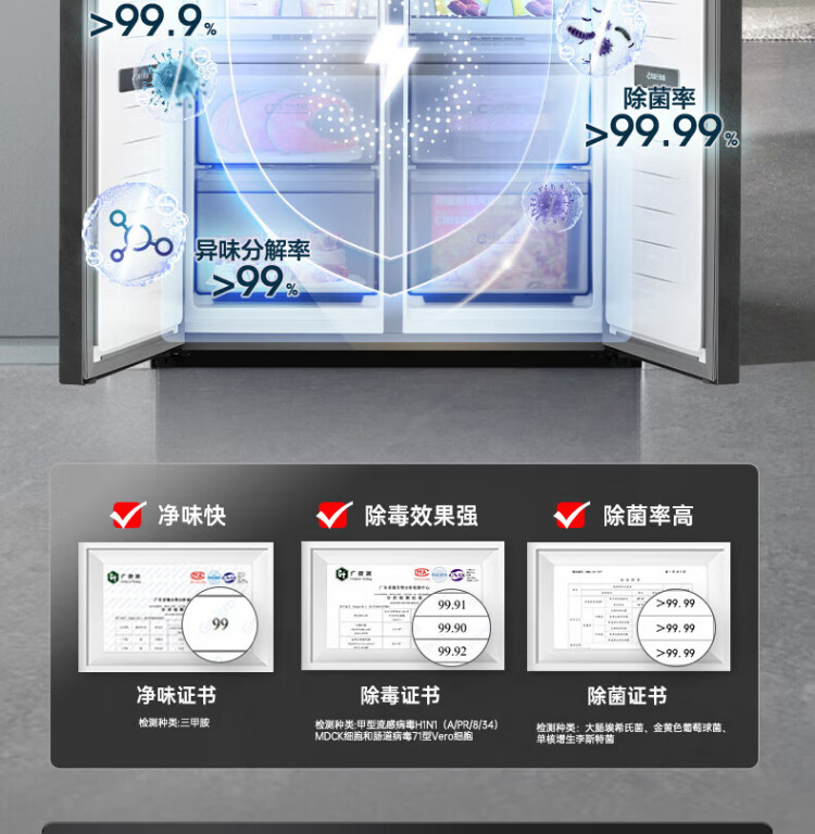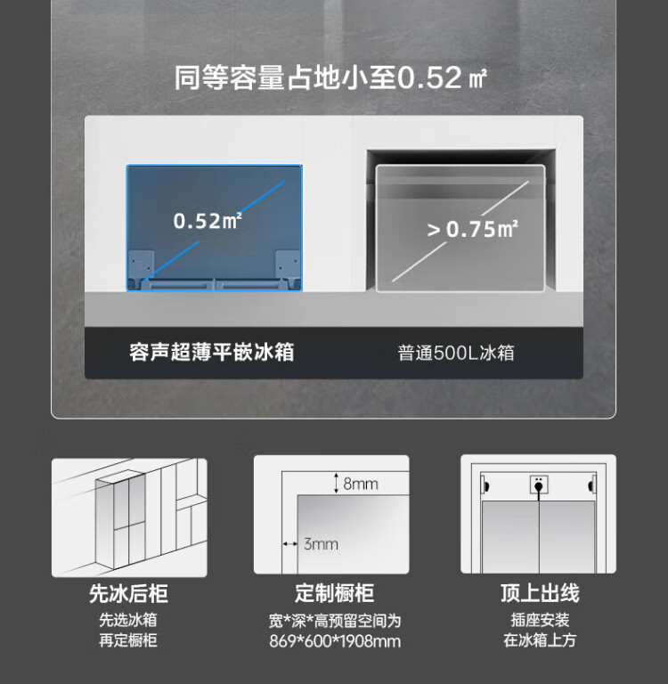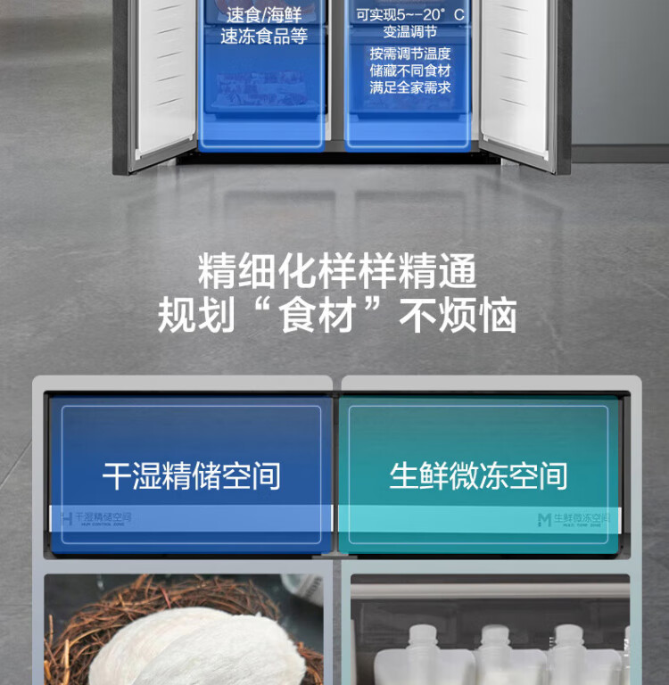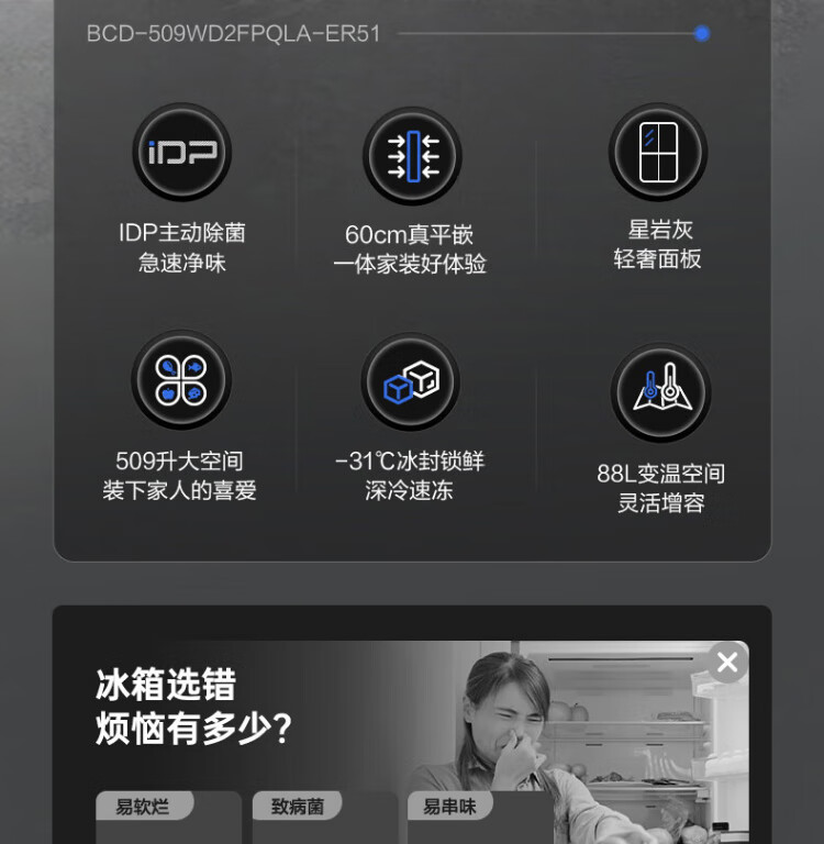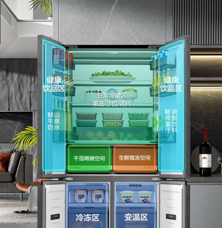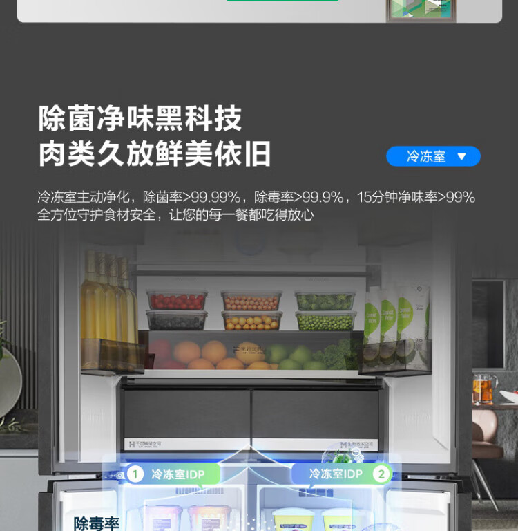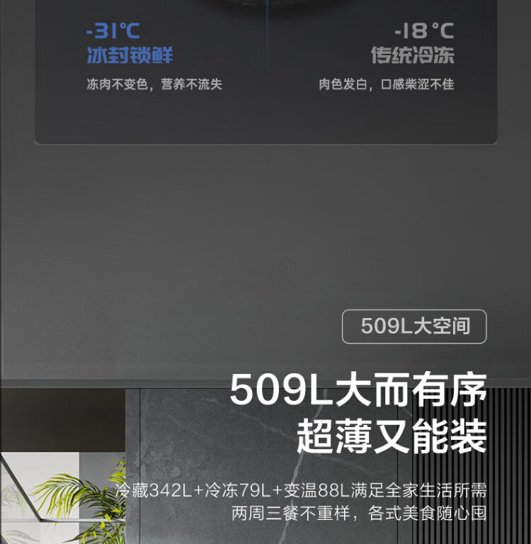 Rongsheng 509 liter double net cross-fold four-door ultra-thin embedded refrigerator first-class energy efficiency air-cooled frost-free BCD-509WD2FPQLA gray national subsidy 517 cross style BCD-509WD2FPQLA gray