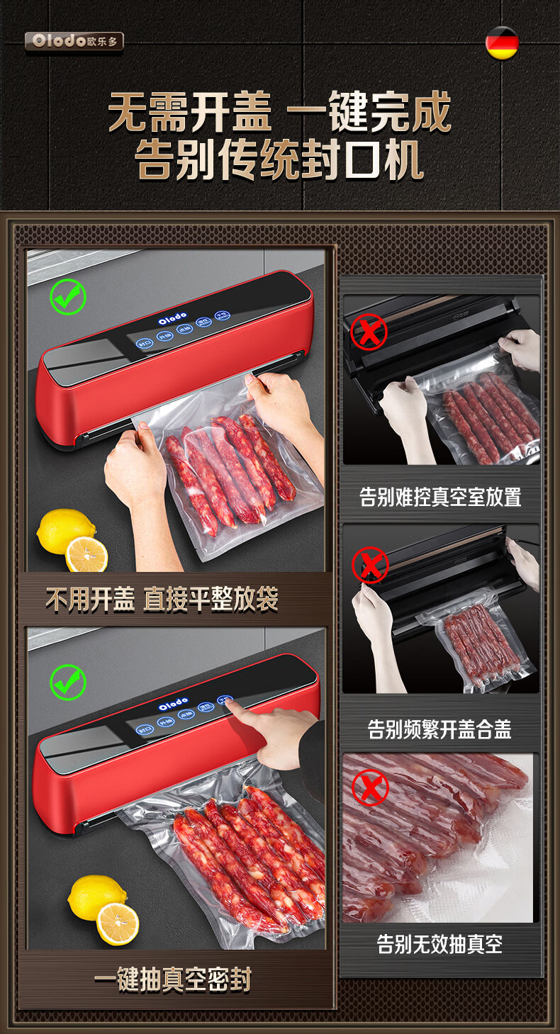 Orado vacuum sealing machine, commercial vacuum sealing machine, wet and dry vacuum machine, household plastic sealing machine, fully automatic food vacuum packaging machine, sealing machine, packaging machine, fully automatic vacuum machine + external suction tube + sheet bag