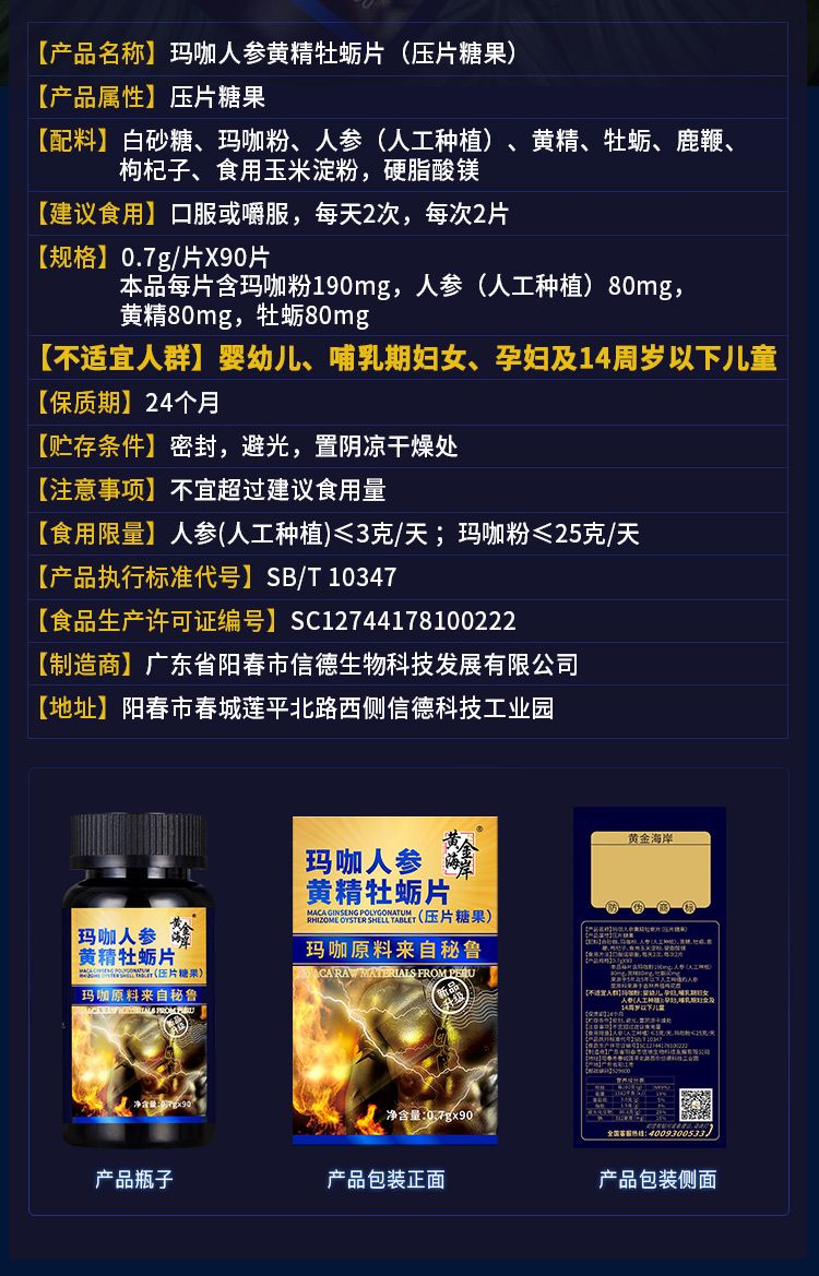 Gold Coast middle-aged and elderly men take 90 tablets of maca, ginseng, polygonatum, and oyster tablets for men. Black maca extract concentrated compressed tablets. One box. Experience improvement pack. Middle-aged and elderly men take 90 tablets of maca. Candy maca raw materials come from Peru.