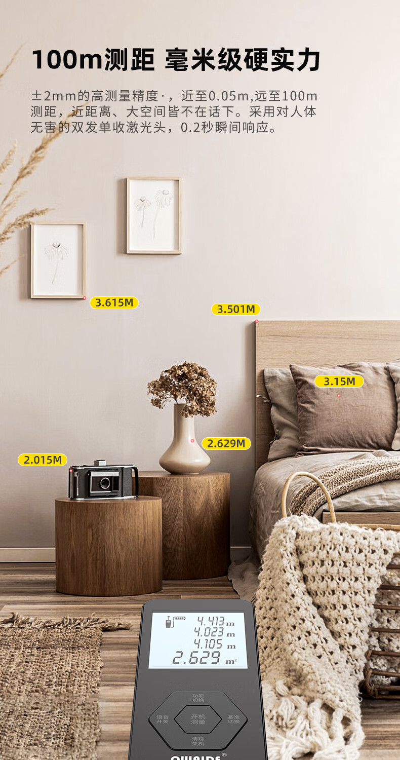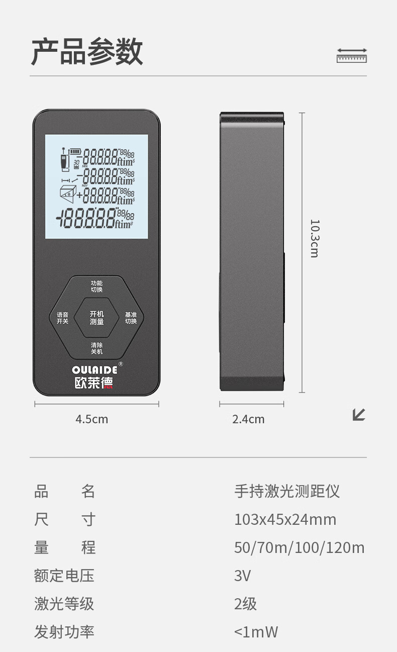 OULAIDE laser distance meter handheld infrared measuring instrument electronic ruler laser ruler high-precision room measurement instrument 119 meters exclusive model + voice broadcast