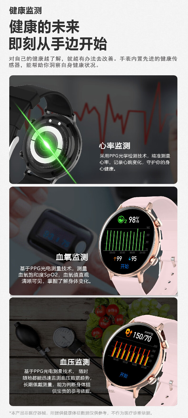 Xiaomi Core Smart Watch Women's Sports Adult Bluetooth Phone Offline Payment Voice Assistant Pedometer Monitoring Heart Rate Sleep Blood Pressure Blood Oxygen Message Reminder Multifunctional Watch Champagne Gold with Pink Silicone Strap
