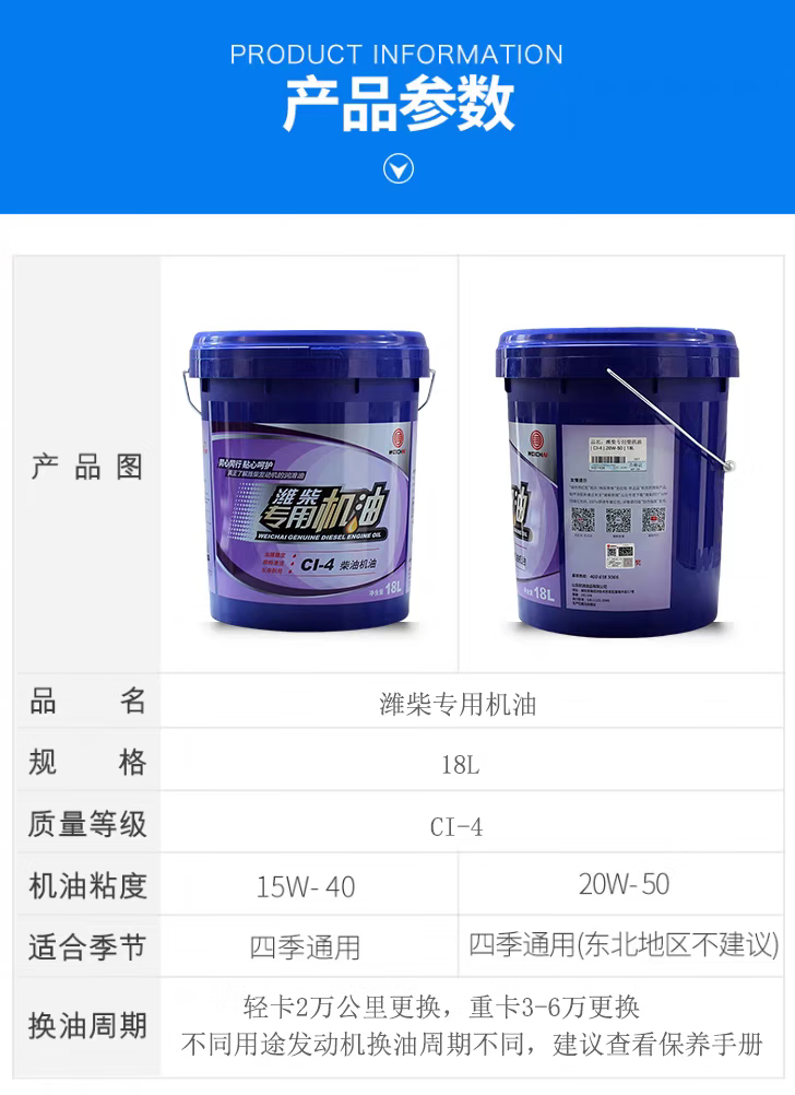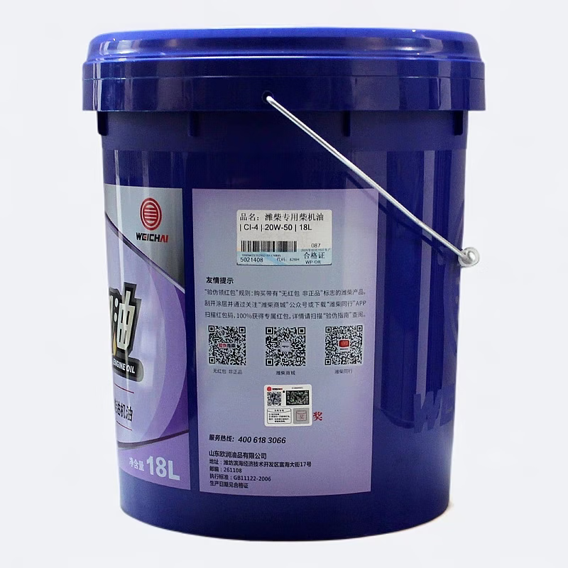 Weichai Power Original Special Engine Oil CI-4 15W-40/20W-50 Weichai Original National Five Diesel Engine Oil 18L Genuine Guarantee 15-40 If you get a fake one, you will lose ten