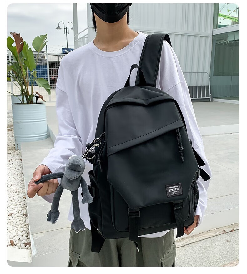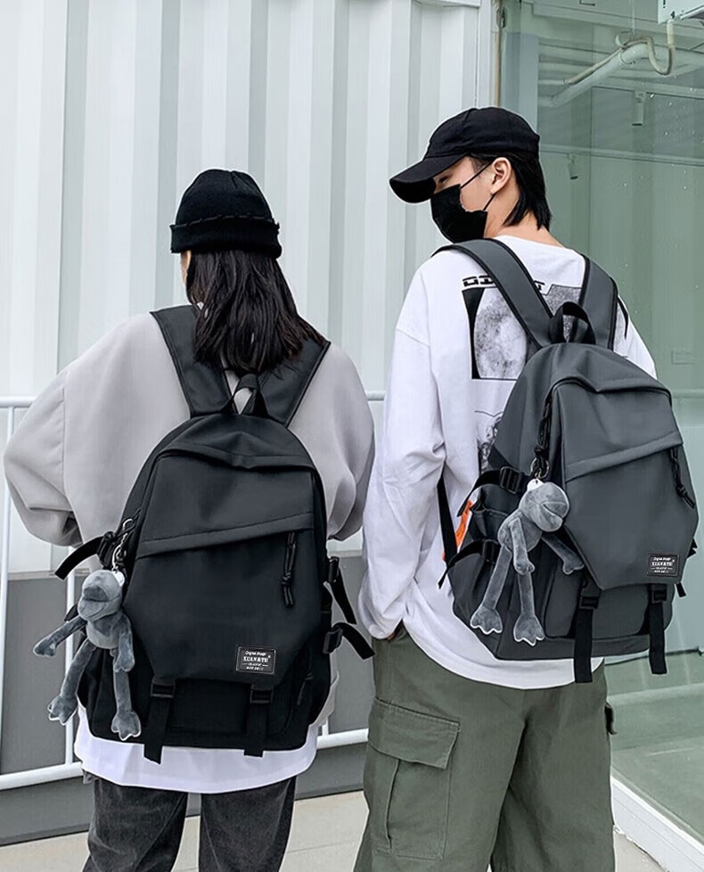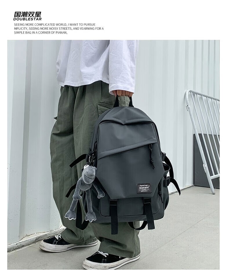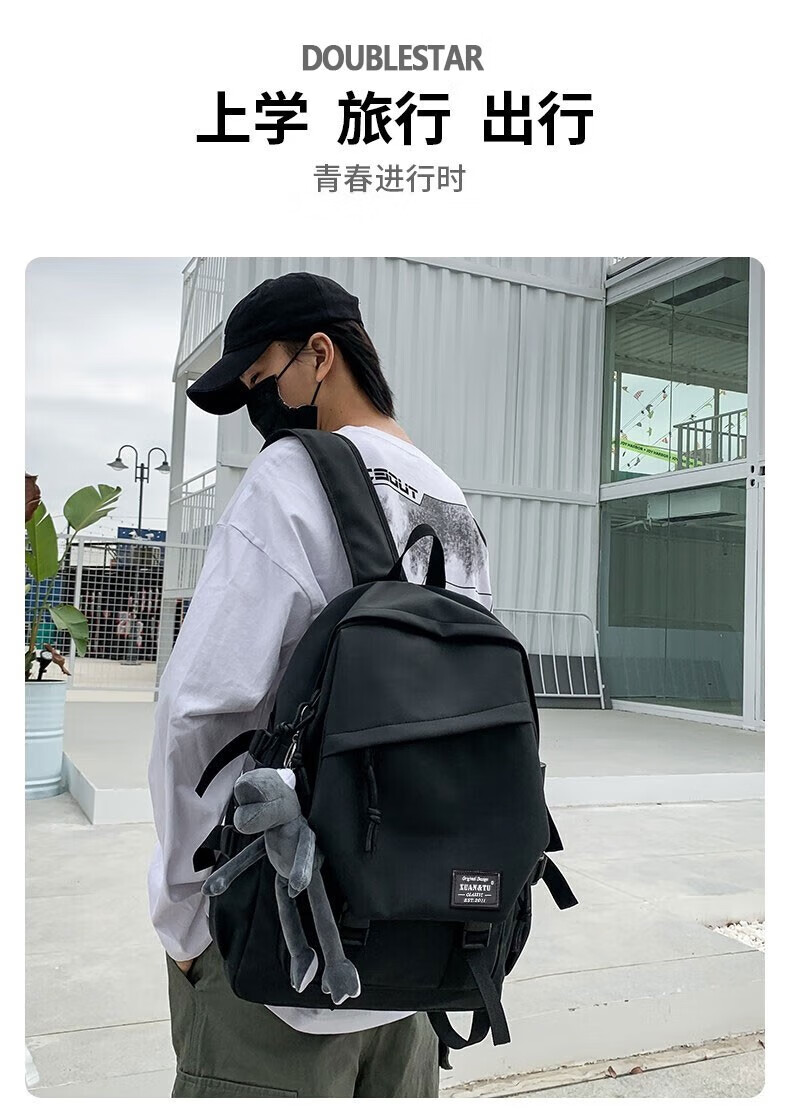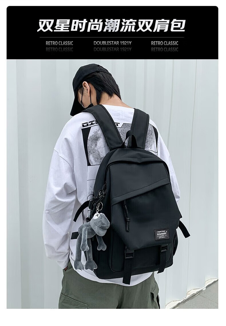 Double Star School Bag Junior High School Student Large Capacity High School Student and College Student Backpack Burden-Reducing Multi-Function Computer Bag Backpack Black Upgraded Model with Pendant