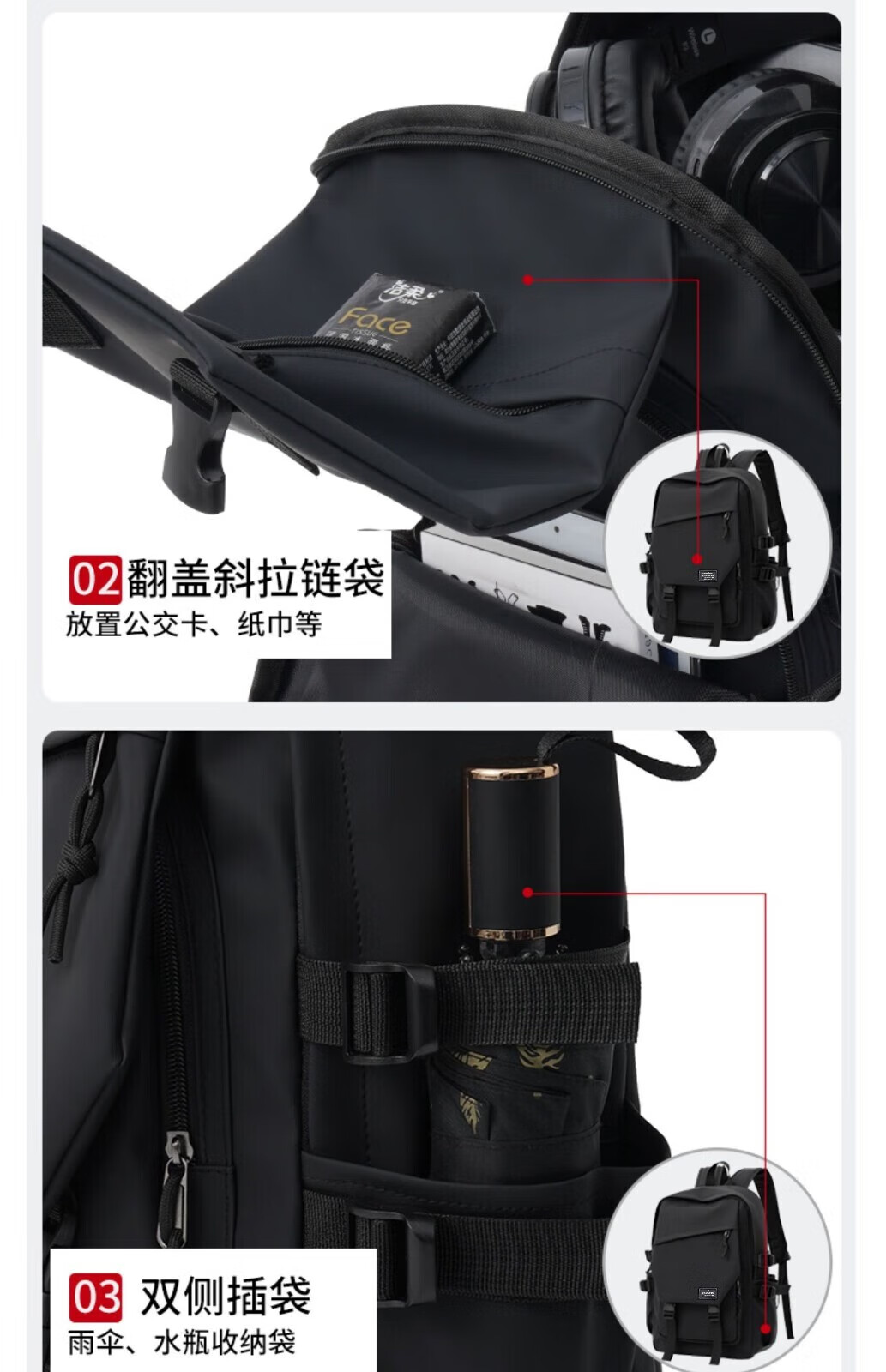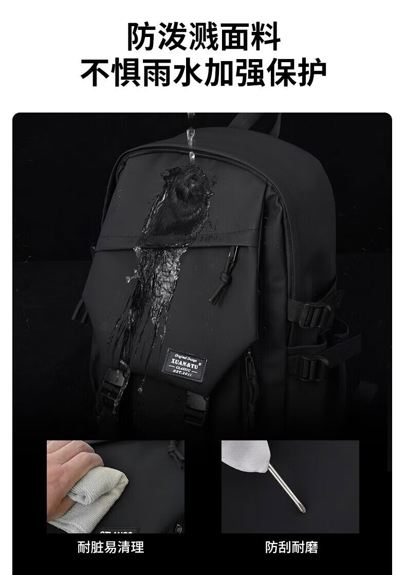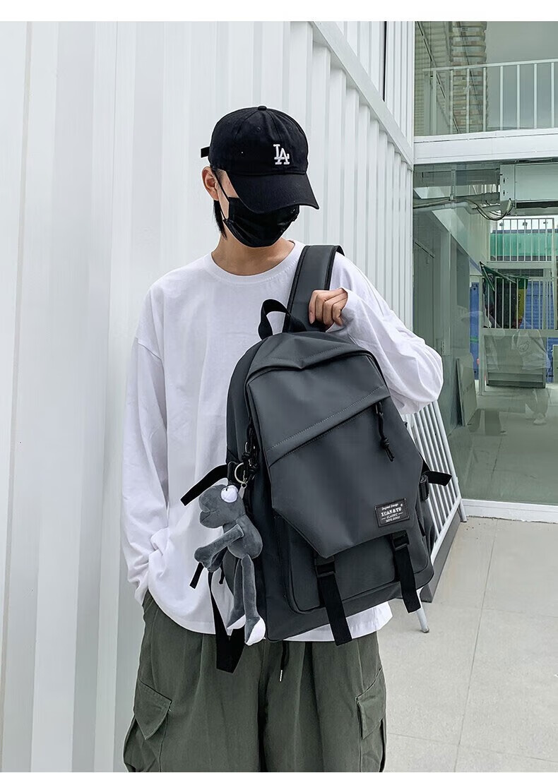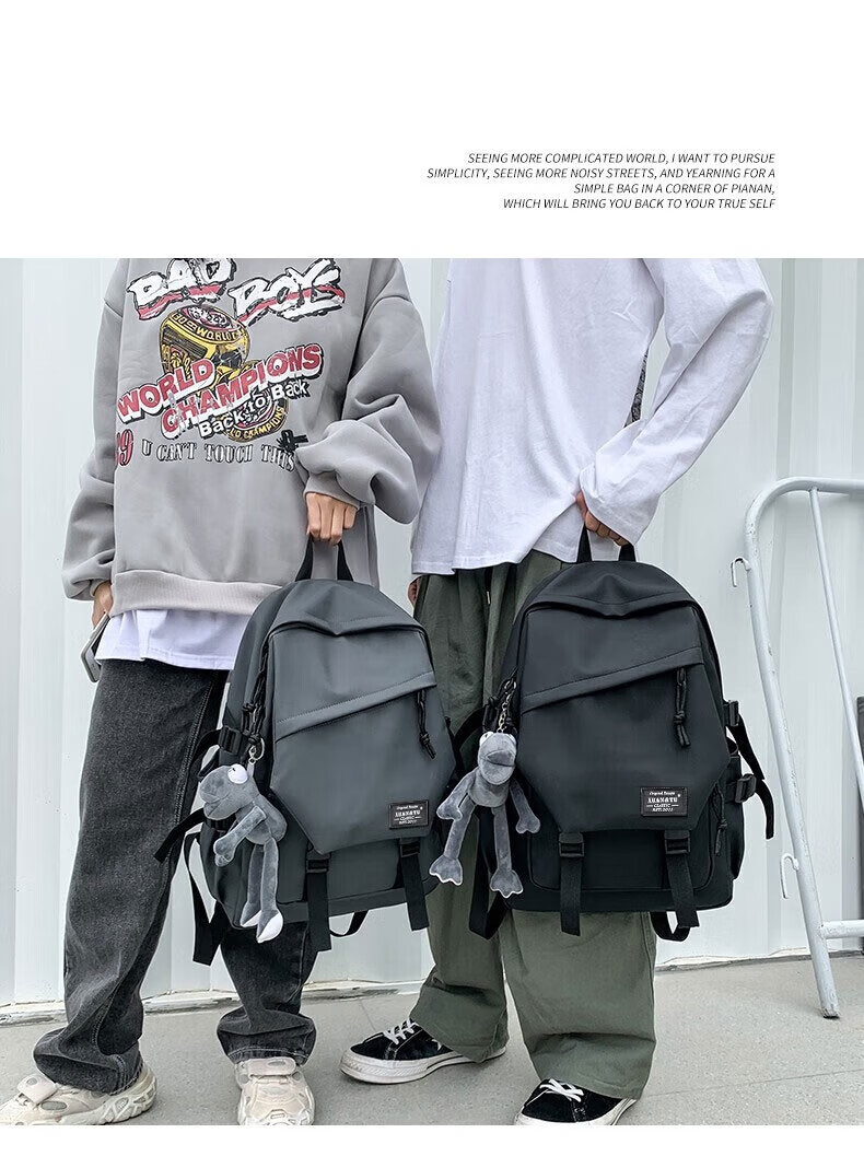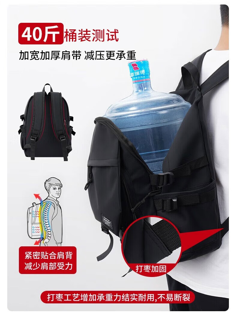 Double Star School Bag Junior High School Student Large Capacity High School Student and College Student Backpack Burden-Reducing Multi-Function Computer Bag Backpack Black Upgraded Model with Pendant