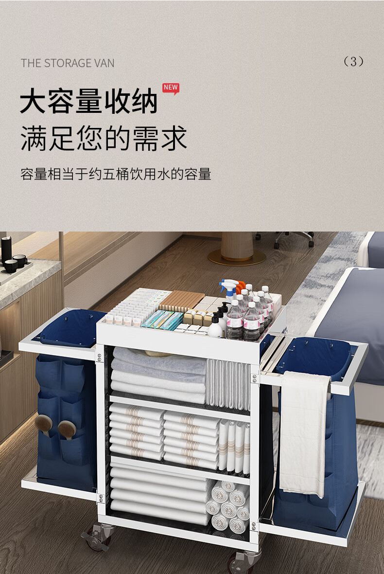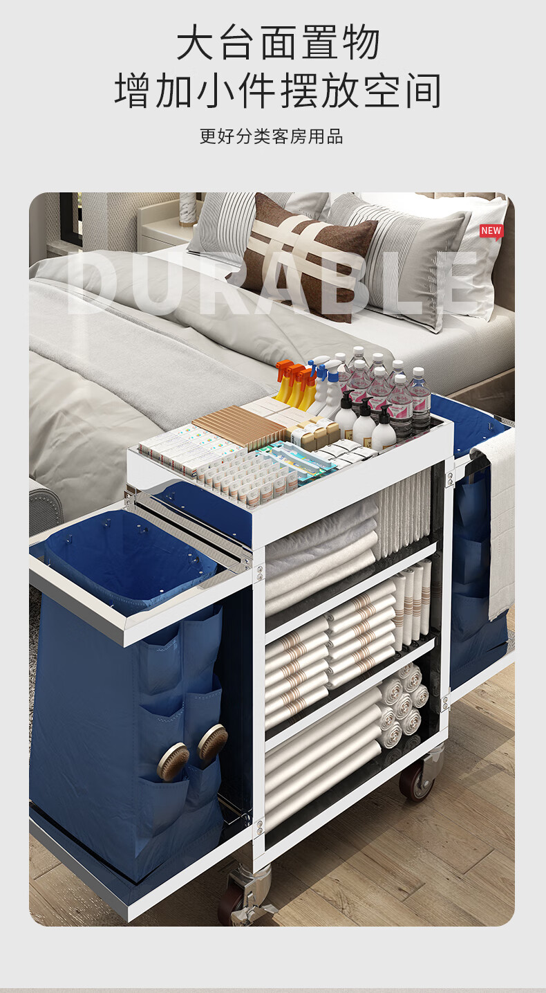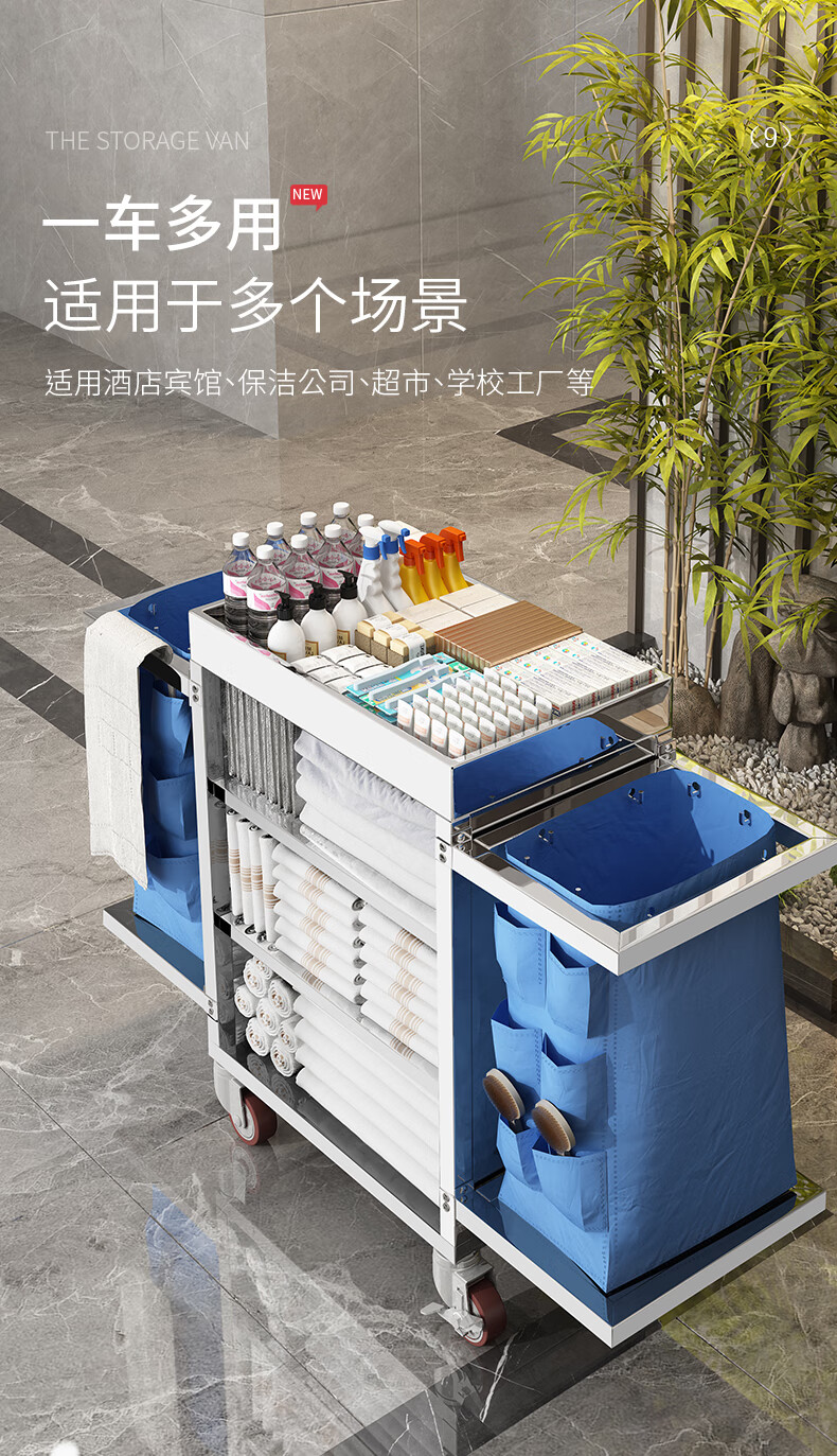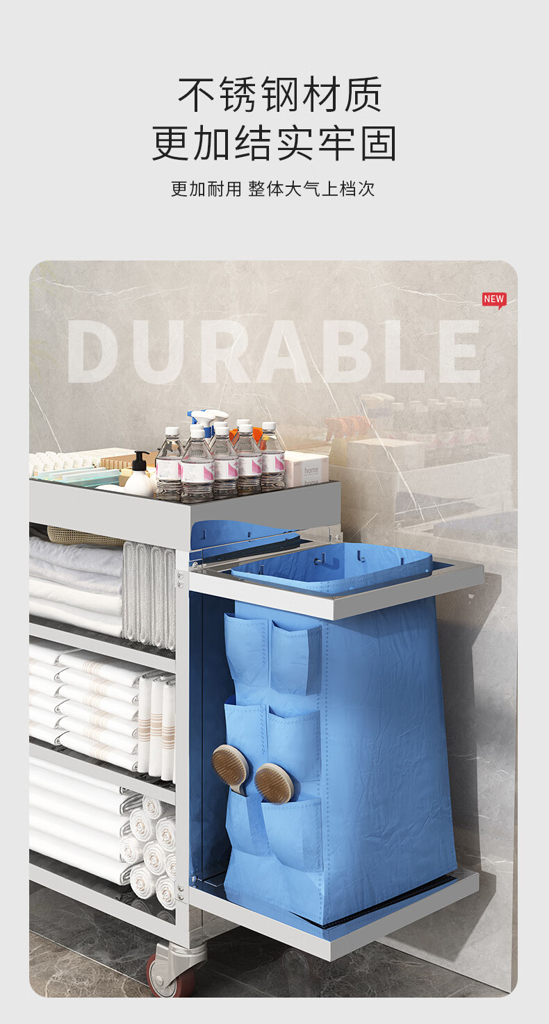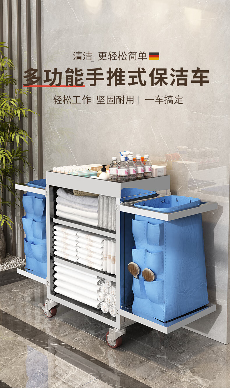 SHENFAN hotel linen cart stainless steel room service cart cleaning cart work cart special sanitary cleaning trolley for hotels thickened stainless steel bilateral 5-inch large wheels with side bags