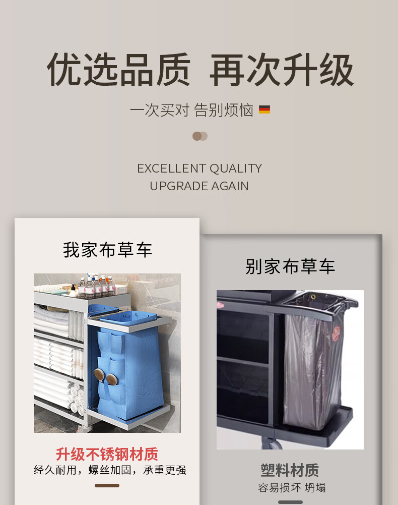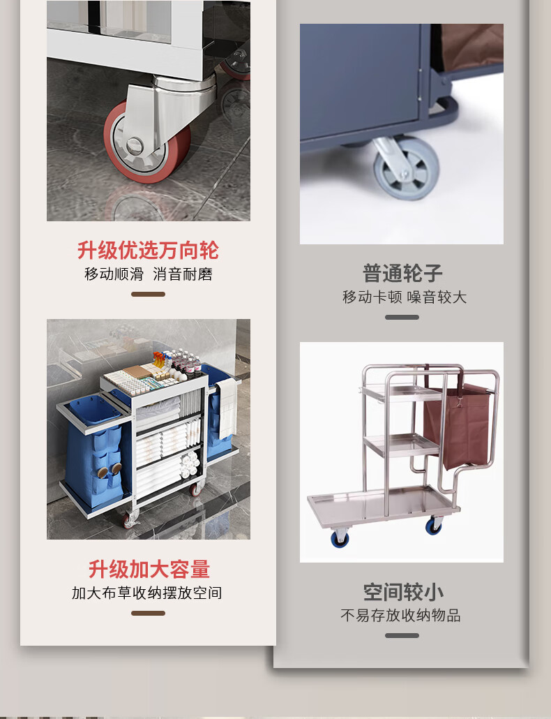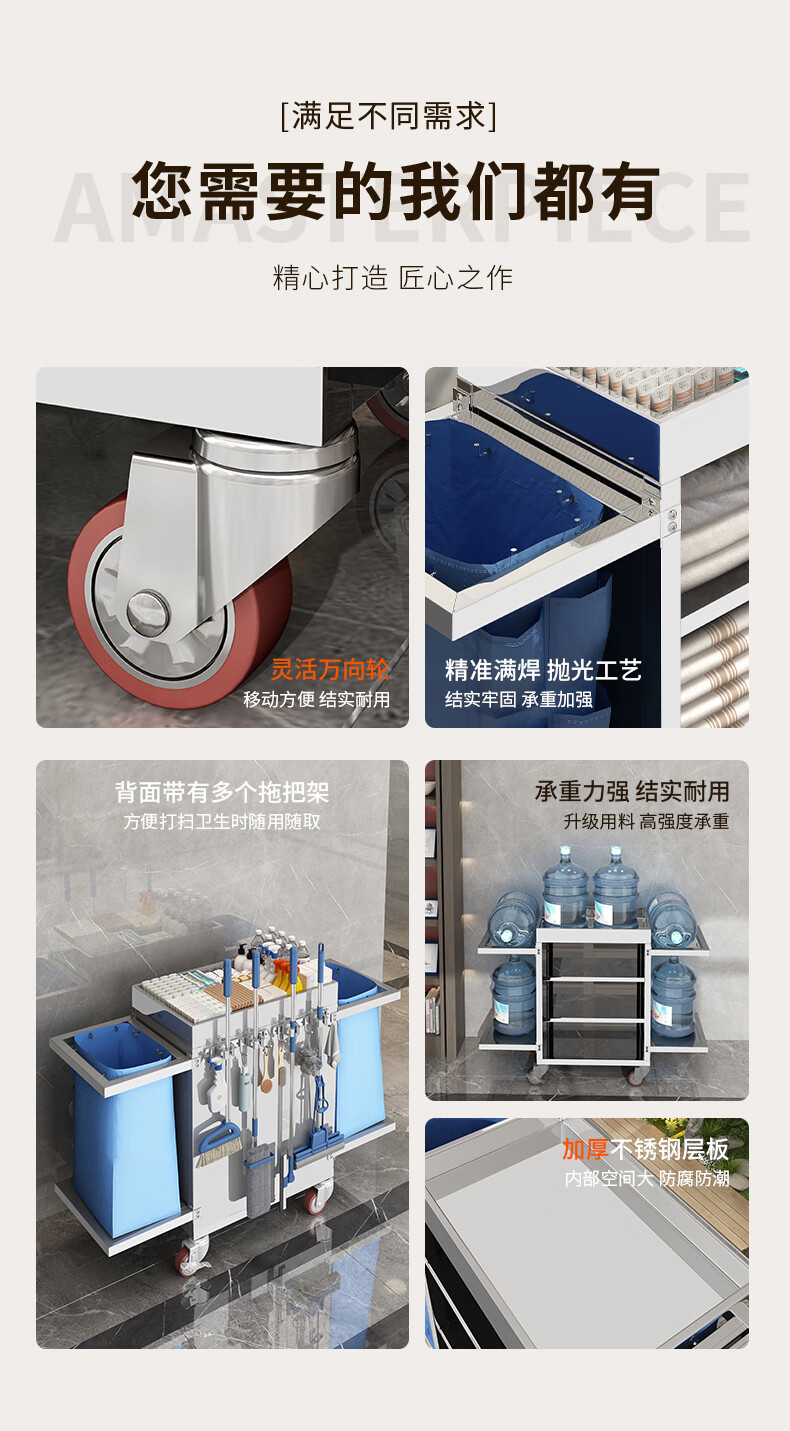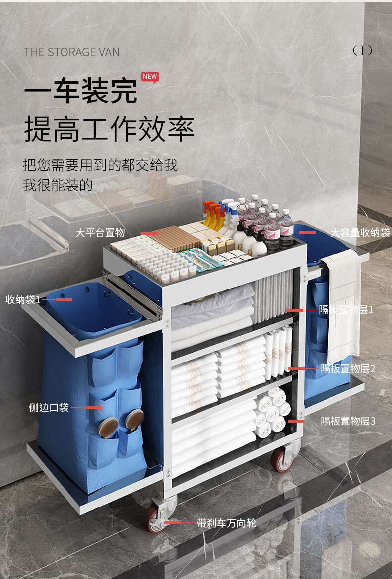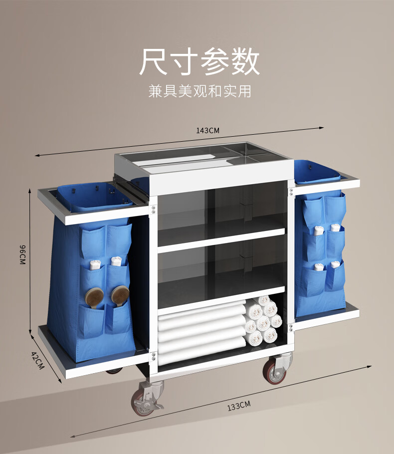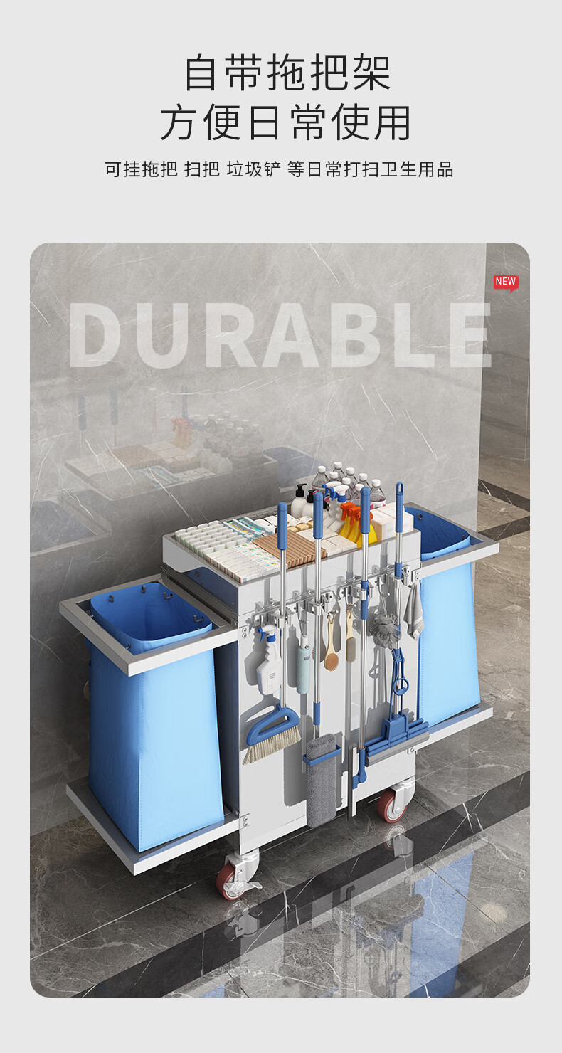 SHENFAN hotel linen cart stainless steel room service cart cleaning cart work cart special sanitary cleaning trolley for hotels thickened stainless steel bilateral 5-inch large wheels with side bags